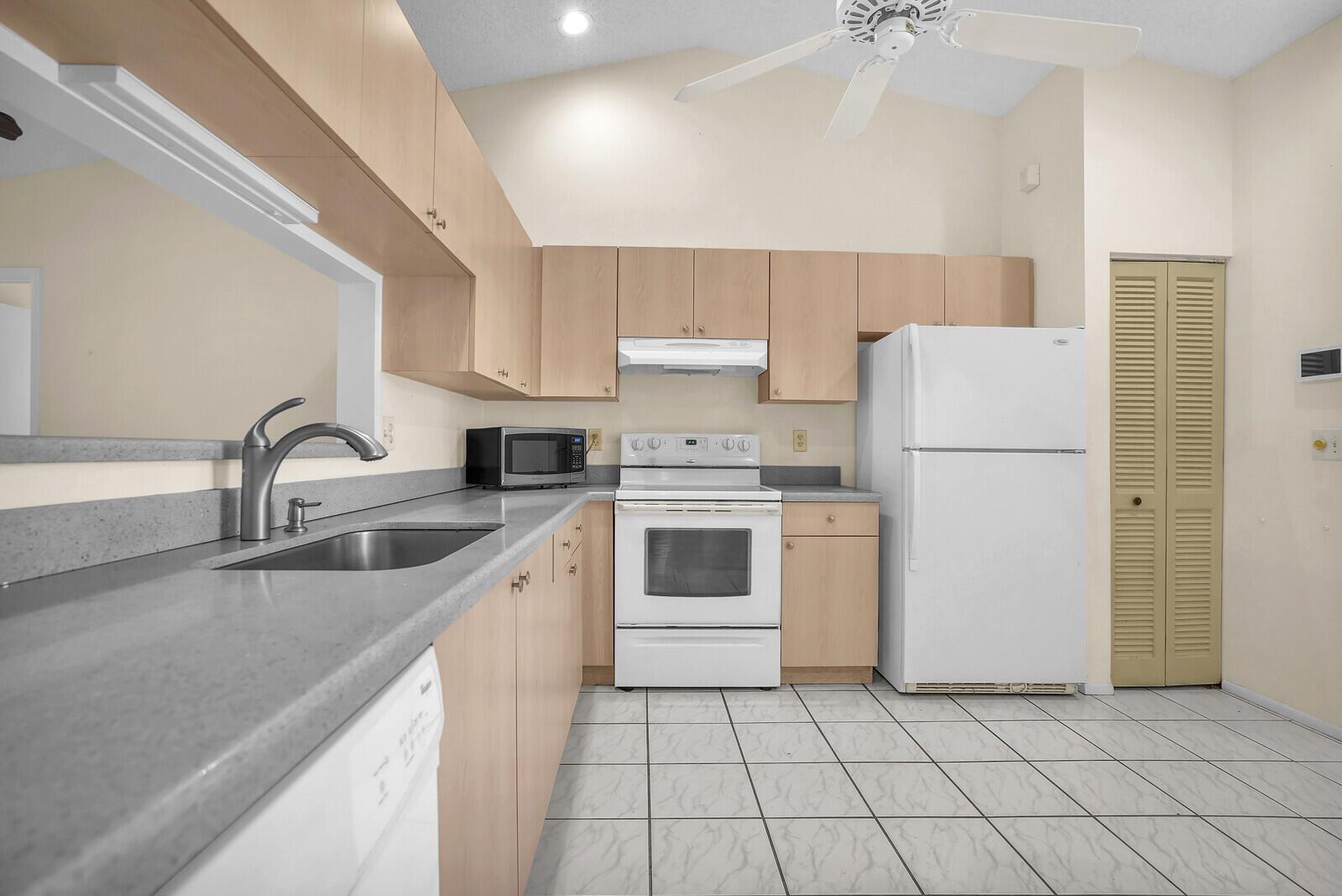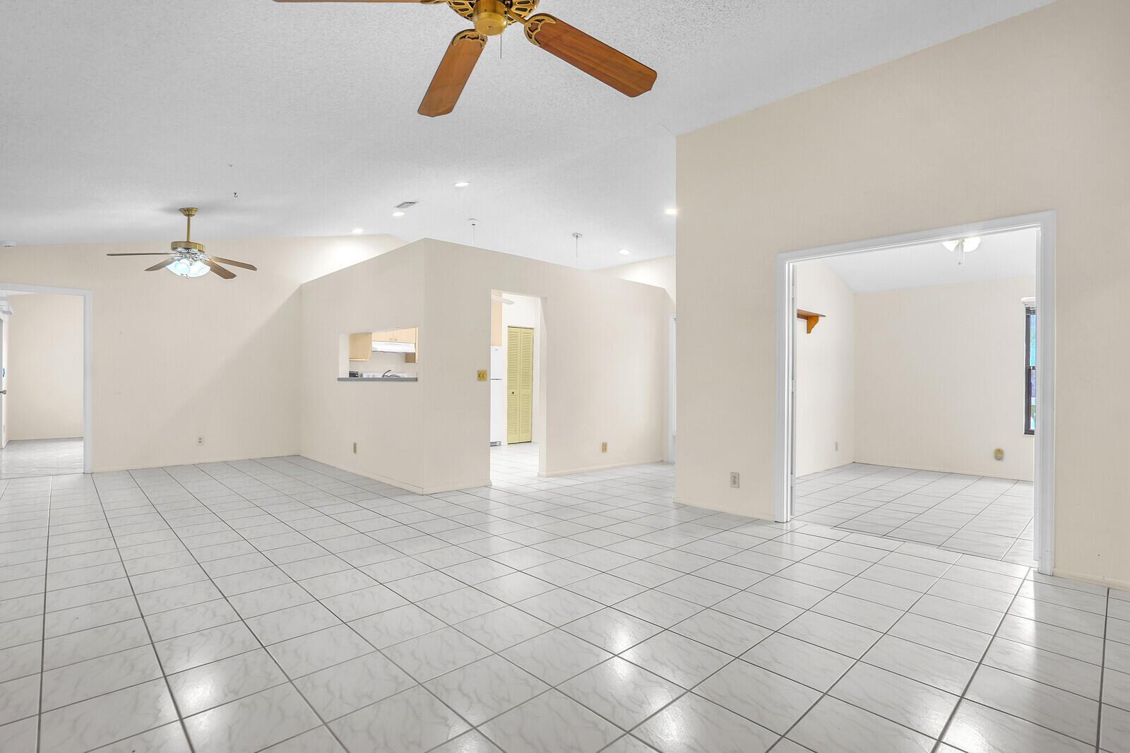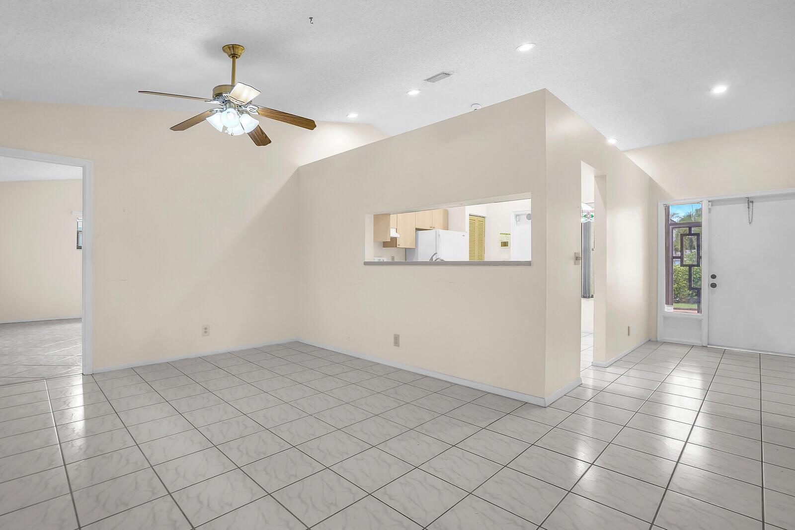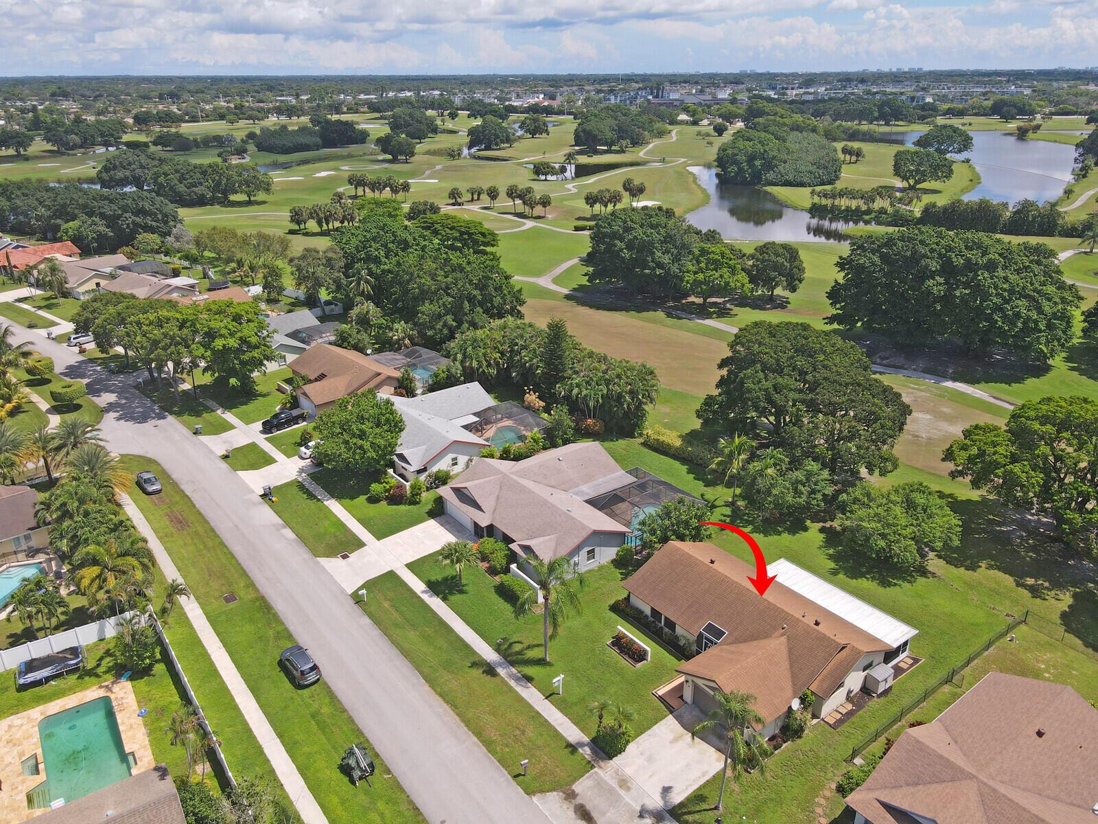 Incredible VALUE! Superb views are seen from this 'RARE'' 3-bedroom, 2-bath, 2-car garage, PLUS BONUS ROOM DEN/OFFICE, (can easily become a 4th BEDROOM by adding a closet) one-story single-family home directly on the Palm Beach County Southwinds Golf course. Large and private backyard with a covered and screened patio almost the full width of the home! The roof was installed 7/17/2020, A/C installed 9/14/2024 and upgraded kitchen cabinets with solid surface countertops. Living areas are fully tiled! INCREDIBLY LOW HOA just $75 MONTHLY. Newly upgraded community lighted amenities include pool, Gathering place, playground area, tennis, pickleball and basketball courts. Highly rated schools. No membership or dues required to play on the Palm Beach County Golf Course. Just pay and play