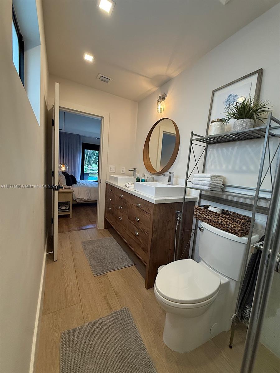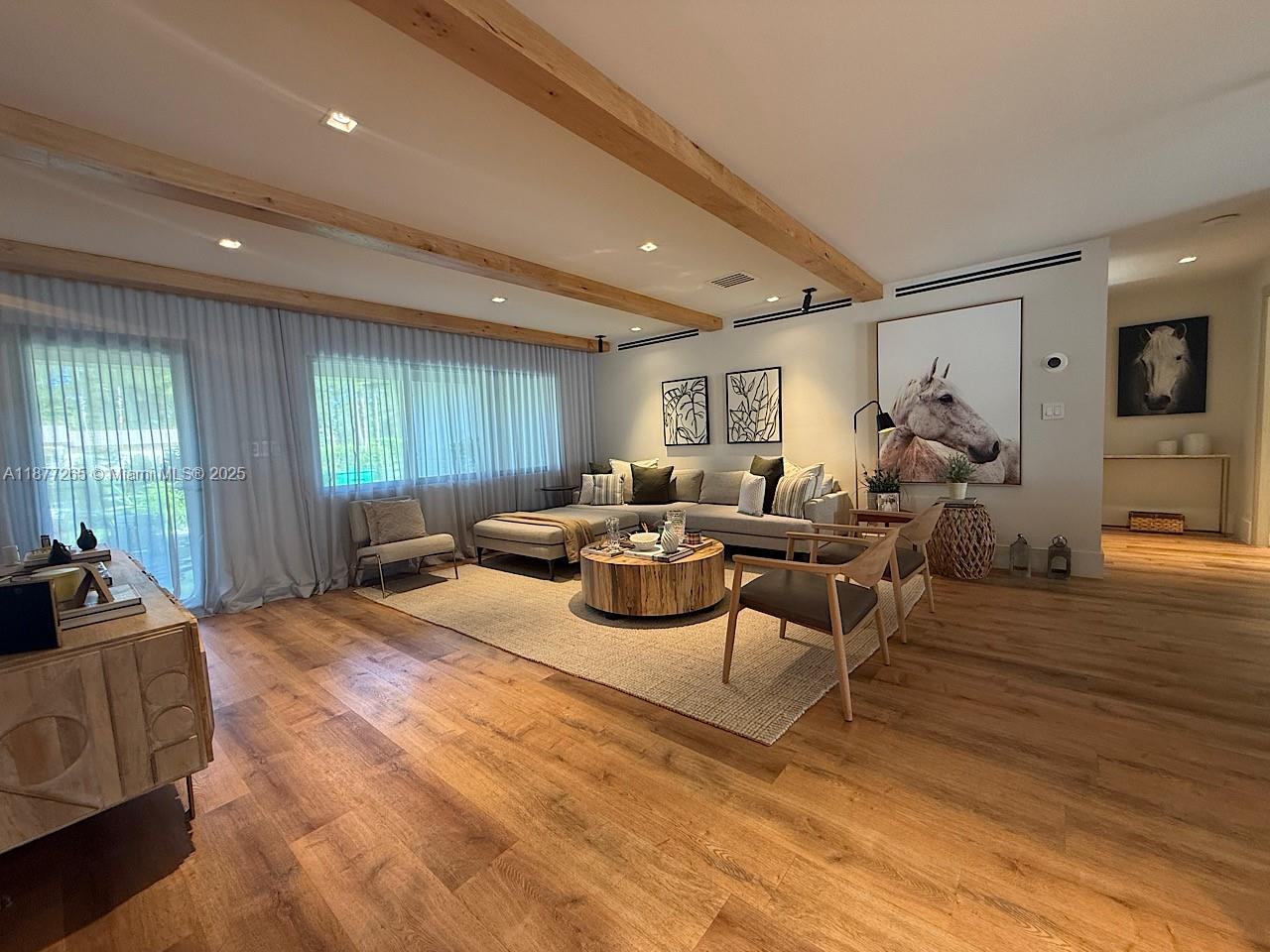 The Dream farm chic home READY TO MOVE IN! Open-concept fully remodeled w/ elegant finishes, custom cabinetry, tall storage, and all hurricane-impact windows. Features 4 bedrooms w/ electric blackout shades, a custom office w/ built-ins, and 3 full bathrooms. Extra garage, while the main garage includes a 220V outlet for Tesla, both w/ insulated hurricane-rated automatic doors. Recent upgrades: new central 5-ton AC, new water heater, fully updated plumbing & electrical (City code compliant). Roof and septic tank w/ drain from 2019. Backyard paradise w/ large koi pond, PVC deck & fencing, exterior walls finished in PVC slats, aluminum pergola w/ retractable roof, 37’x16’ heated & cooled pool, plus 16’x12’ stable and chicken coop. Don’t miss this rare opportunity—schedule your visit today!