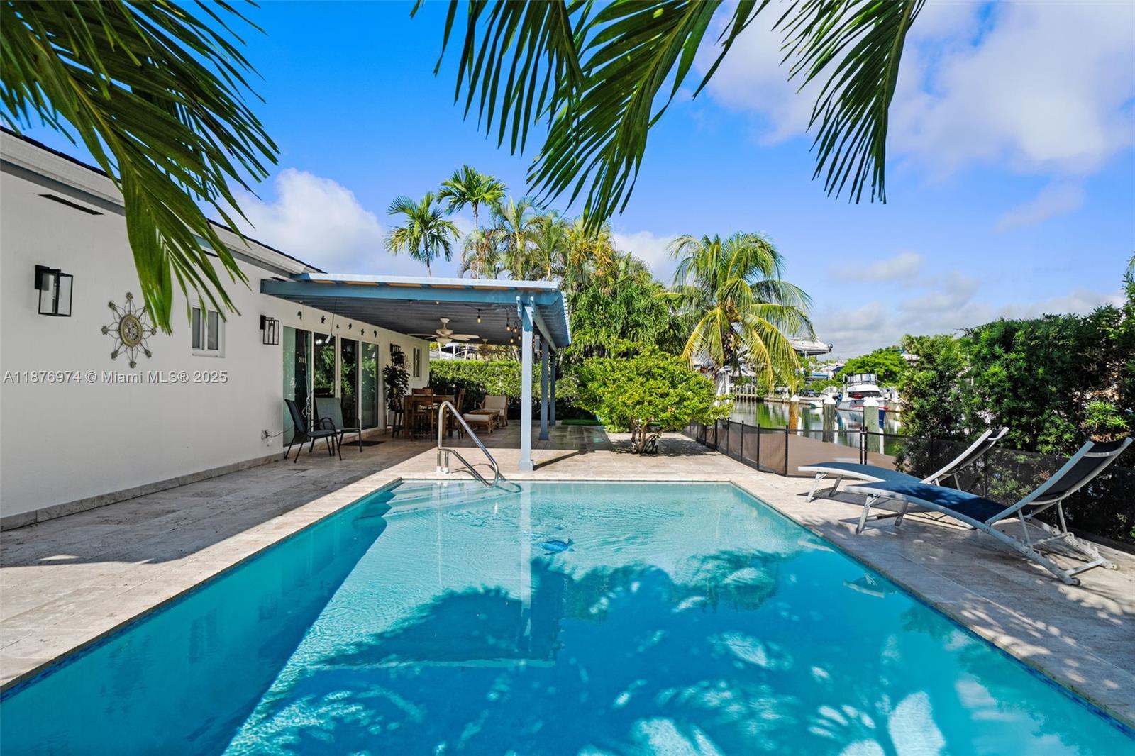 Escape to a lifestyle where every day feels like a vacation. This incredible waterfront home on Keystone Islands is a true boater's dream, perfectly positioned on a wide canal with 75 feet of water frontage and direct ocean access—no bridges to slow you down! This home is designed for seamless indoor-outdoor living and effortless entertaining. Step outside to your own private oasis featuring a stunning 2020 heated pool, a large covered patio perfect for al fresco dining, and a 20,000 lb boat lift ready for your vessel. The lush, resort-style backyard offers the perfect backdrop for hosting gatherings or simply unwinding by the water. Newer roof, pipes and updates throughout. A Beautiful Miami Home. Make it Rein.