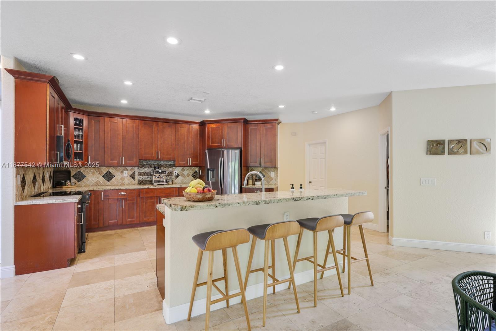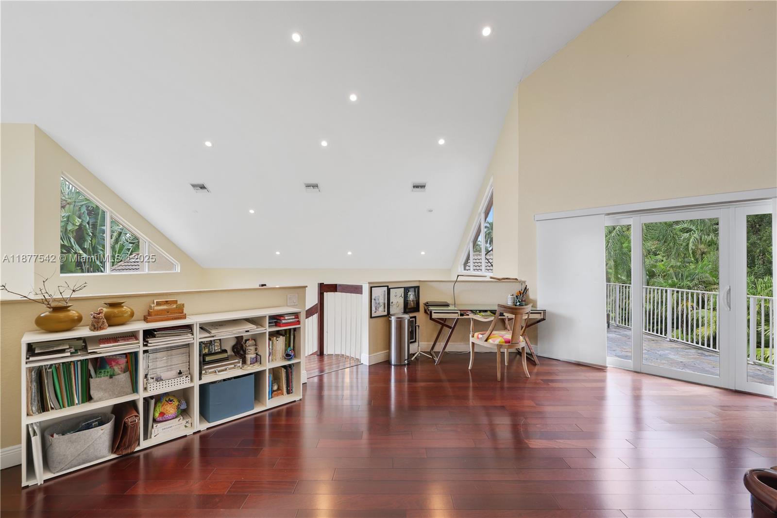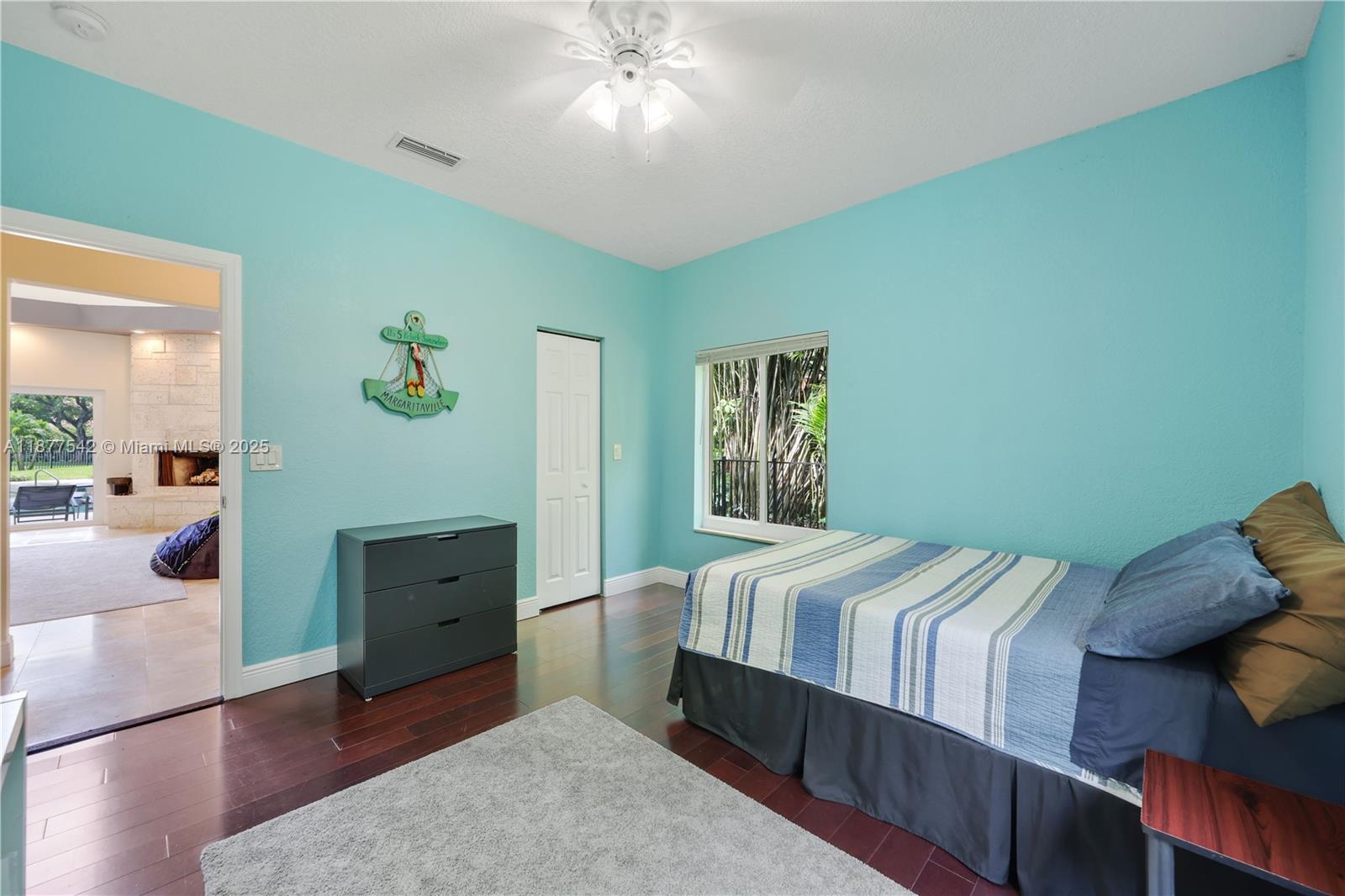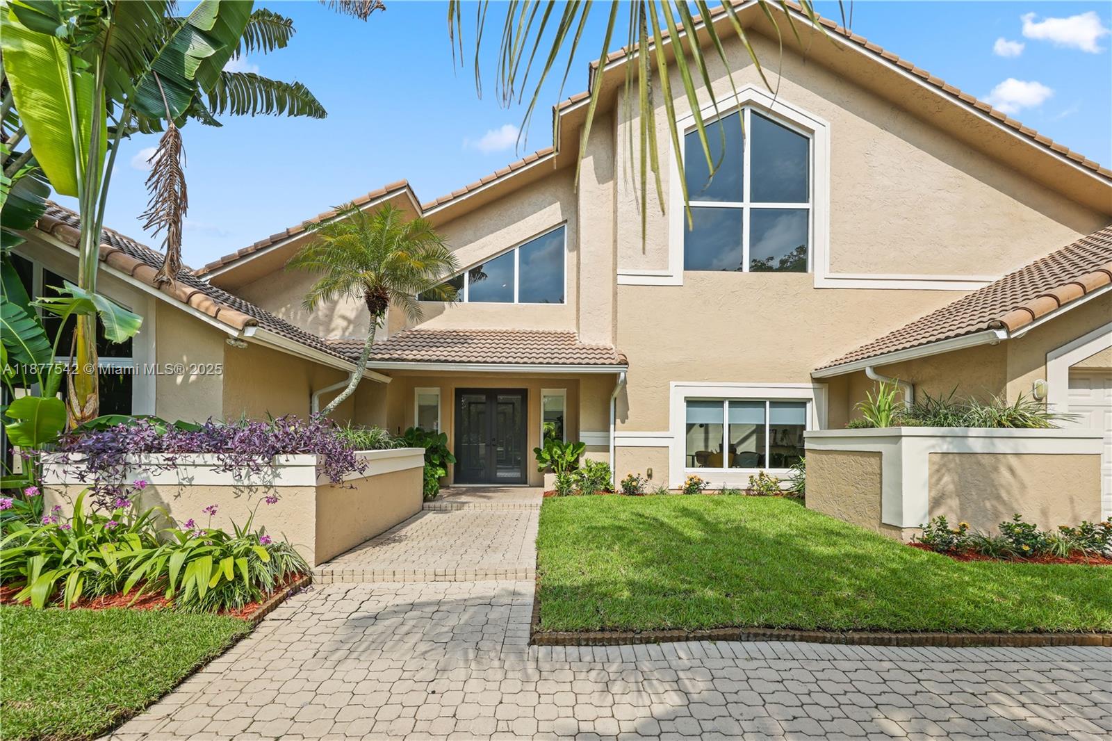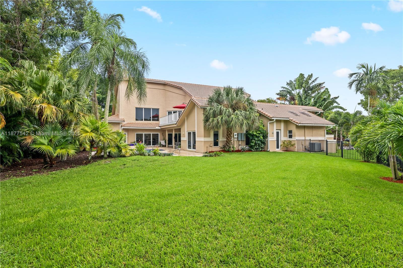 Beautiful home in the exclusive gated community of Maplewood Isle, offering ultimate luxury living. Featuring 7 bedrooms, 4 full baths 3 half baths, and over 6,000 sq ft of indoor space. Soaring ceilings, expansive windows, and an open layout filled with natural light. Six bedrooms are on the main floor, with an entertainment loft upstairs. The master suite includes his and hers walk-in closets. Enjoy open living areas with sliding doors that flow to the outdoors. Recent upgrades include new hurricane impact windows/doors and a resurfaced pool. The fenced, landscaped yard offers mature vegetation for privacy. Ideal for large families or in-law quarters, with a 2-car garage, ample driveway parking, and cul-de-sac location. Property taxes reflect extra $7,465 for impact windows financing.