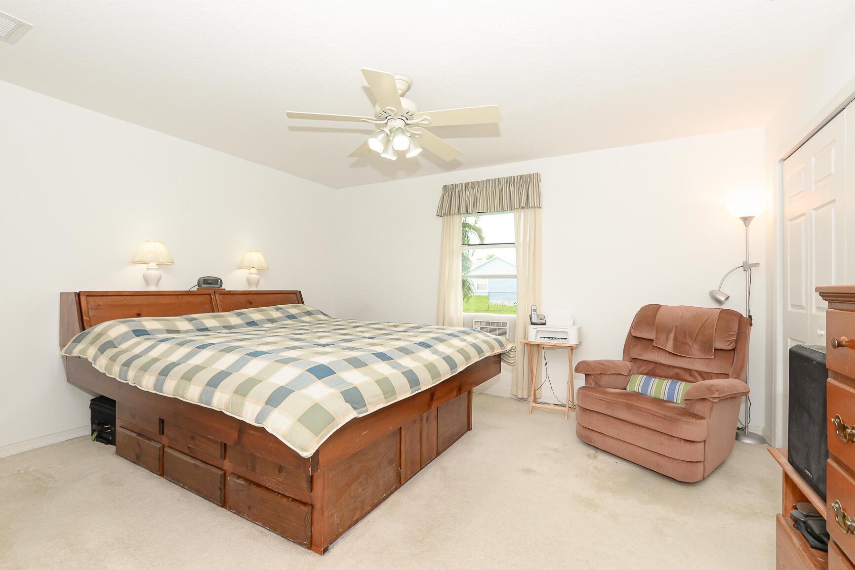 Beautiful meticulously maintained South Bend home on an .36 Acre oversized lot! Features double doors foyer entrance, volume ceiling, 3 BR's, 2 1/2 BA's & 2 Car Garage. Offers 2 Master suites. Main Master Bath has double sinks with soaking tub & shower. Large laundry room / workshop. Eat in kitchen includes breakfast bar, island & pantry. Fabulous Expansive screened enclosed lanai for BBQ's and entertaining. New roof and hot water heater in 2024. LG Lot with Room for a Pool & mature landscaping. No HOA so bring your boat, RV and toys! Driveway can be widened. Located close to boat ramps, shopping, doctors, hospitals, schools, golf & beaches. The Treasure Coast boasts of the beautiful waterways for fishing, boating & beaches! Florida Living is waiting for you! Hurricane Shutters.