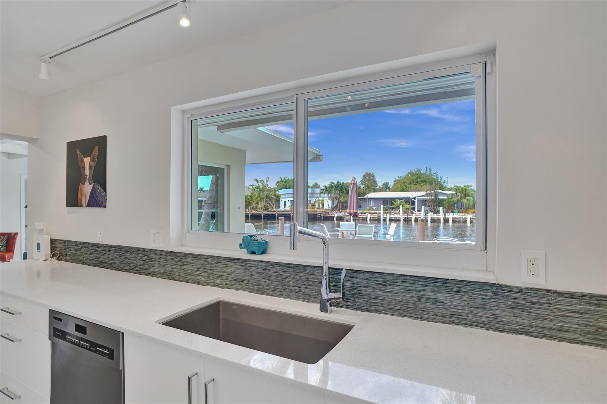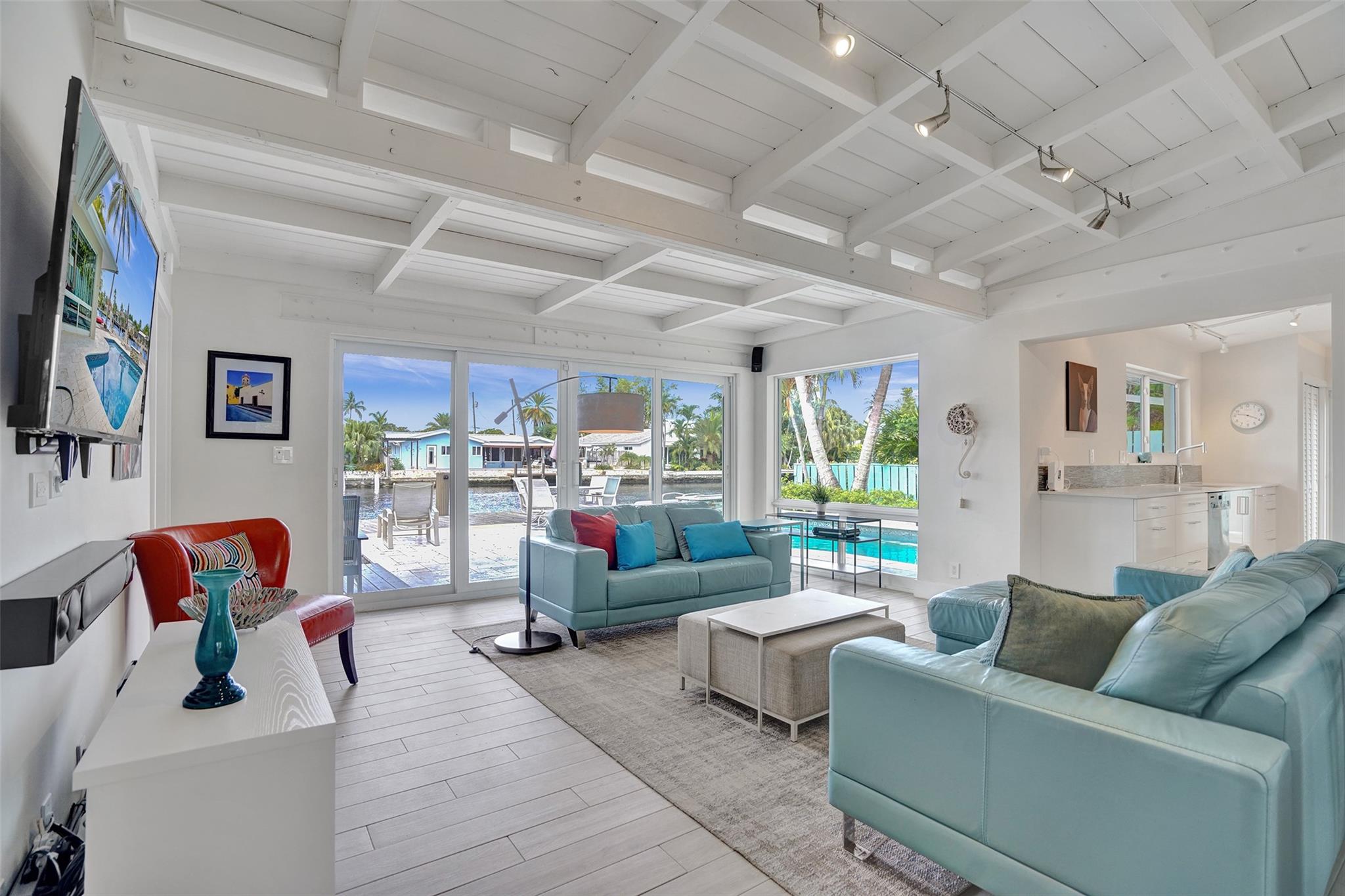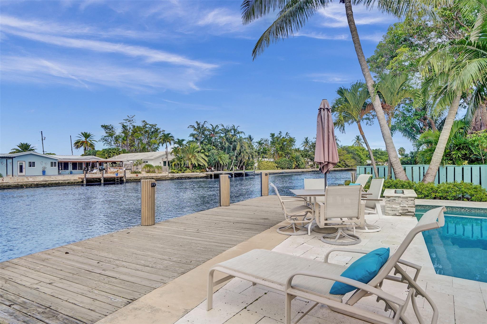 STUNNING EAST WILTON MANORS 3/2 WATERFRONT HOME IN SOUGHT-AFTER CORAL GARDENS NEIGHBORHOOD. NO EXPENSE WAS SPARED IN THIS COMPLETELY RENOVATED HOME. LOFT-LIKE, VAULTED CEILINGS, AND A SEAMLESS FLOW FROM ENTRY TO BACKYARD ON THE NORTH FORK OF MIDDLE RIVER. INTERIOR FEATURES A COMPREHENSIVE RENOVATION WITH QUARTZ COUNTERTOPS IN KITCHEN AND BATHS, IMPORTED GLASS TILE BACKSPLASH, BLANCO SOLID SURFACE SINK, NEW APPLIANCES INCLUDING PROPANE RANGE, AND NEW ELECTRICAL SYSTEM. IMPACT GLASS SLIDERS. NEW 2020 ROOF, PROPANE GAS TANKLESS WATER HEATER. EXTERIOR BOASTS A COMPLETE POOL RENOVATION WITH FIRE PIT AND WATERFALL, 80' WATERFRONT, RAISED SEAWALL, NEW PILINGS, AND 70' DOCK. PLUS, MUCH MORE. BEING SOLD FURNISHED.