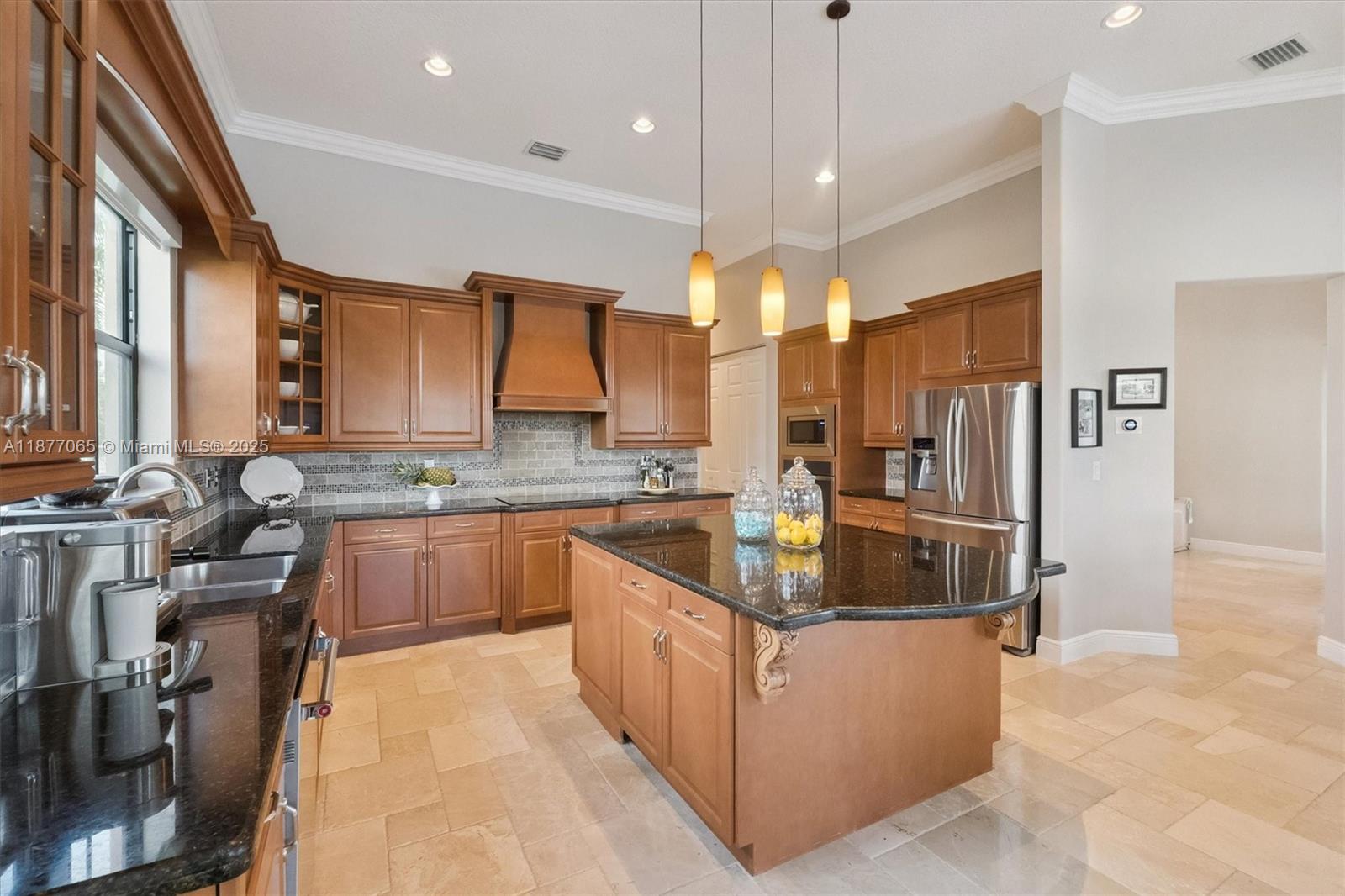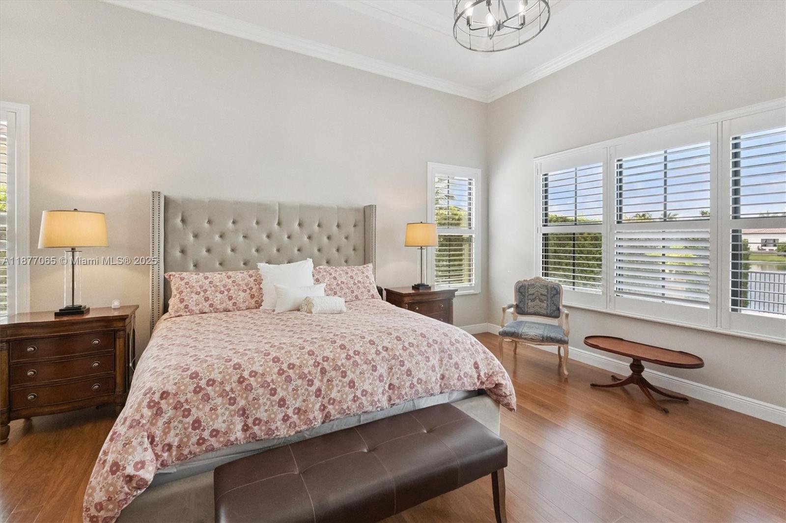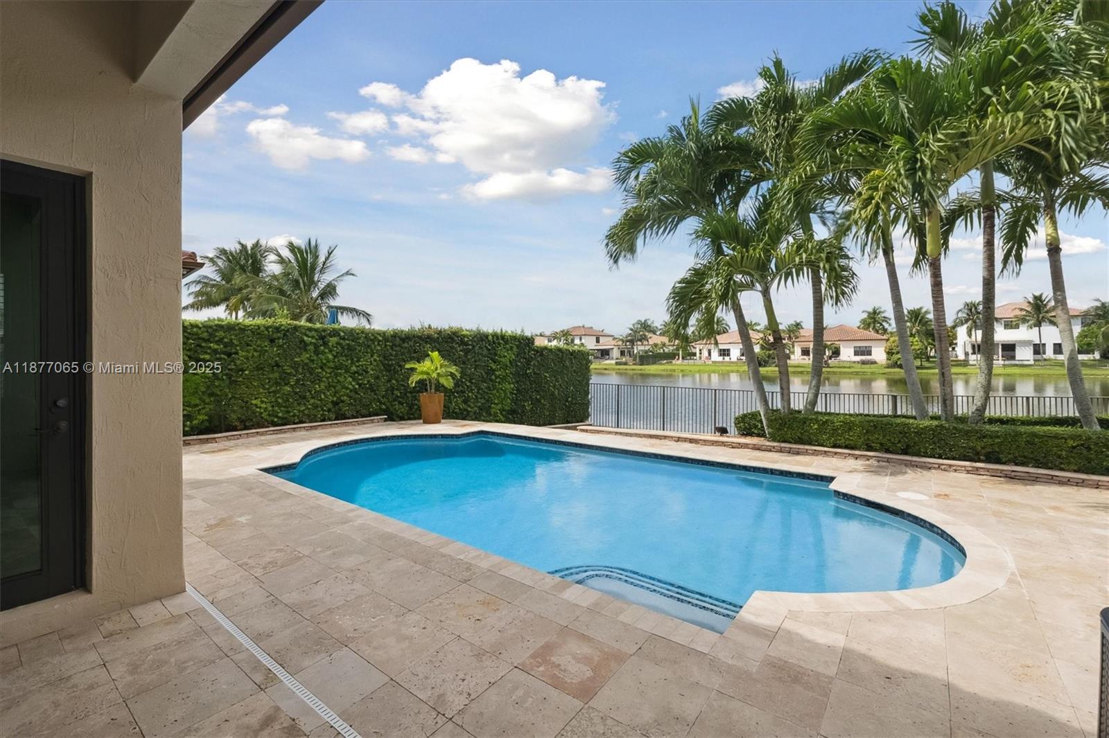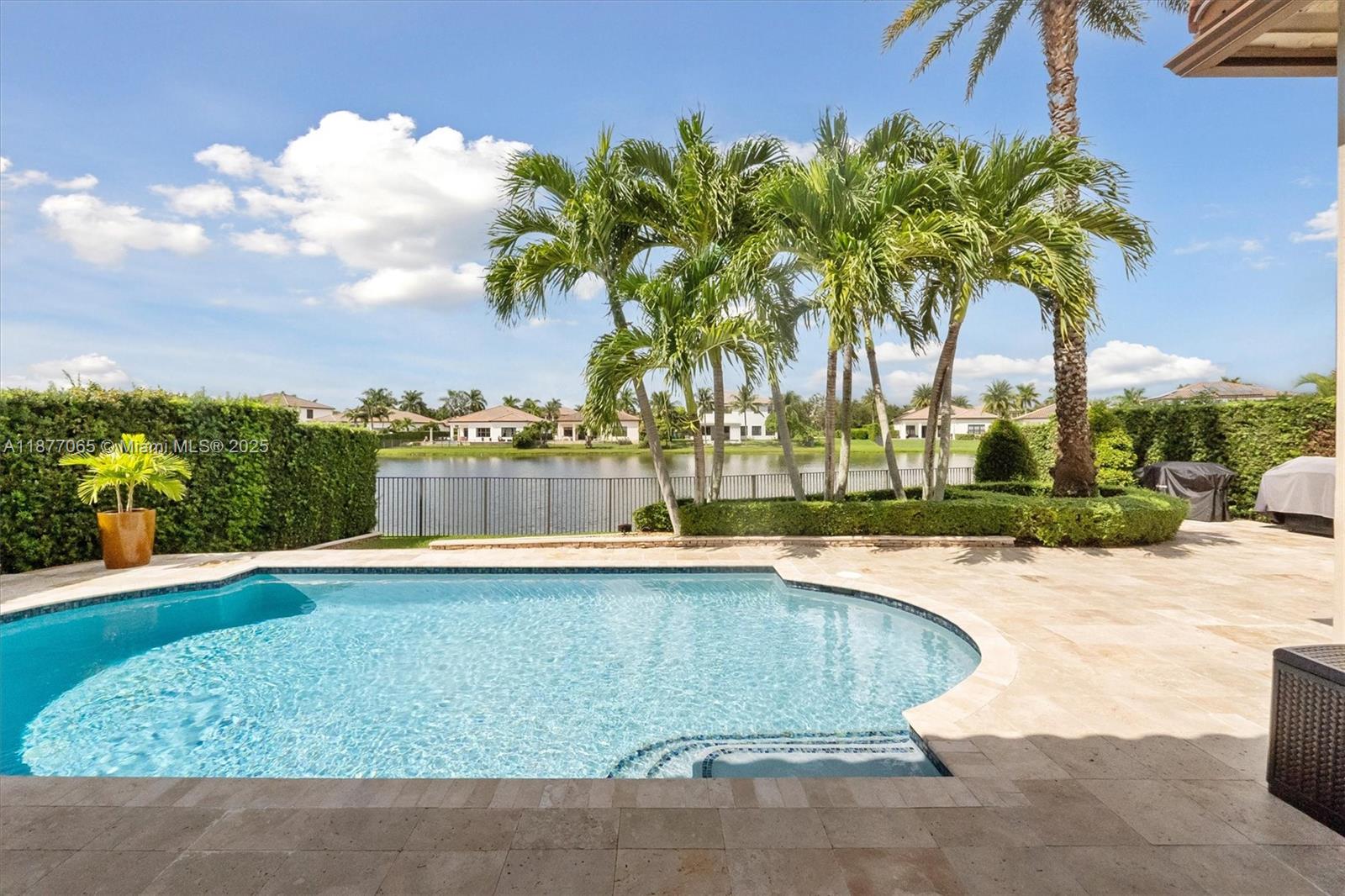 Secluded on a private cul-de-sac with tranquil waterfront views, this Monterra Estate pairs timeless sophistication with modern comfort. Marble floors & soaring ceilings flow beneath elegant crown molding and plantation shutters, while walls of PGT/CGI impact glass (2019) invite seamless indoor-outdoor living. A refinished pool & expansive travertine terrace are surrounded by lush privacy landscaping & full fencing, creating a private resort at home. Practical elegance abounds with an extended driveway, epoxy-finished garage w/attic ladder & EV connection, dual A/C's, & generator wiring for half the residence. Resort-style amenities include clubhouse, fitness center, basketball & tennis courts, dog park, and walking trails. A+ rated schools and convenient access to house of worship.