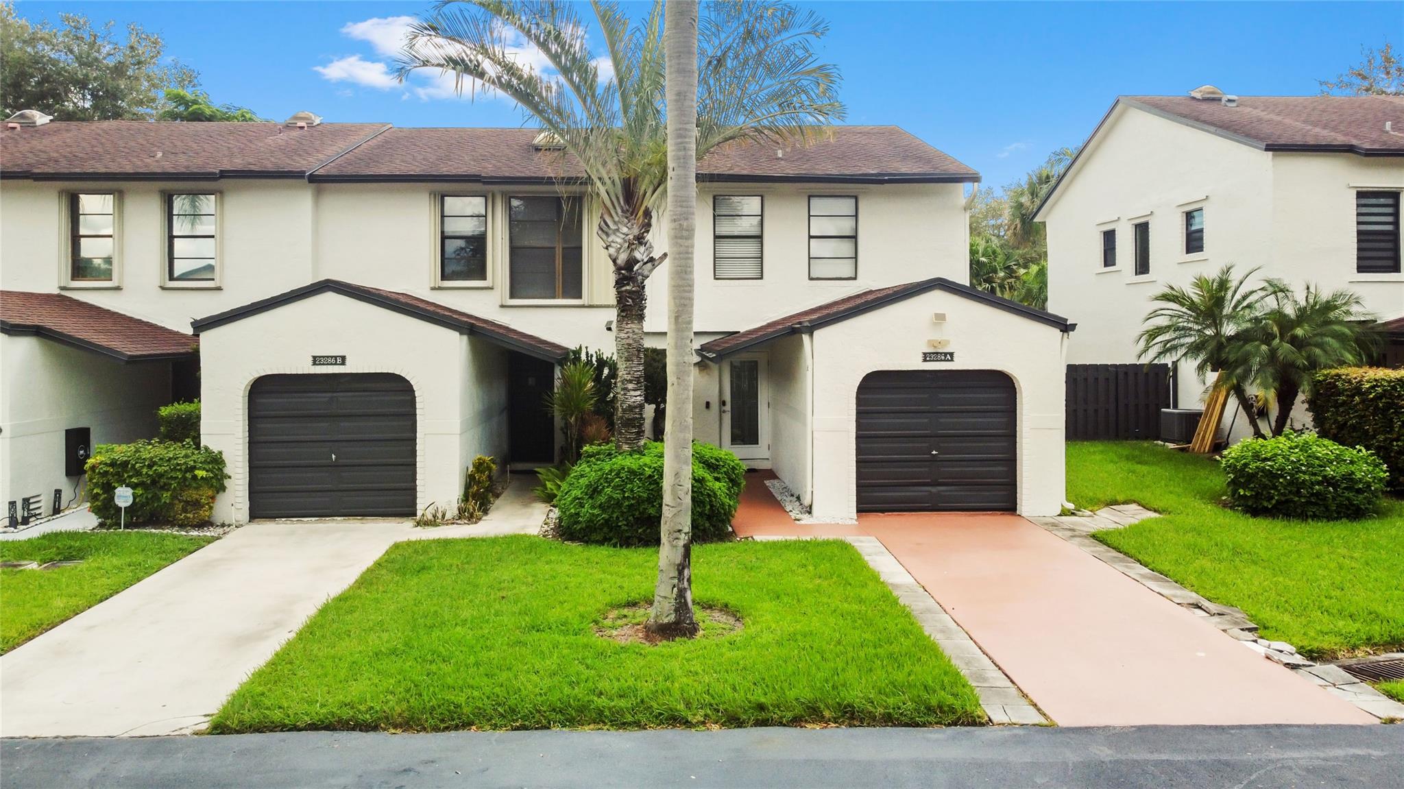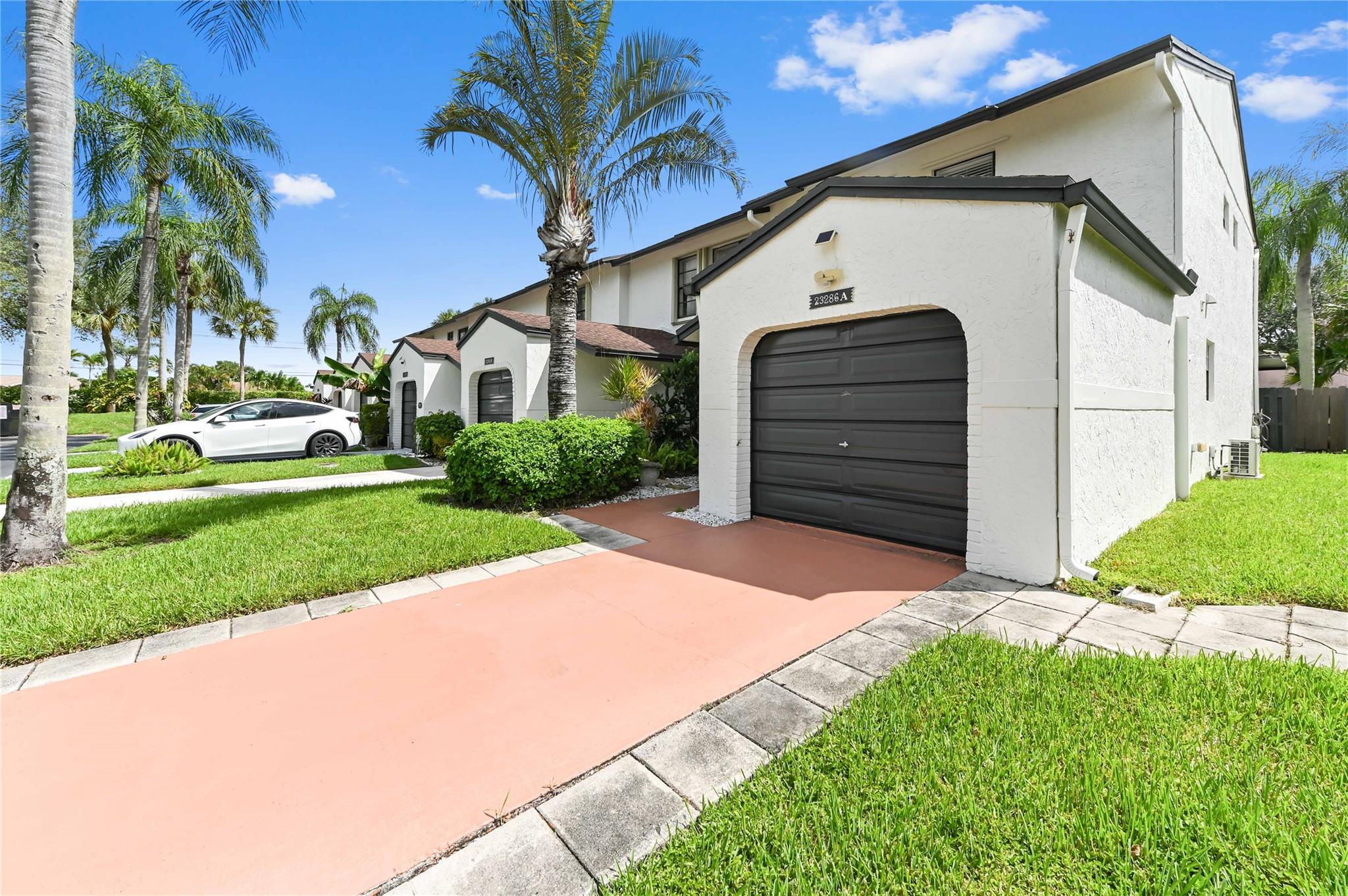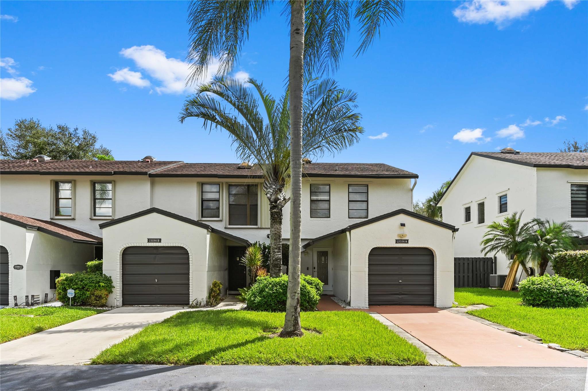 WOW. Remodeled 3 bed 2.5 bath corner townhome (garage converted to 4th bed/office easily return to garage). Quiet community conveniently just off 18th St West Boca. 2 story w screened porch. Downstairs tile floors, LED lighting & gourmet kitchen. Ideal first time home or growing family. Roof 2016. Tankless water heater. AC 2009. Washer / Dryer inside. Saturnia tile downstairs, rich chocolate engineered floor upstairs. Kitchen and 3 baths remodeled. Attractive front impact door. Primary bedroom w volume ceiling and walk in closet. Checks all the boxes, great first home. Community clubhouse, pool, tennis, cable, landscaping /lawn maint, trash included w HOA. Attached garage, private driveway and guest parking. All ages. Fee simple townhome. 2 pets 35 lbs. See 3d tour! RATES DOWN time to buy.