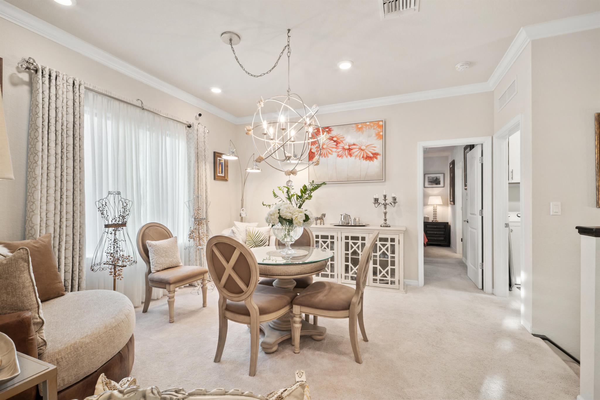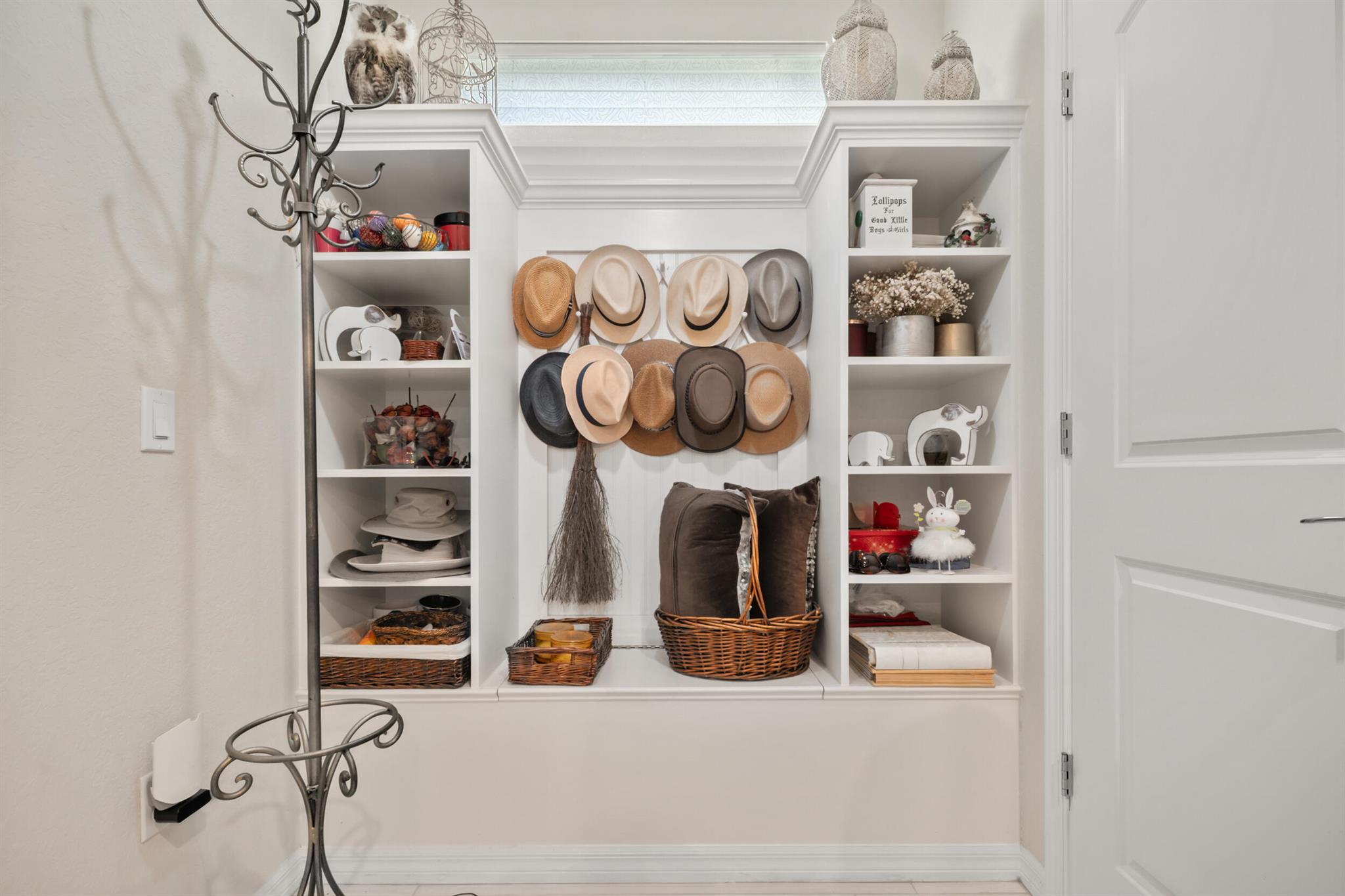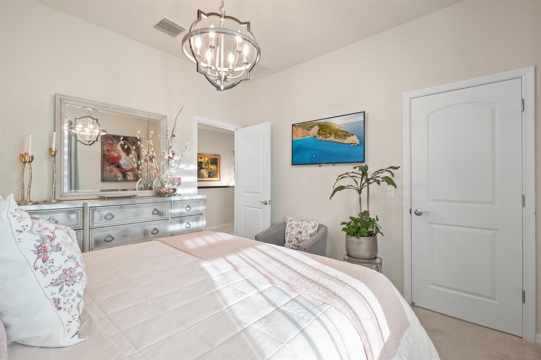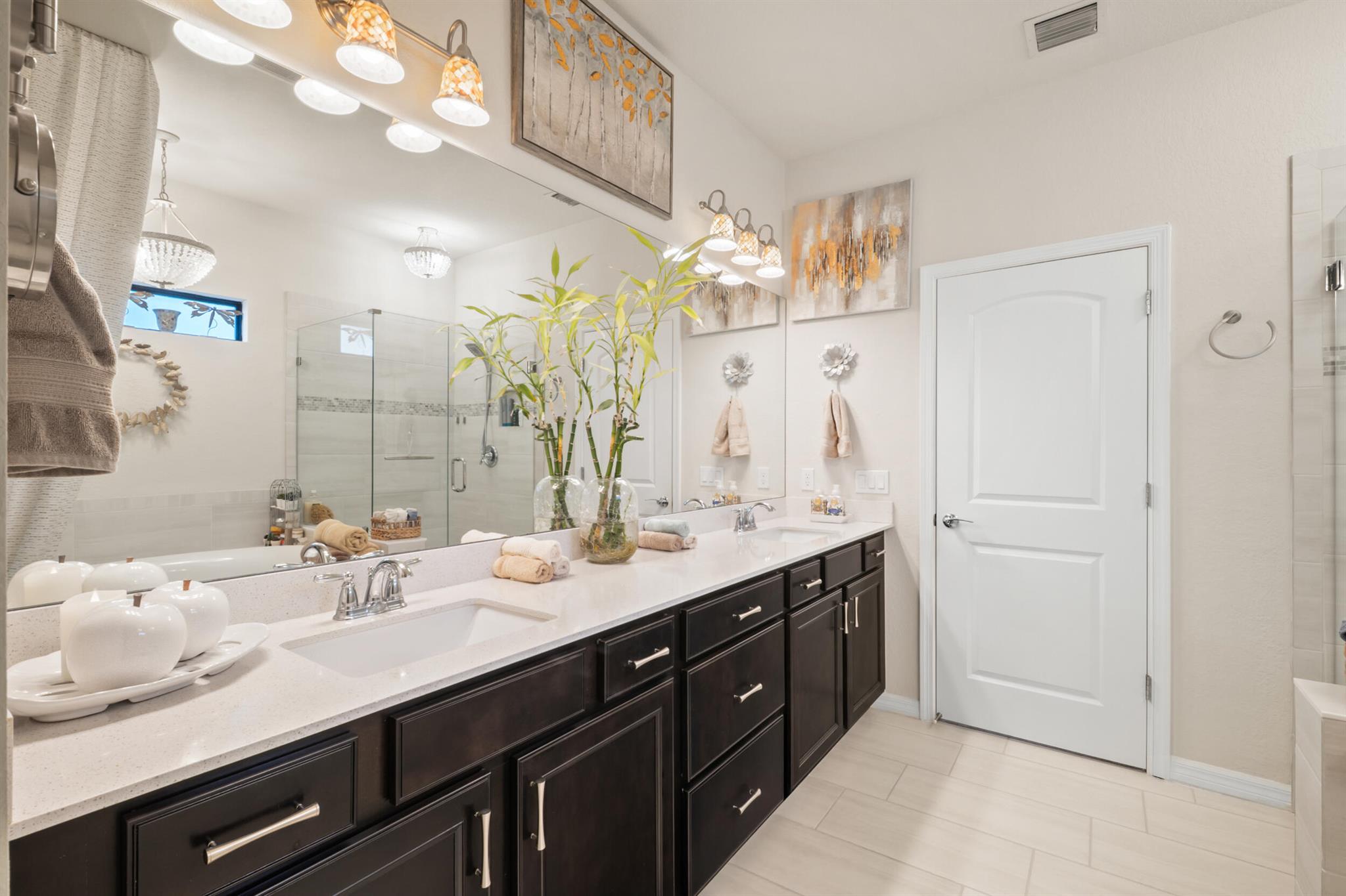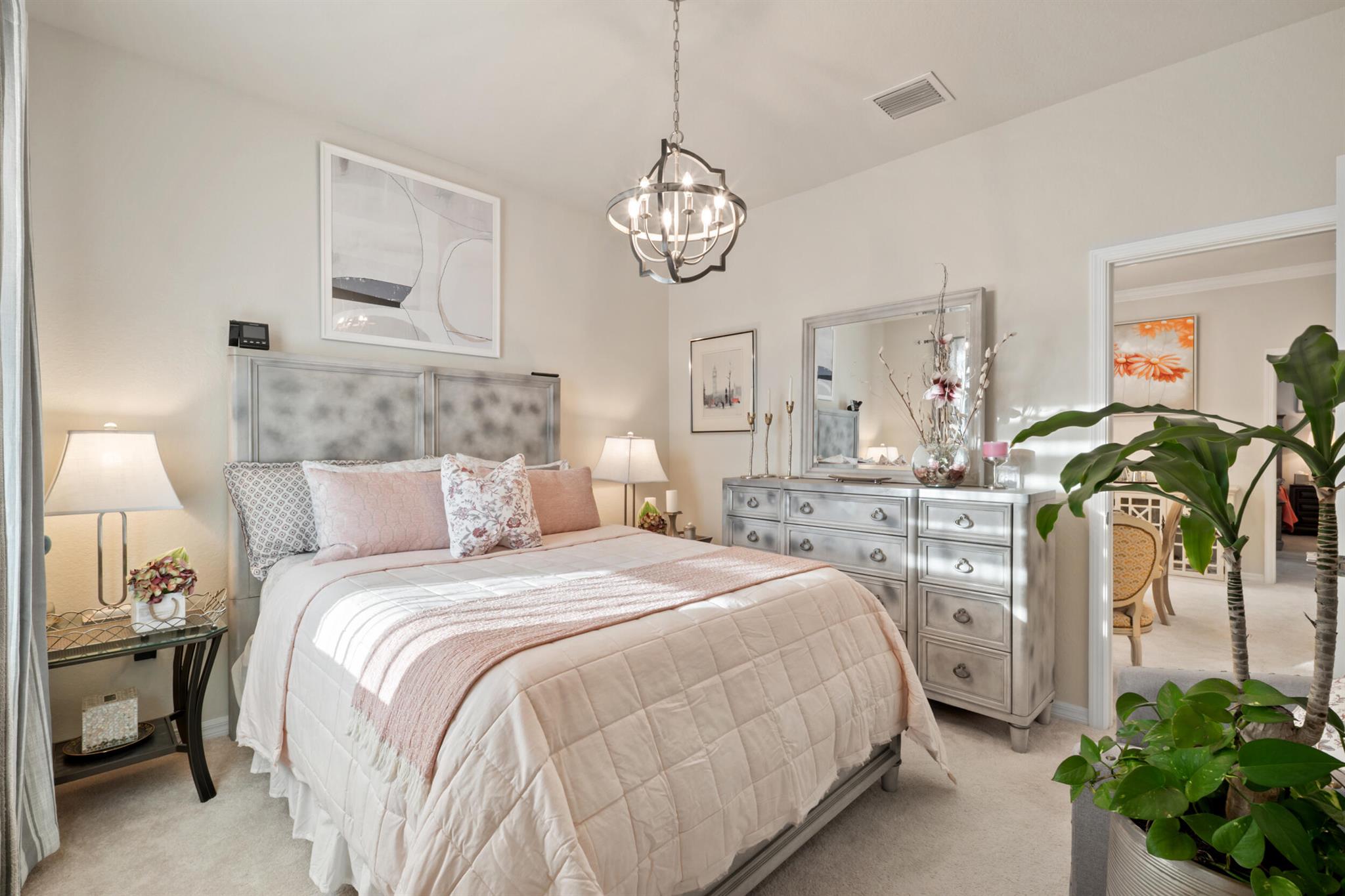 Located in the highly desirable gated community of The Fields, this beautifully customized two-story residence combines modern luxury with thoughtful design. Featuring 3 bedrooms, a dedicated den/office, 2.5 bathrooms, and an upstairs loft, this home offers flexible living spaces ideal for both everyday comfort and entertaining.From the moment you enter through the custom impact-resistant stained glass door, you'll be welcomed into a light-filled, open-concept layout. The centerpiece of the home is the chef-inspired kitchen, equipped with solid wood cabinetry, quartz countertops, a gas range, high-end appliances, and a spacious center island perfect for gathering and hosting. With three separate pantries, an adjacent mudroom, and a functional flow to