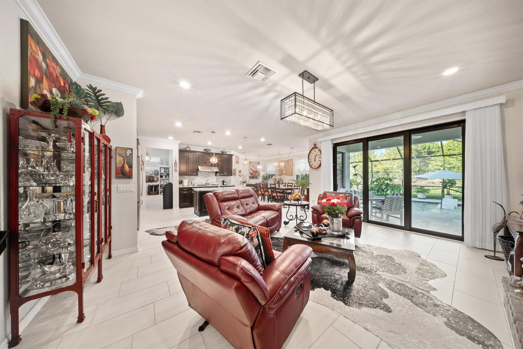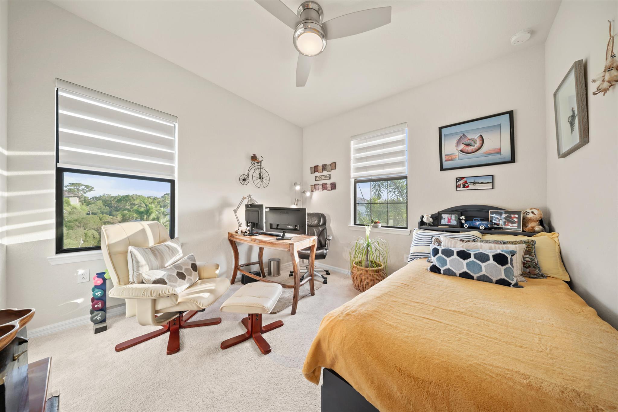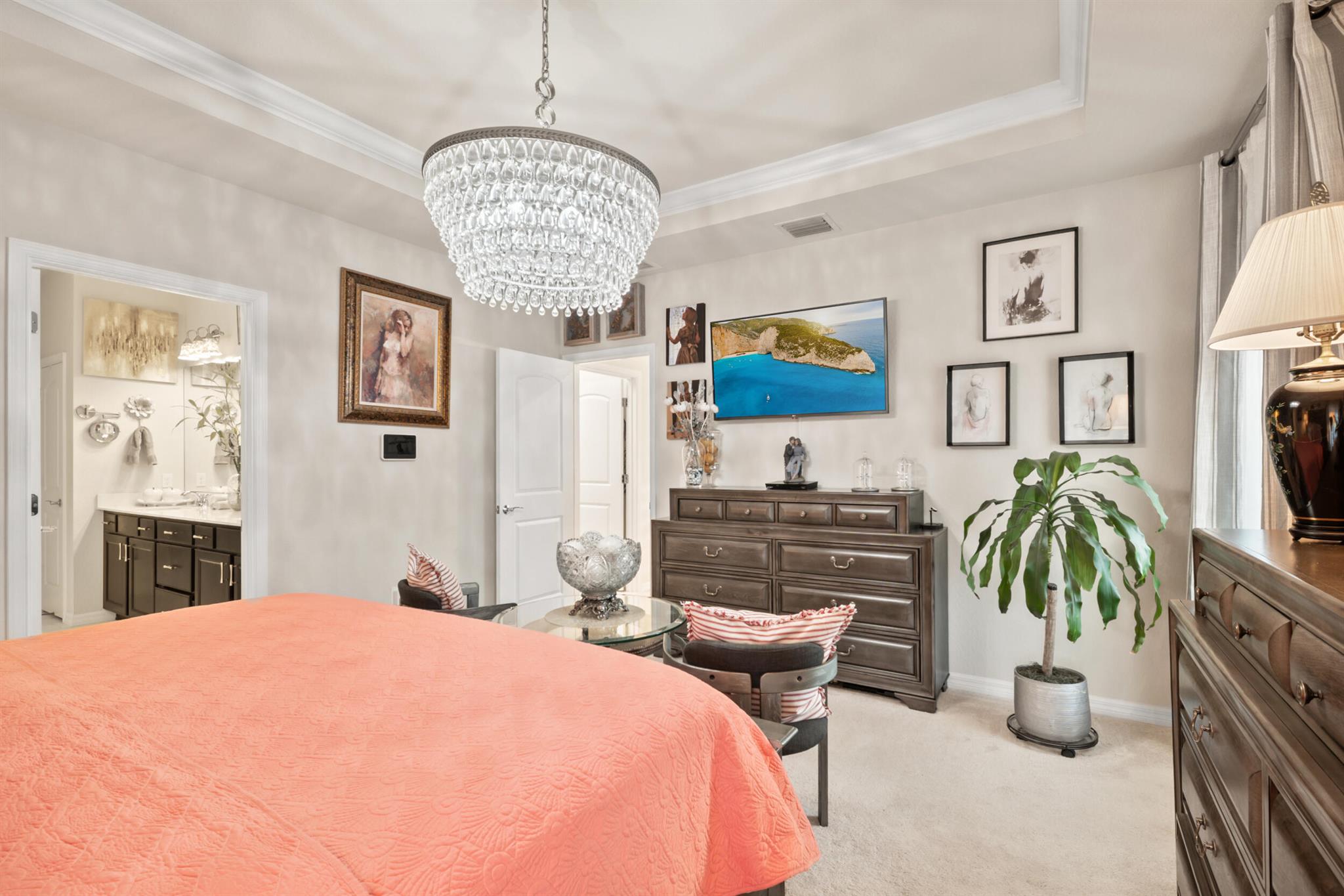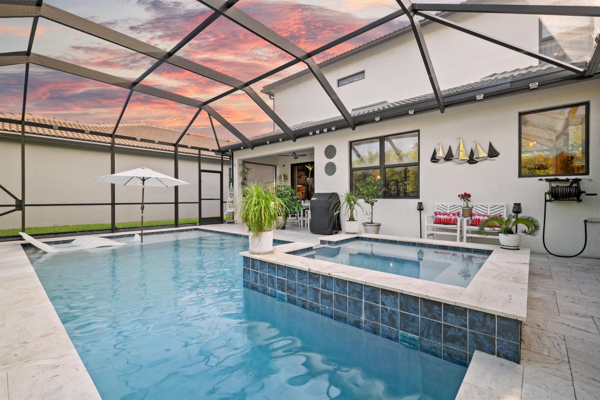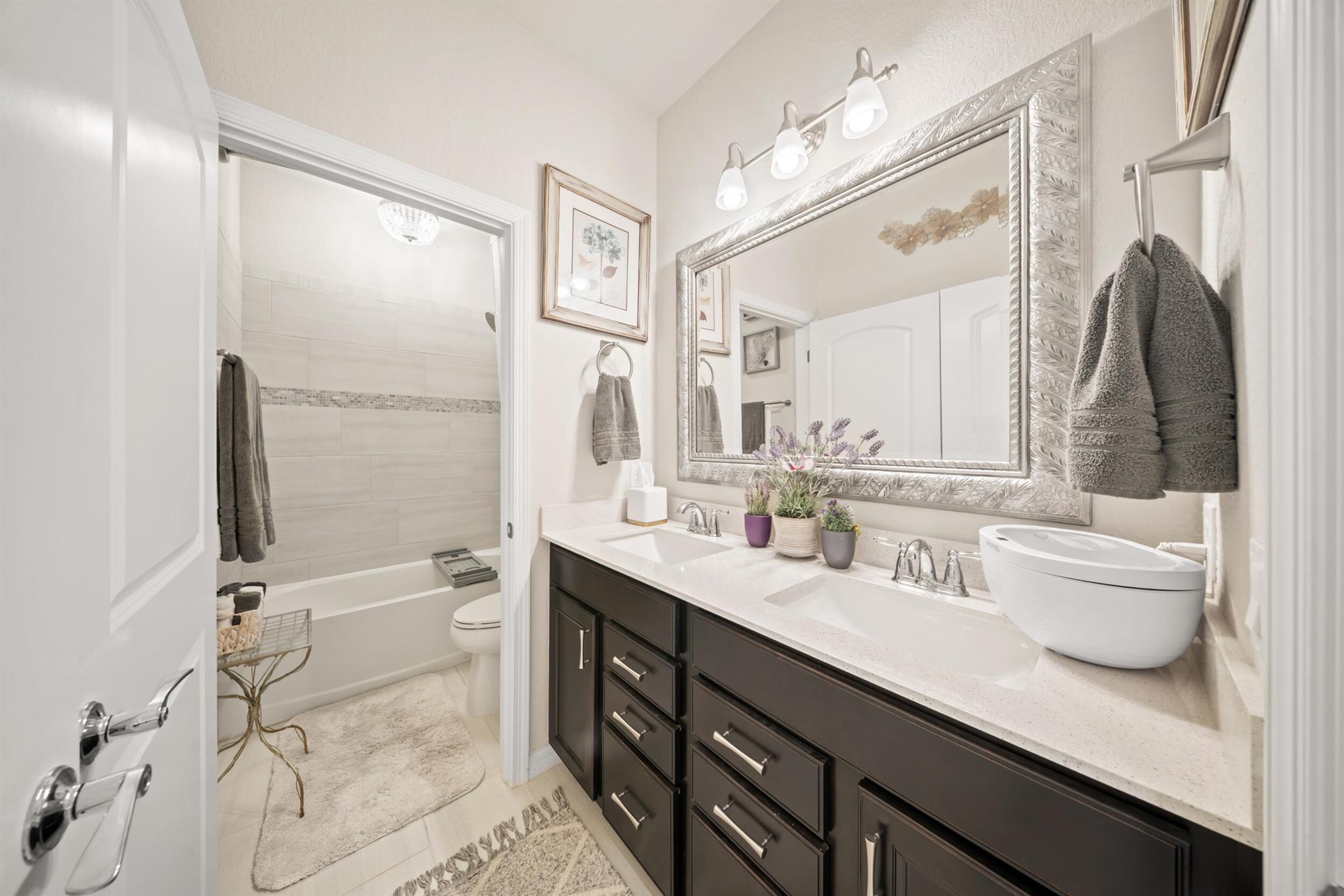 Located in the highly desirable gated community of The Fields, this beautifully customized two-story residence combines modern luxury with thoughtful design. Featuring 3 bedrooms, a dedicated den/office, 2.5 bathrooms, and an upstairs loft, this home offers flexible living spaces ideal for both everyday comfort and entertaining.From the moment you enter through the custom impact-resistant stained glass door, you'll be welcomed into a light-filled, open-concept layout. The centerpiece of the home is the chef-inspired kitchen, equipped with solid wood cabinetry, quartz countertops, a gas range, high-end appliances, and a spacious center island perfect for gathering and hosting. With three separate pantries, an adjacent mudroom, and a functional flow to