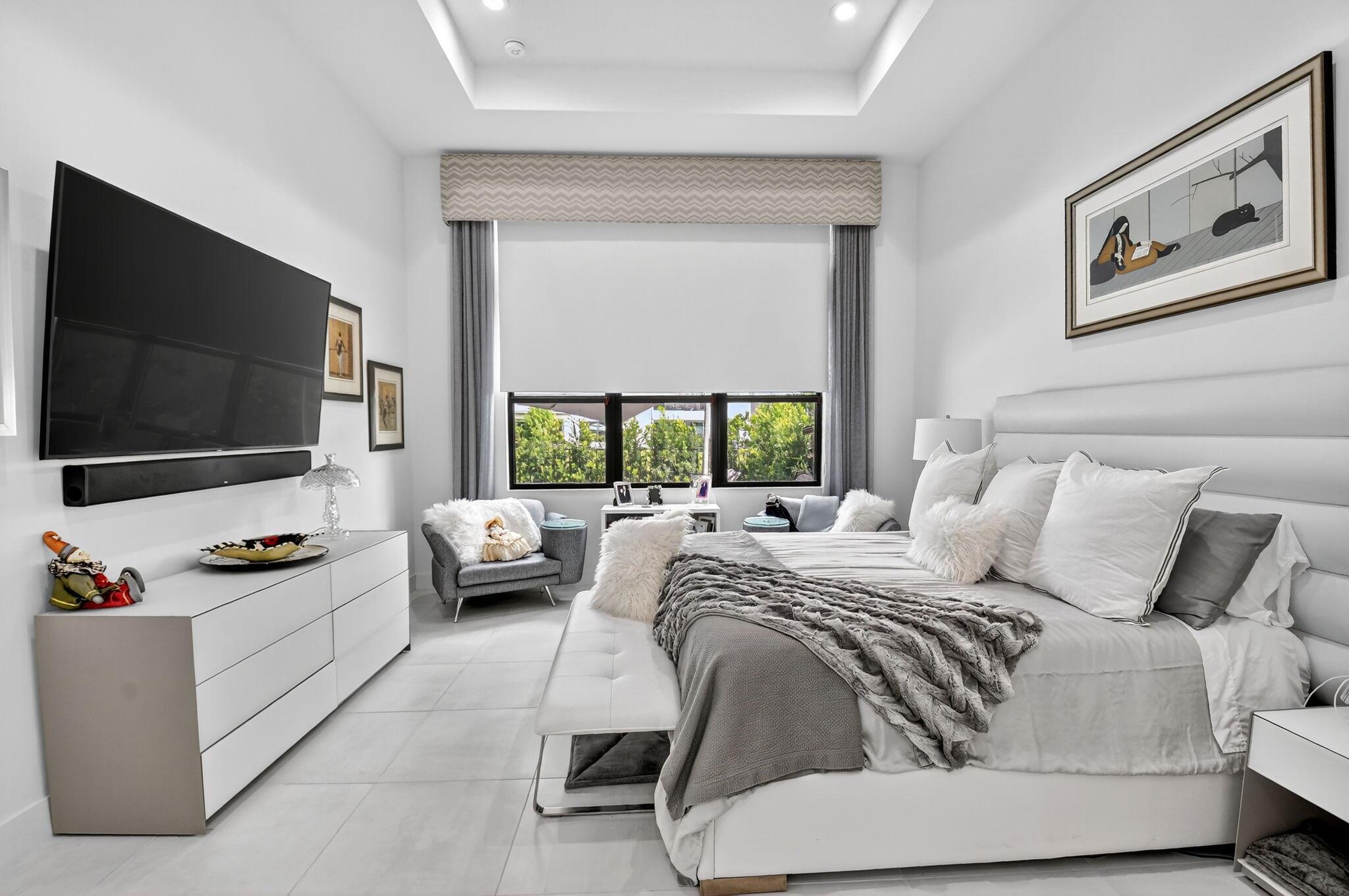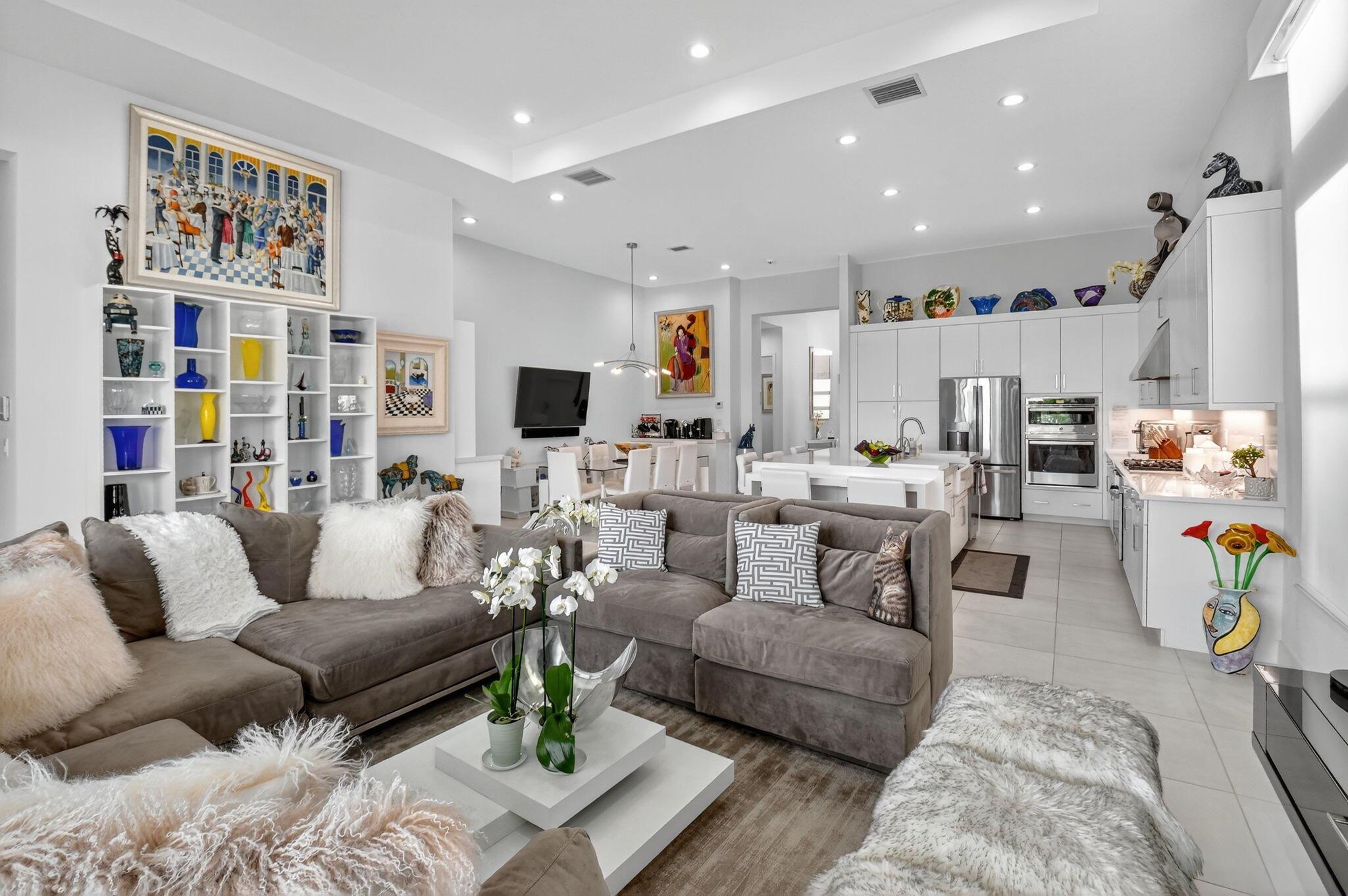 Beautifully decorated one-story, 3-bedroom + office home with quiet lake views in Lotus Palm! Barely lived-in Bermuda model complete with designer window treatments, electric shades throughout, and full-house generator. The interior is light, bright, and open. Eat-in kitchen features an extended waterfall island, built-in coffee bar, and stainless steel appliances, including a gas cooktop and double ovens. Master suite has 2 large custom walk-in closets, and a master bath with 2 sinks, large shower, custom stand-alone tub, and touchless commode. All guest bedrooms are ensuite with built-out closets. Outside, the backyard features a pool with spa, entertainment area, and stunning lake views. Furniture is negotiable.