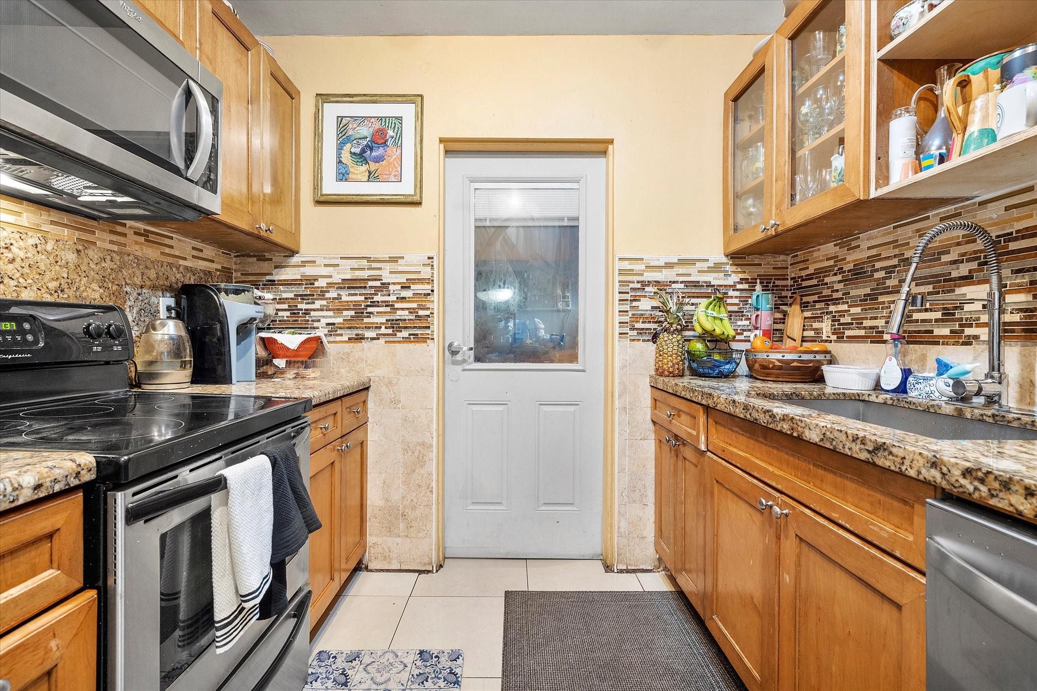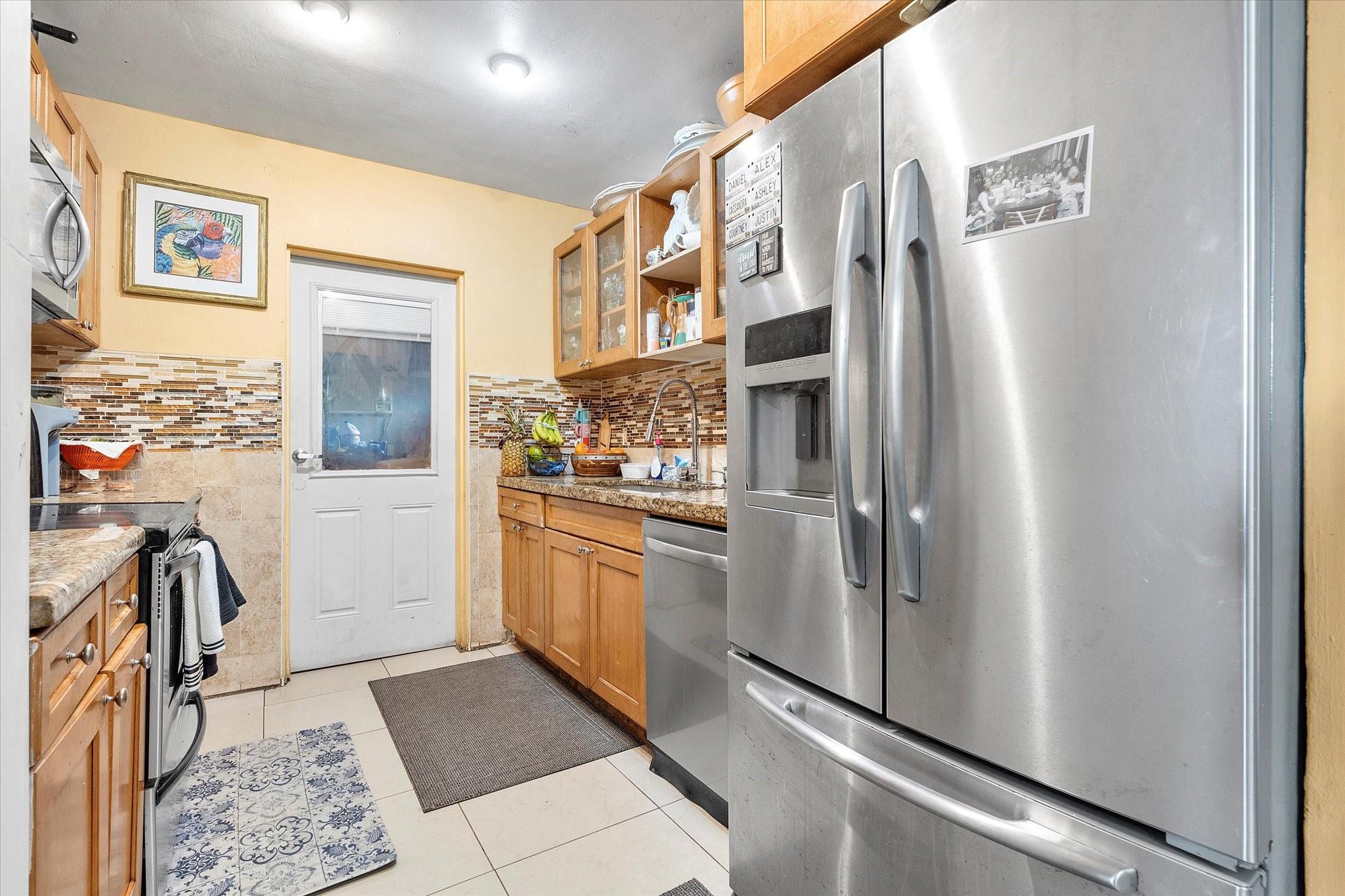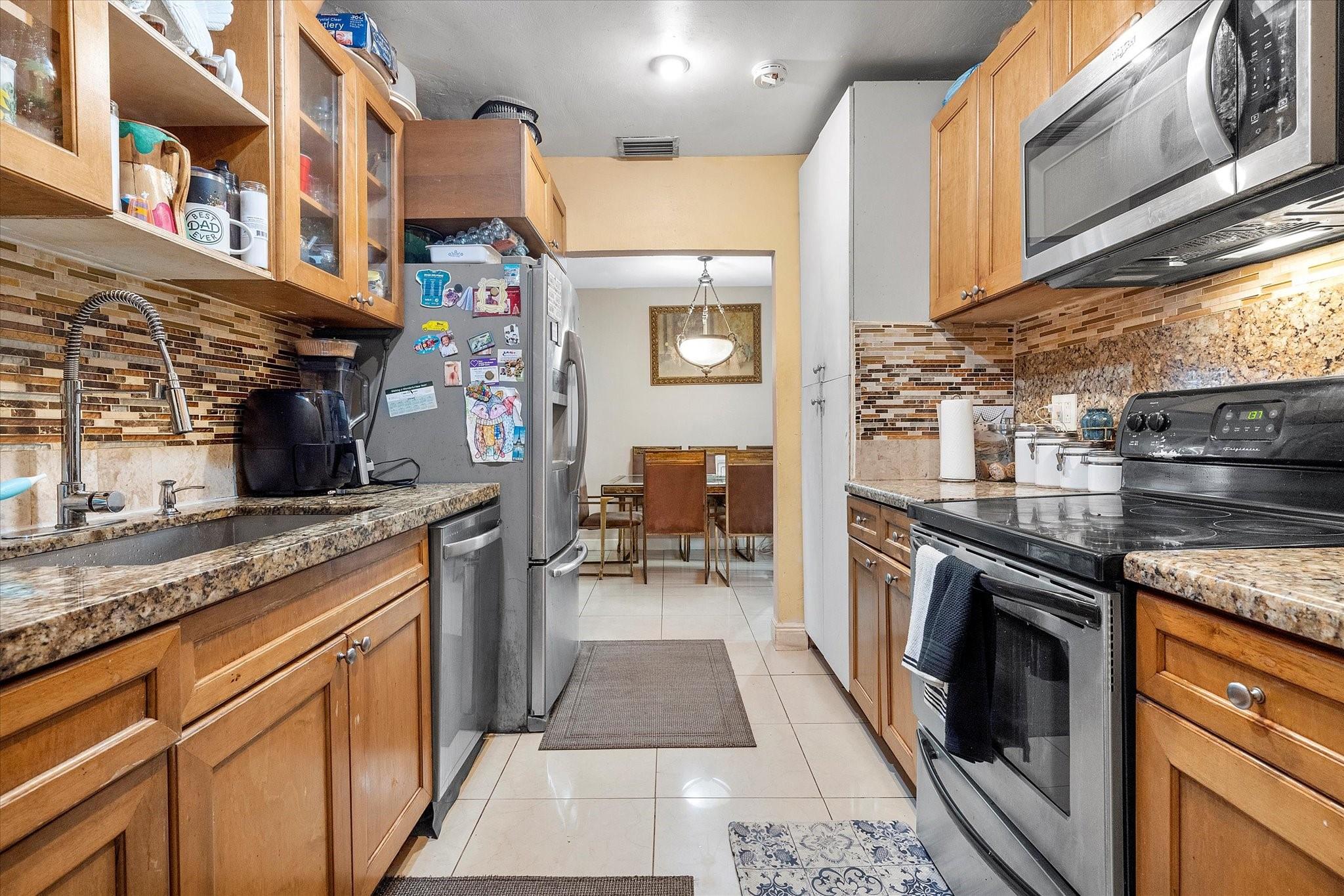 Great opportunity to own a spacious corner-lot home in Miami with endless potential! This residence features multiple living areas, a formal dining room, and an updated kitchen with granite countertops, wood cabinetry, and stainless steel appliances. The main home offers comfortable bedrooms and baths plus an attached efficiency with kitchenette—ideal for in-laws, guests, or rental income. Enjoy a huge fenced backyard with mature trees, patio space, and storage structures—plenty of room to entertain, garden, or add a pool. Property is Owner-occupied. Convenient to highways, shopping, dining, and schools.