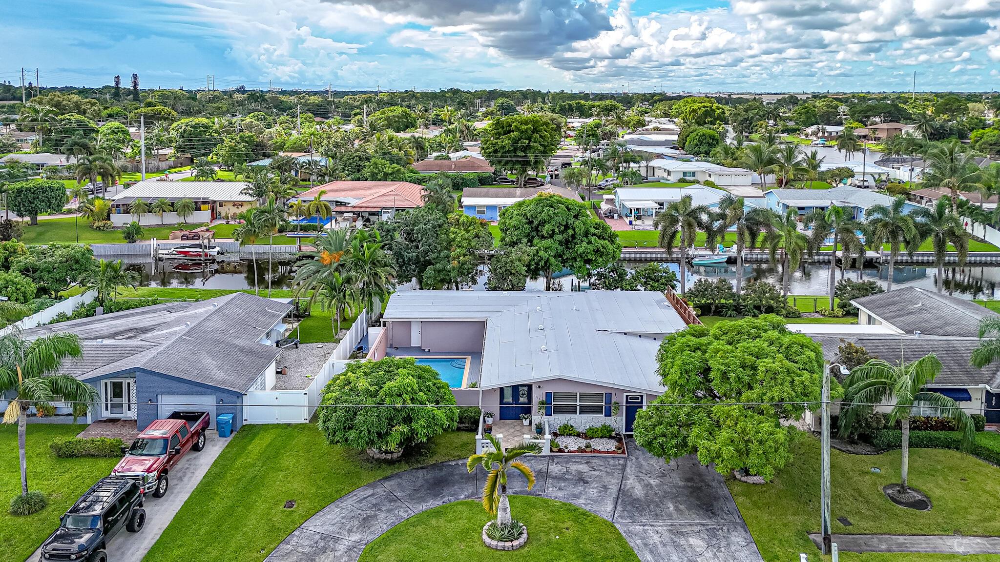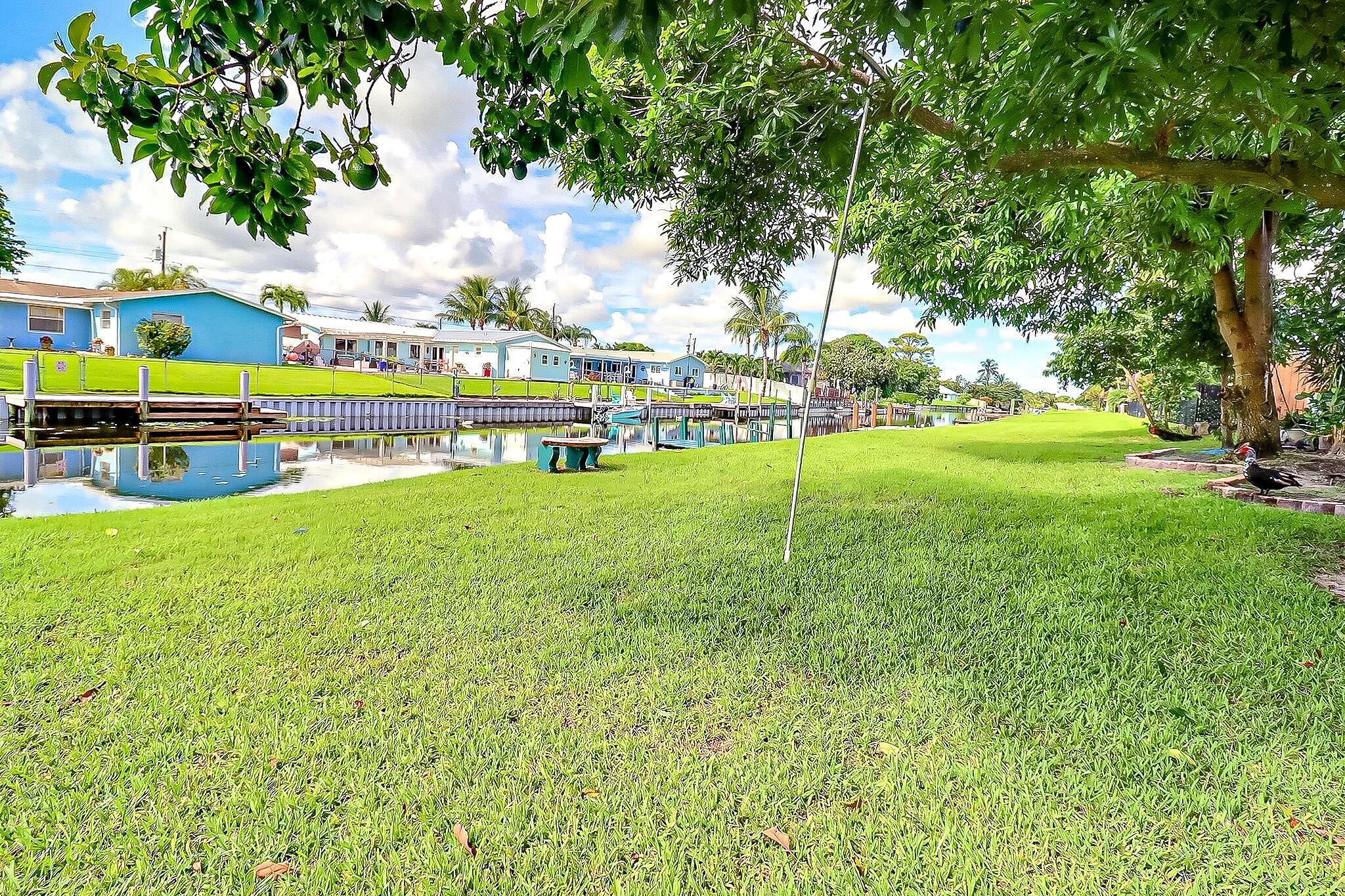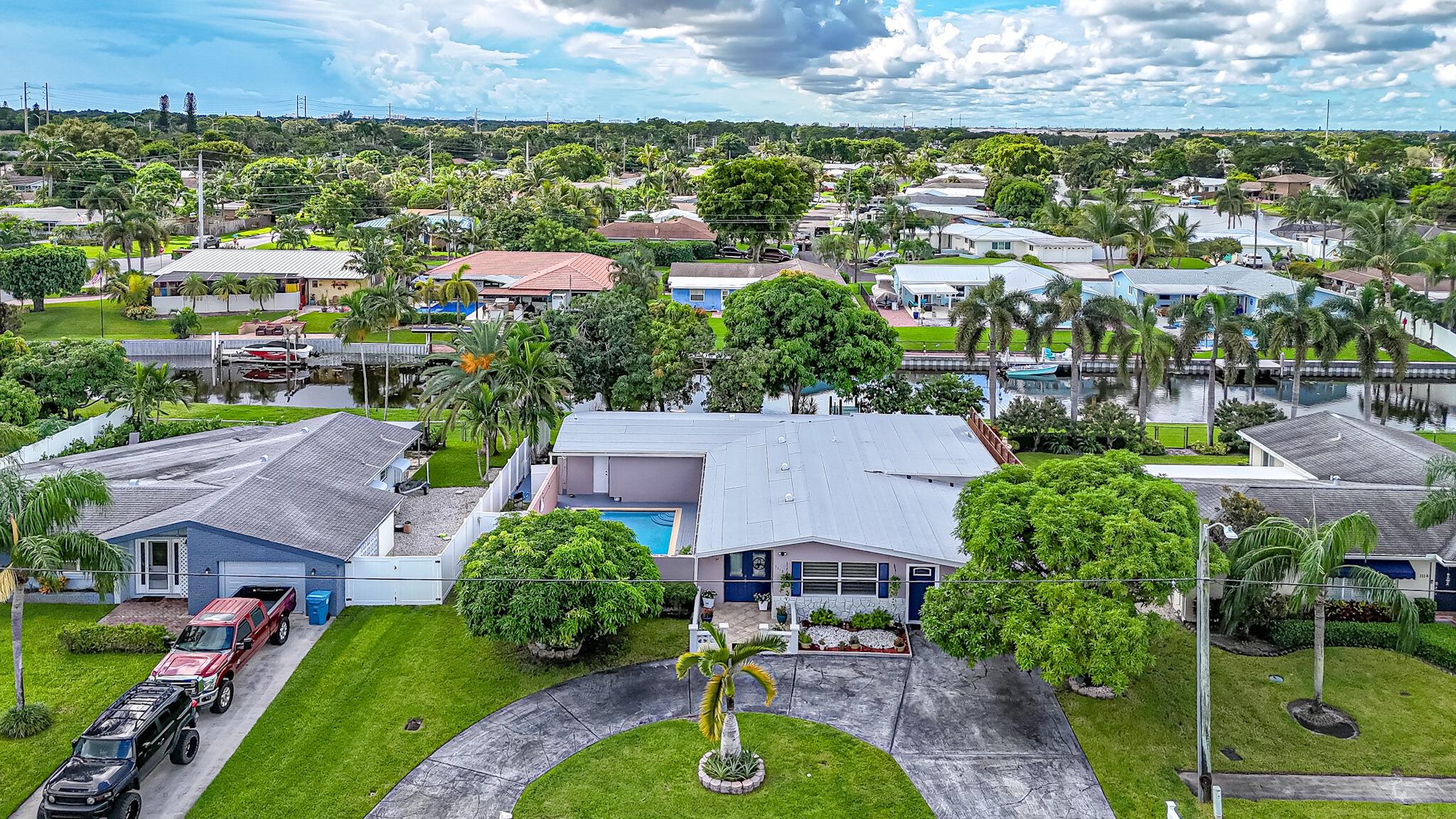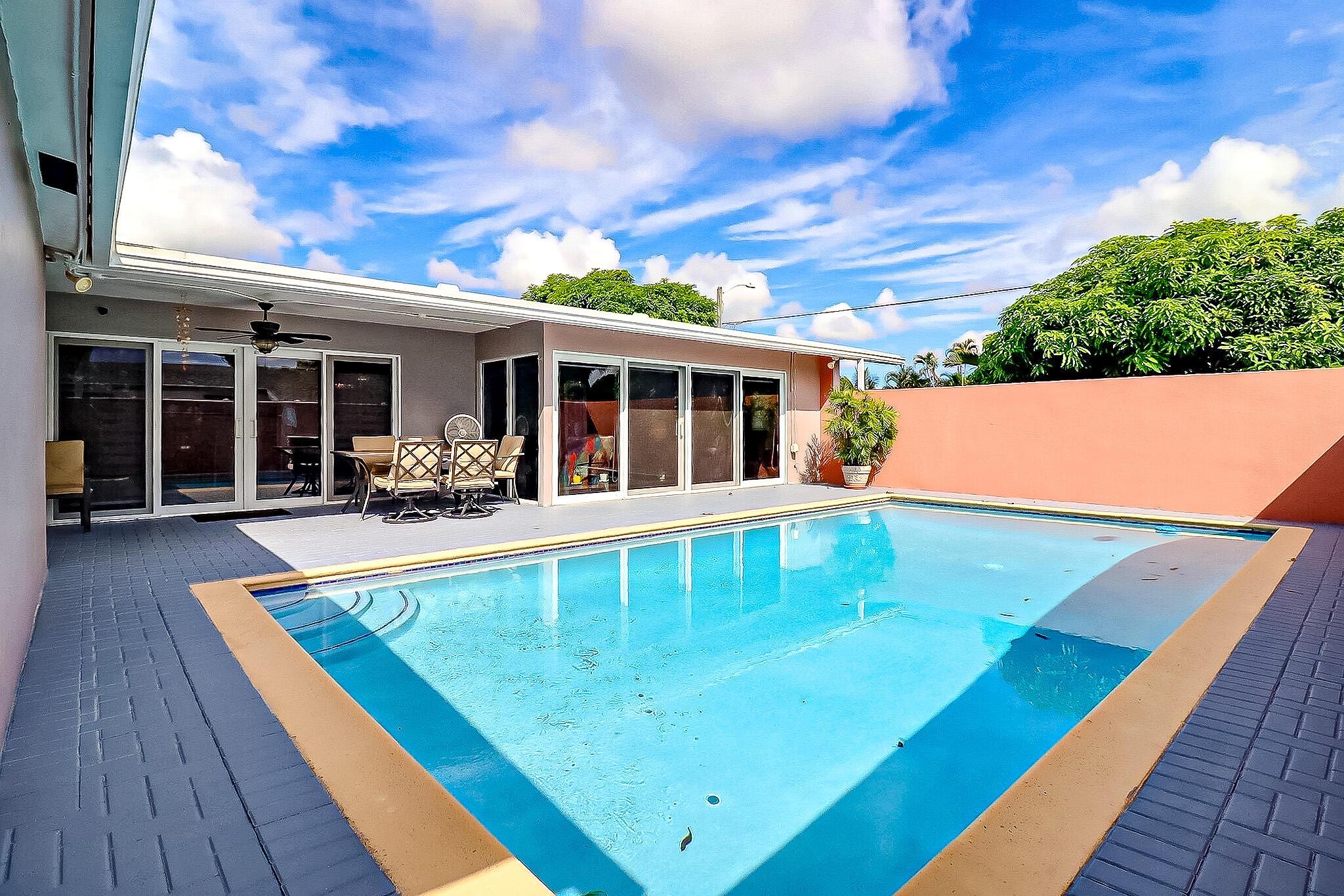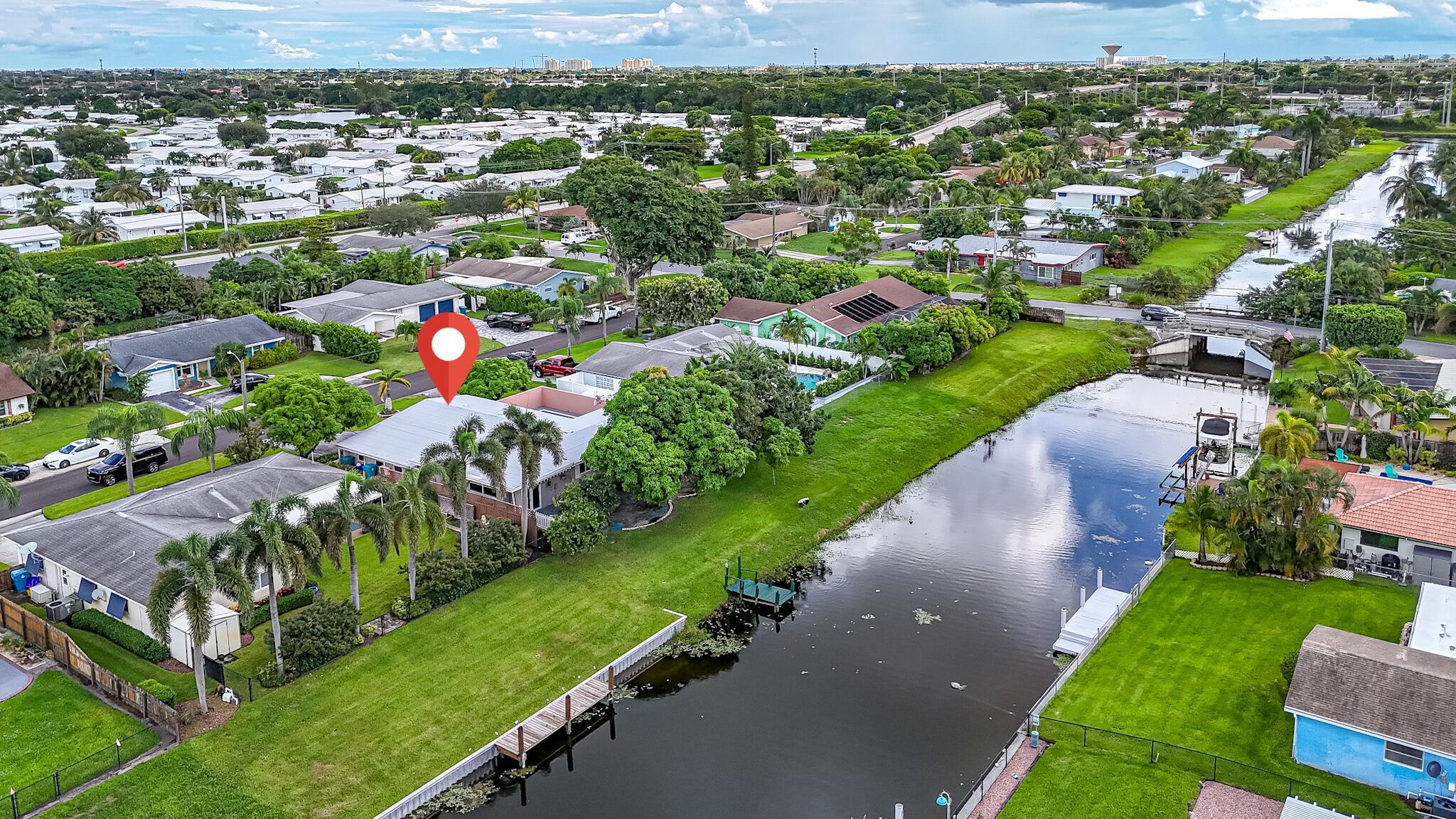 Enjoy Florida living at its best in this no-HOA waterfront home! Offering 4 bedrooms and 3 baths, including a private efficiency-suite with its own bed and bath--ideal as an office, guest space, or game room. Recently updated with a 2024 roof, impact windows, and fresh paint, this property is move-in ready. Inside, you'll find hardwood floors, crown molding, a spacious living room, a stunning master bathroom, and a kitchen with quartz countertops and solid wood cabinets. Outside features a sparkling pool with expansive deck and a private dock with lake access--perfect for boating, fishing, or relaxing by the water. Walking distance to Caloosa Park, Ocean Ridge Beach, and endless shopping!