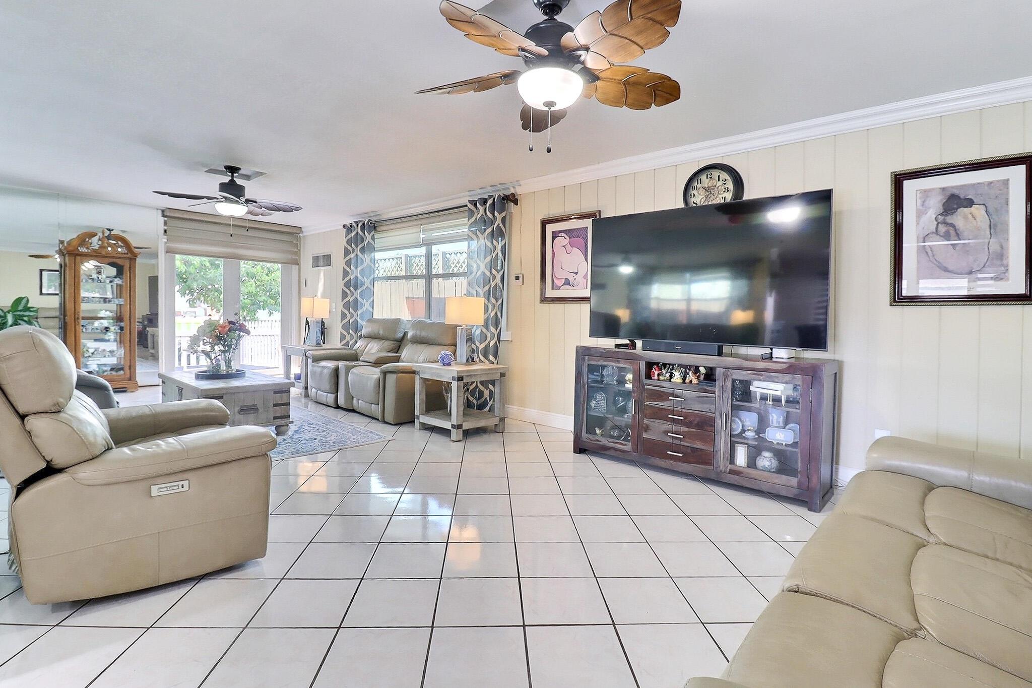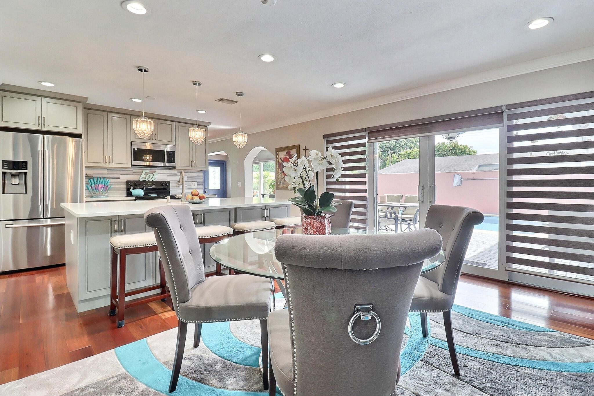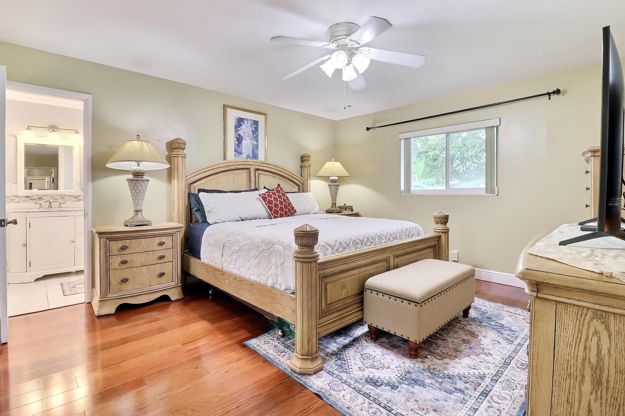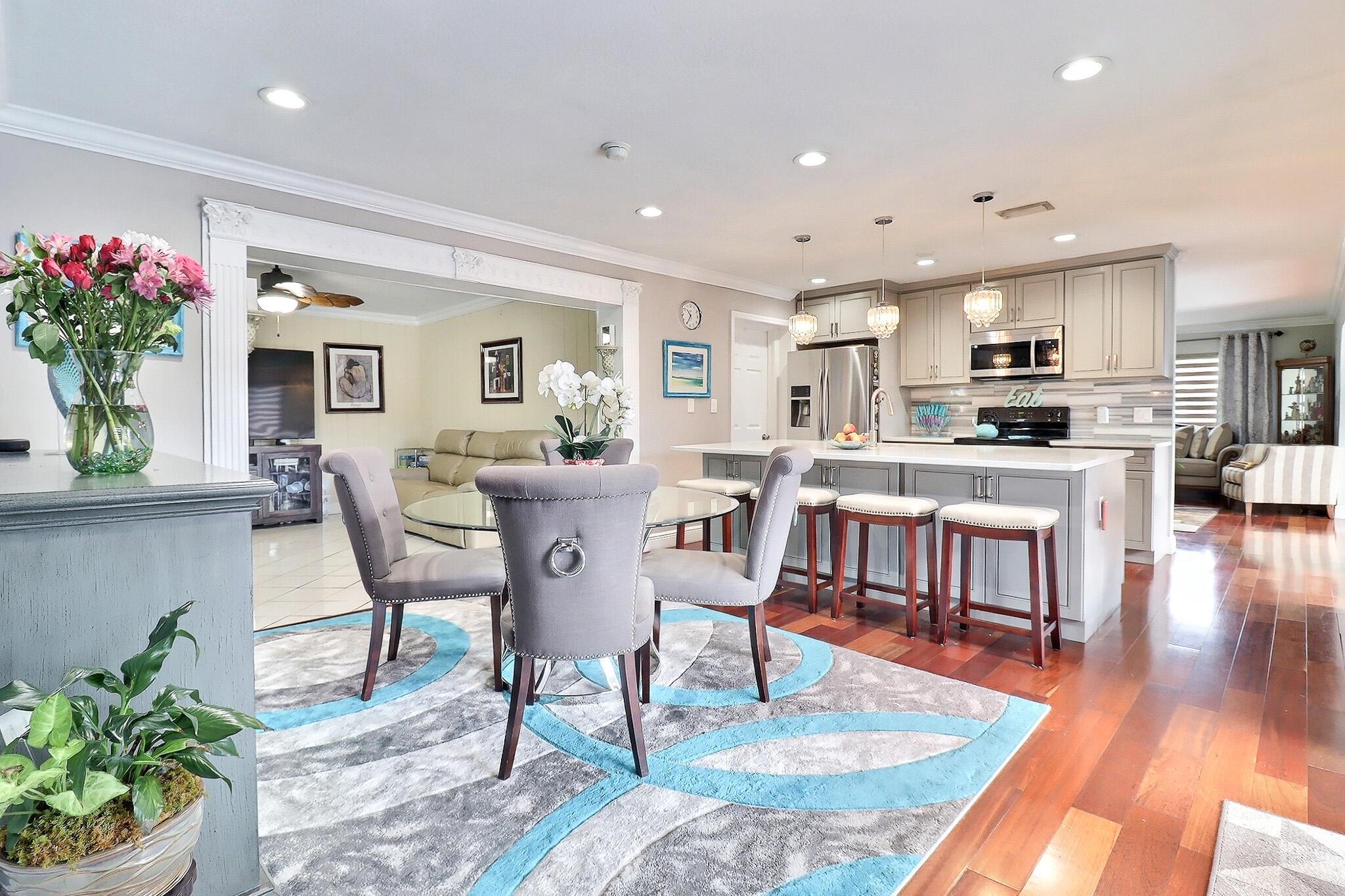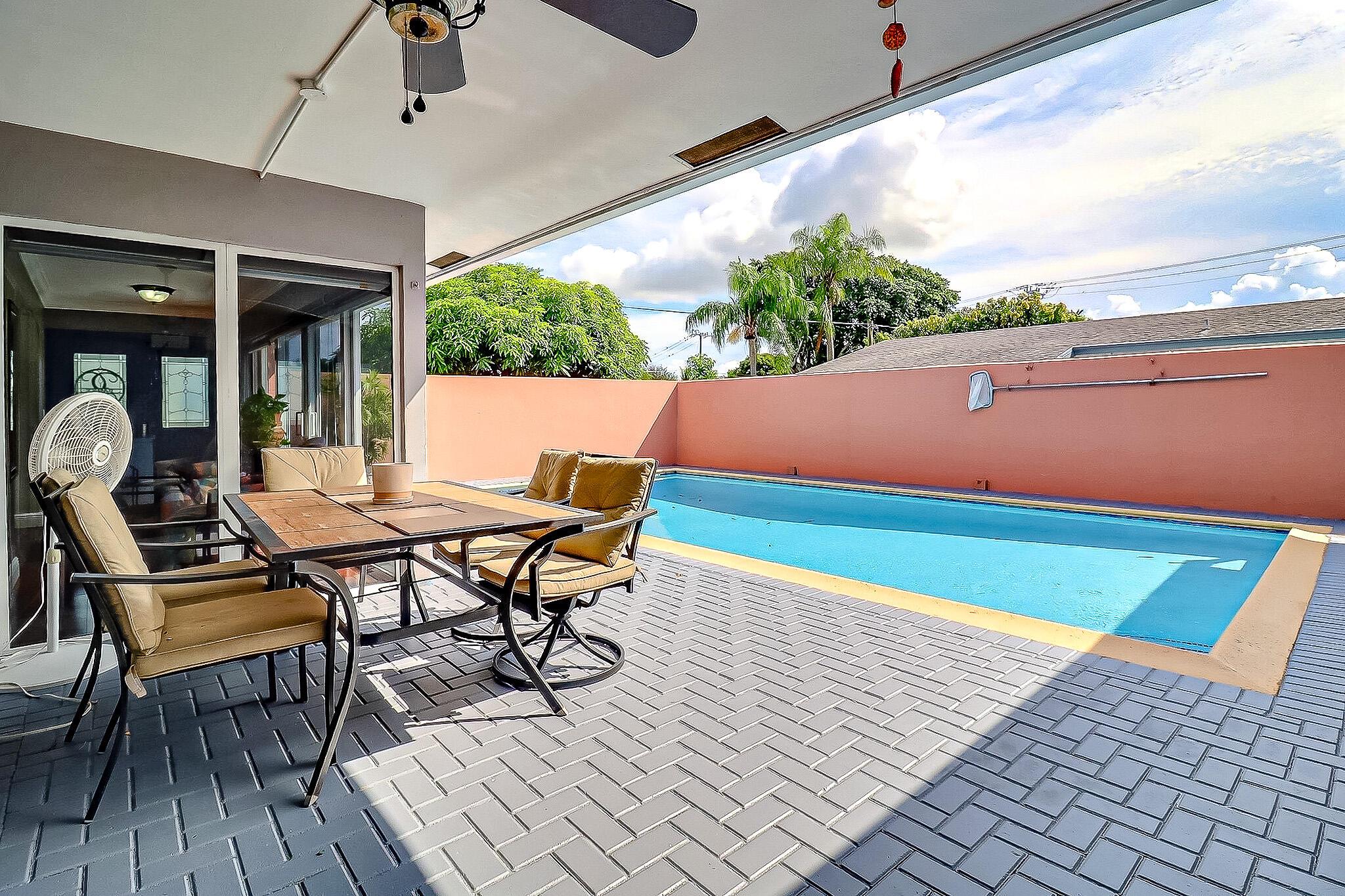 Enjoy Florida living at its best in this no-HOA waterfront home! Offering 4 bedrooms and 3 baths, including a private efficiency-suite with its own bed and bath--ideal as an office, guest space, or game room. Recently updated with a 2024 roof, impact windows, and fresh paint, this property is move-in ready. Inside, you'll find hardwood floors, crown molding, a spacious living room, a stunning master bathroom, and a kitchen with quartz countertops and solid wood cabinets. Outside features a sparkling pool with expansive deck and a private dock with lake access--perfect for boating, fishing, or relaxing by the water. Walking distance to Caloosa Park, Ocean Ridge Beach, and endless shopping!