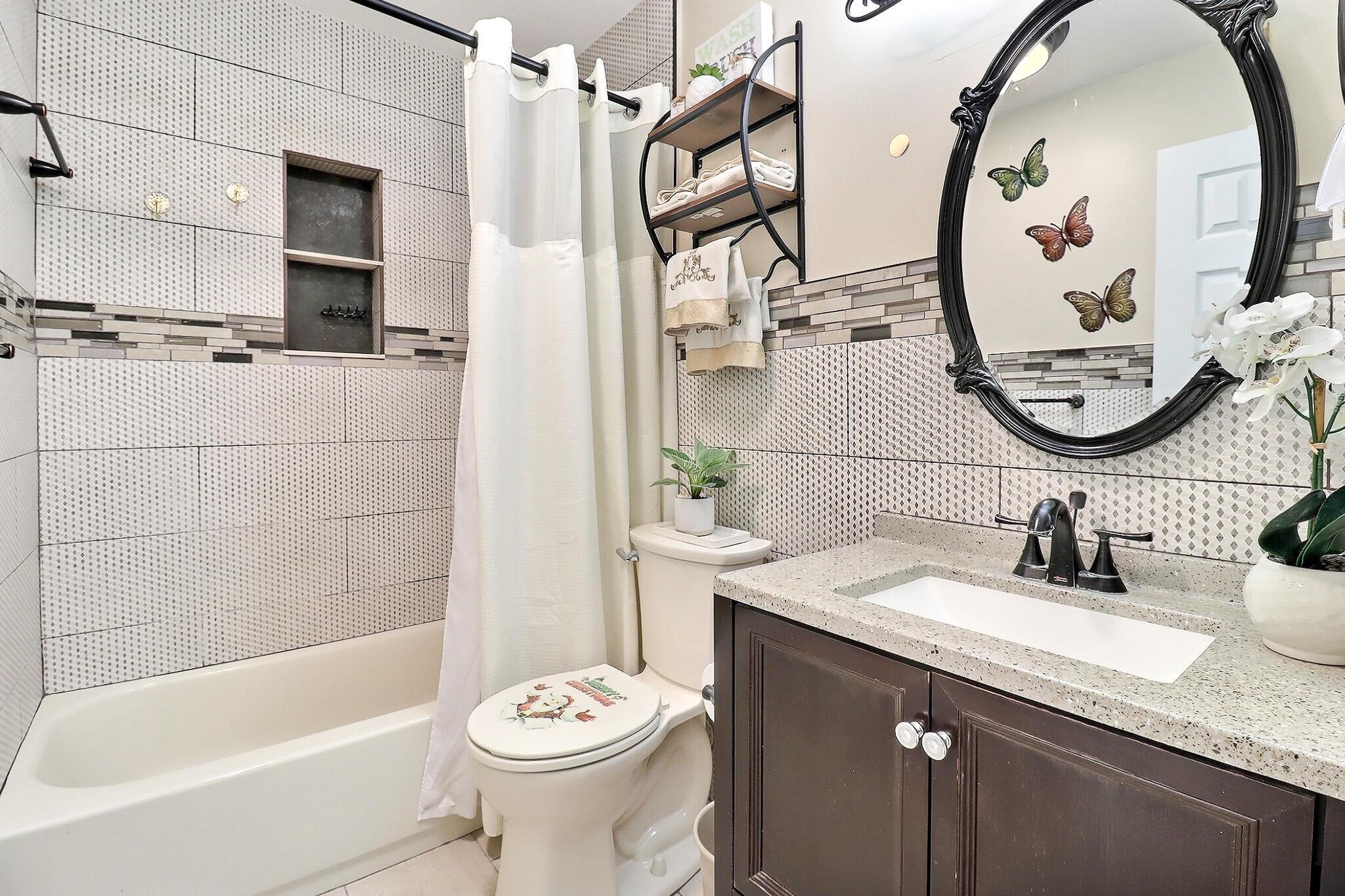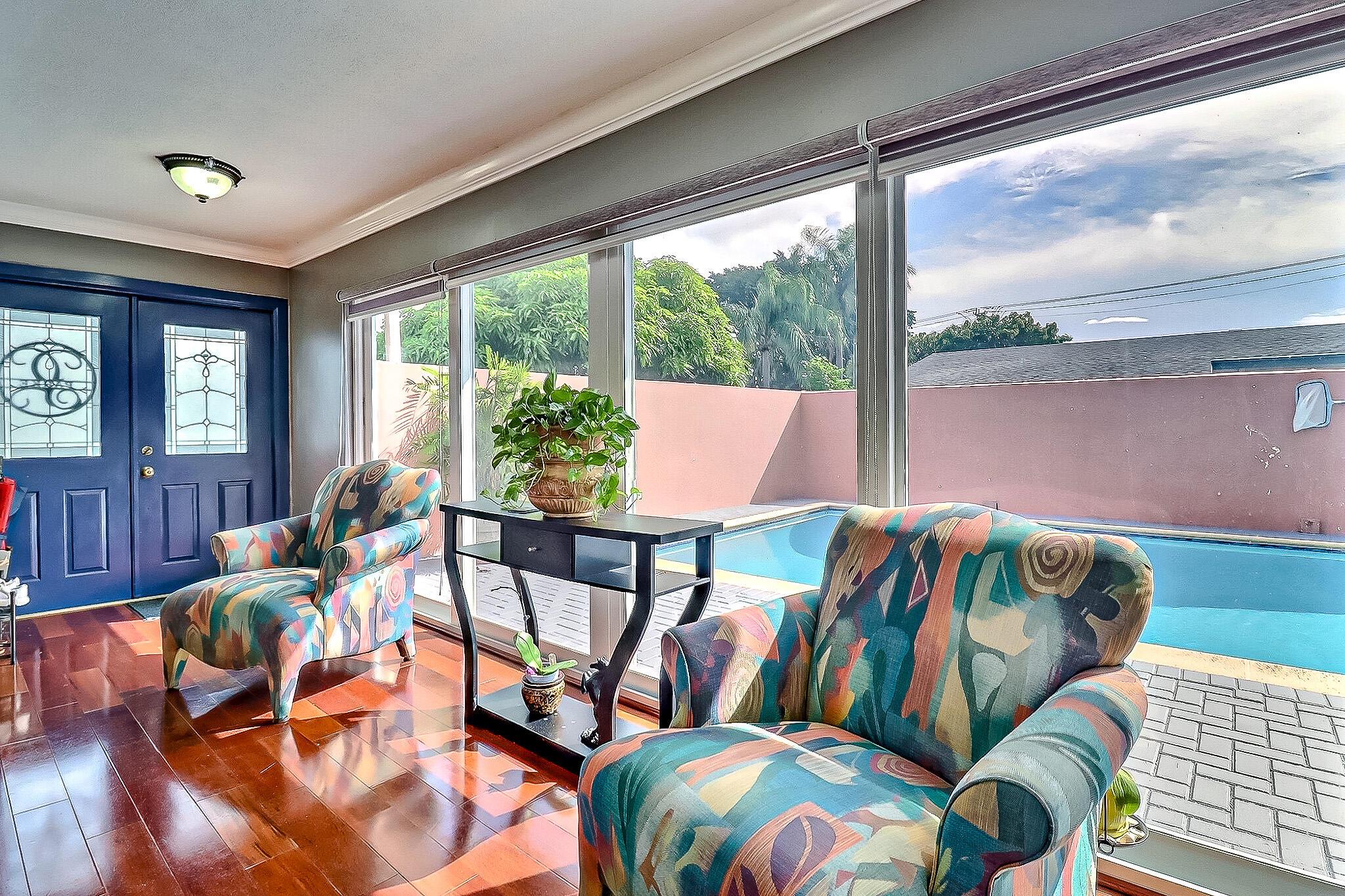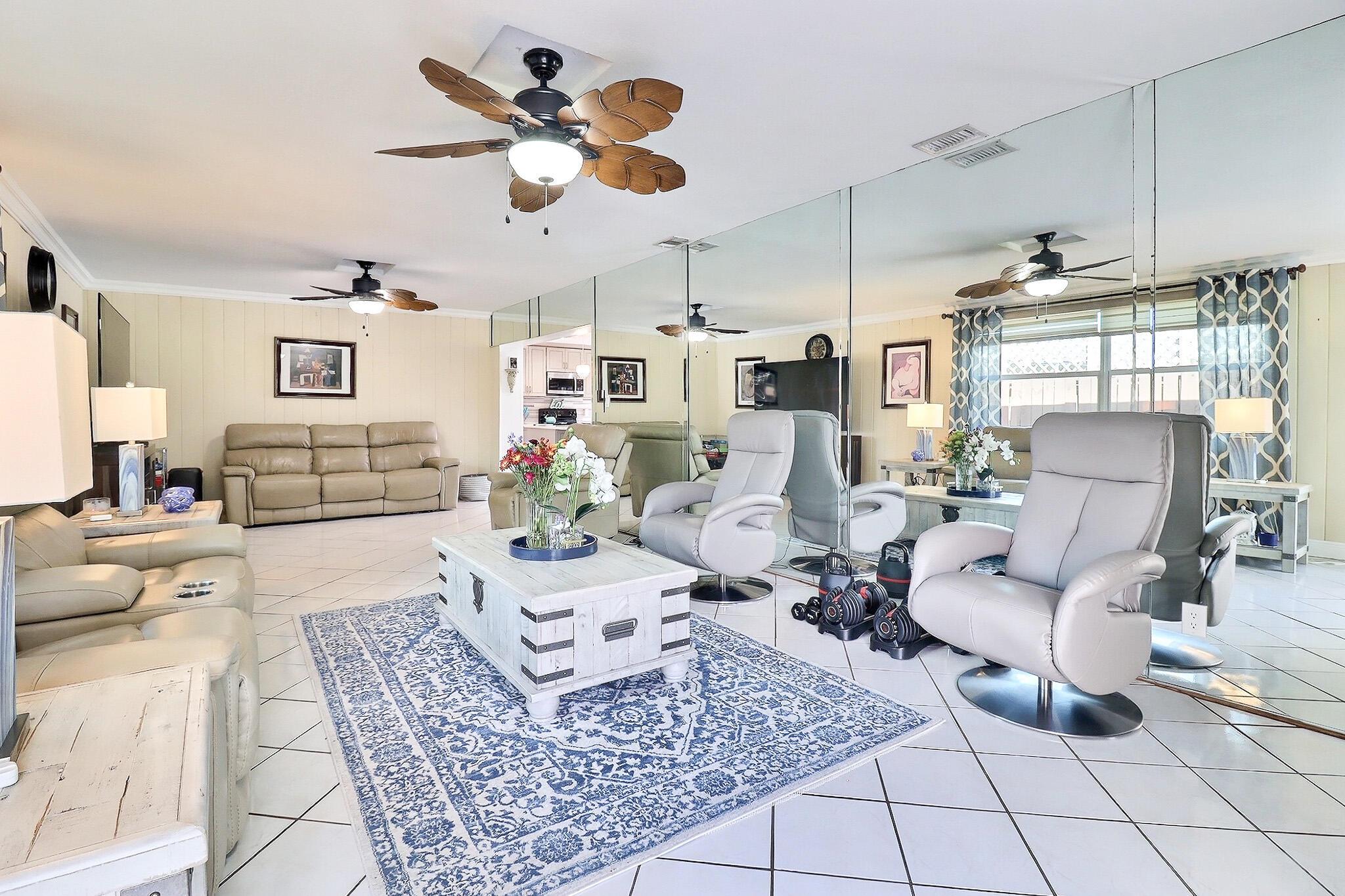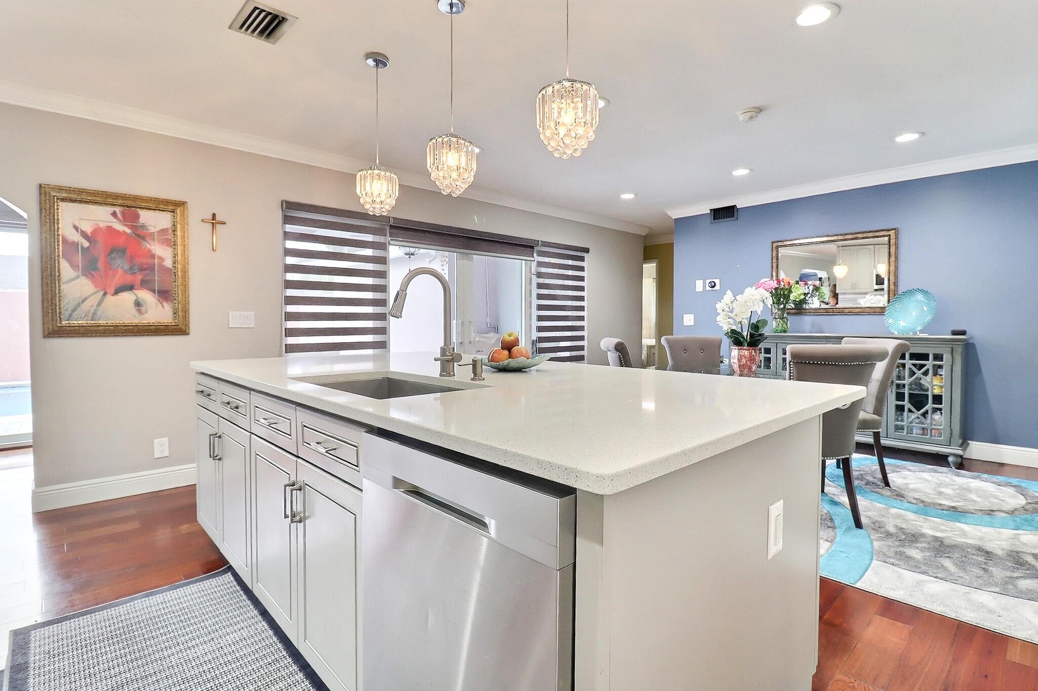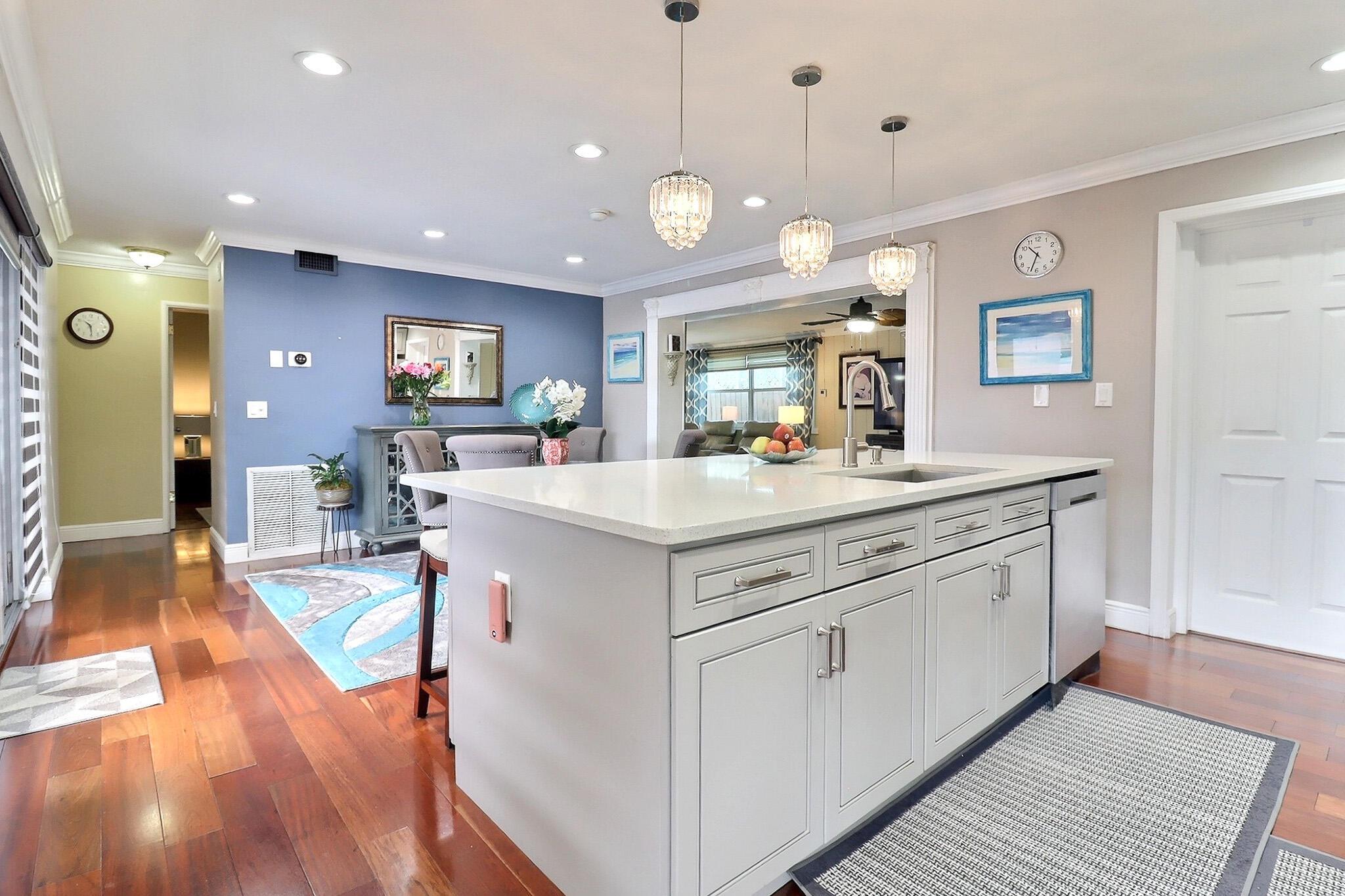 Enjoy Florida living at its best in this no-HOA waterfront home! Offering 4 bedrooms and 3 baths, including a private efficiency-suite with its own bed and bath--ideal as an office, guest space, or game room. Recently updated with a 2024 roof, impact windows, and fresh paint, this property is move-in ready. Inside, you'll find hardwood floors, crown molding, a spacious living room, a stunning master bathroom, and a kitchen with quartz countertops and solid wood cabinets. Outside features a sparkling pool with expansive deck and a private dock with lake access--perfect for boating, fishing, or relaxing by the water. Walking distance to Caloosa Park, Ocean Ridge Beach, and endless shopping!