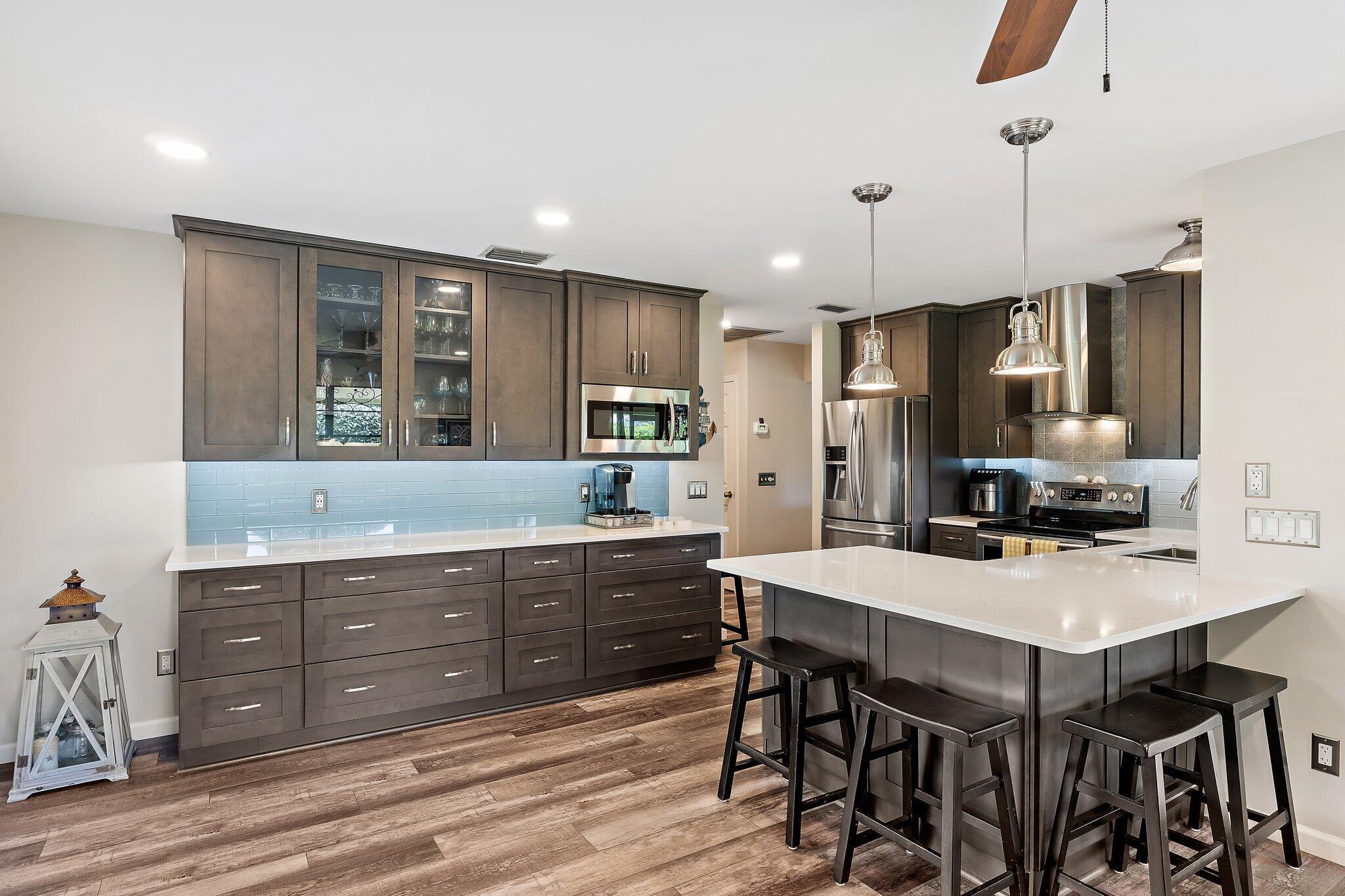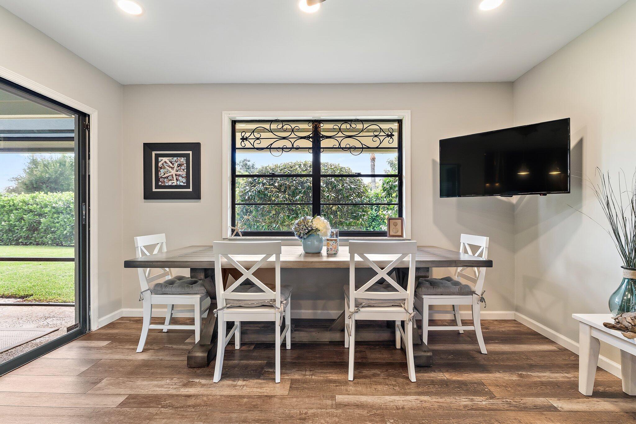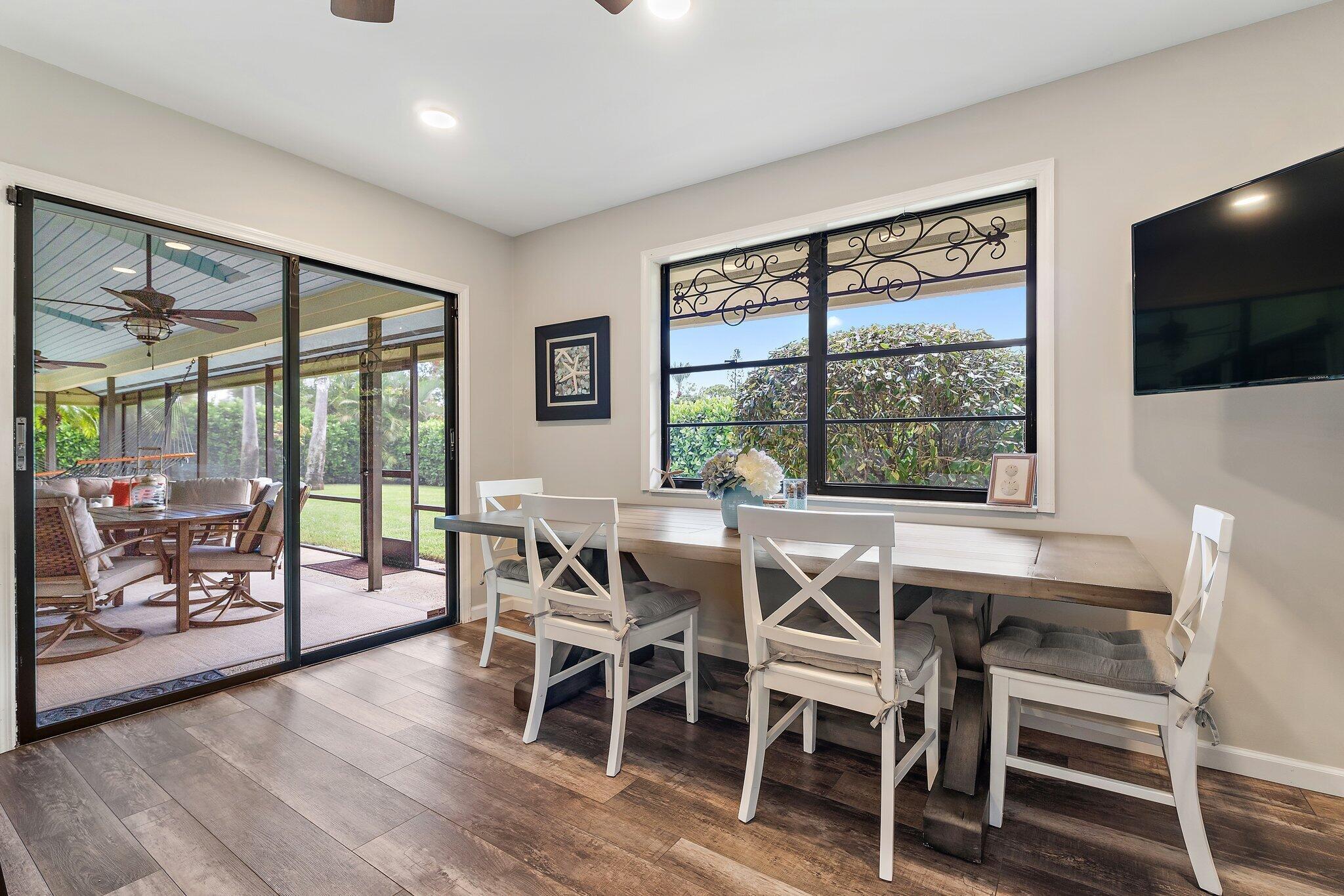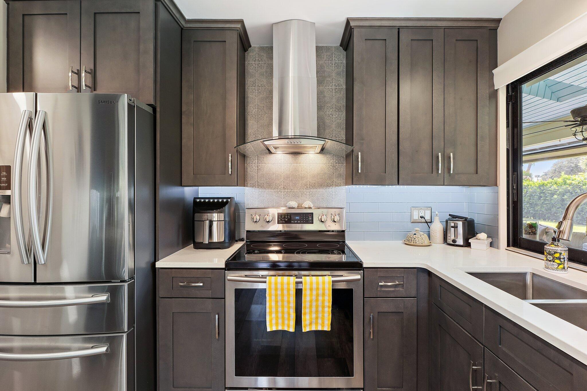 This charming Key West-style residence features three bedrooms, two bathrooms, and a spacious two-car garage. Nestled in a tranquil neighborhood surrounded by natural beauty, it's the ideal retreat for those who enjoy an active, outdoor lifestyle.Inside, the open-concept design creates a welcoming atmosphere, with the living, dining, and kitchen areas flowing seamlessly together. Expansive windows and sliding glass doors invite an abundance of natural light. The newly renovated kitchen boasts sleek stainless-steel appliances, high-end cabinetry, and expansive counter space. Designed with both style and function in mind, it's perfect for everyday meals as well as entertaining. A modern fume hood and thoughtful finishes complete the space.