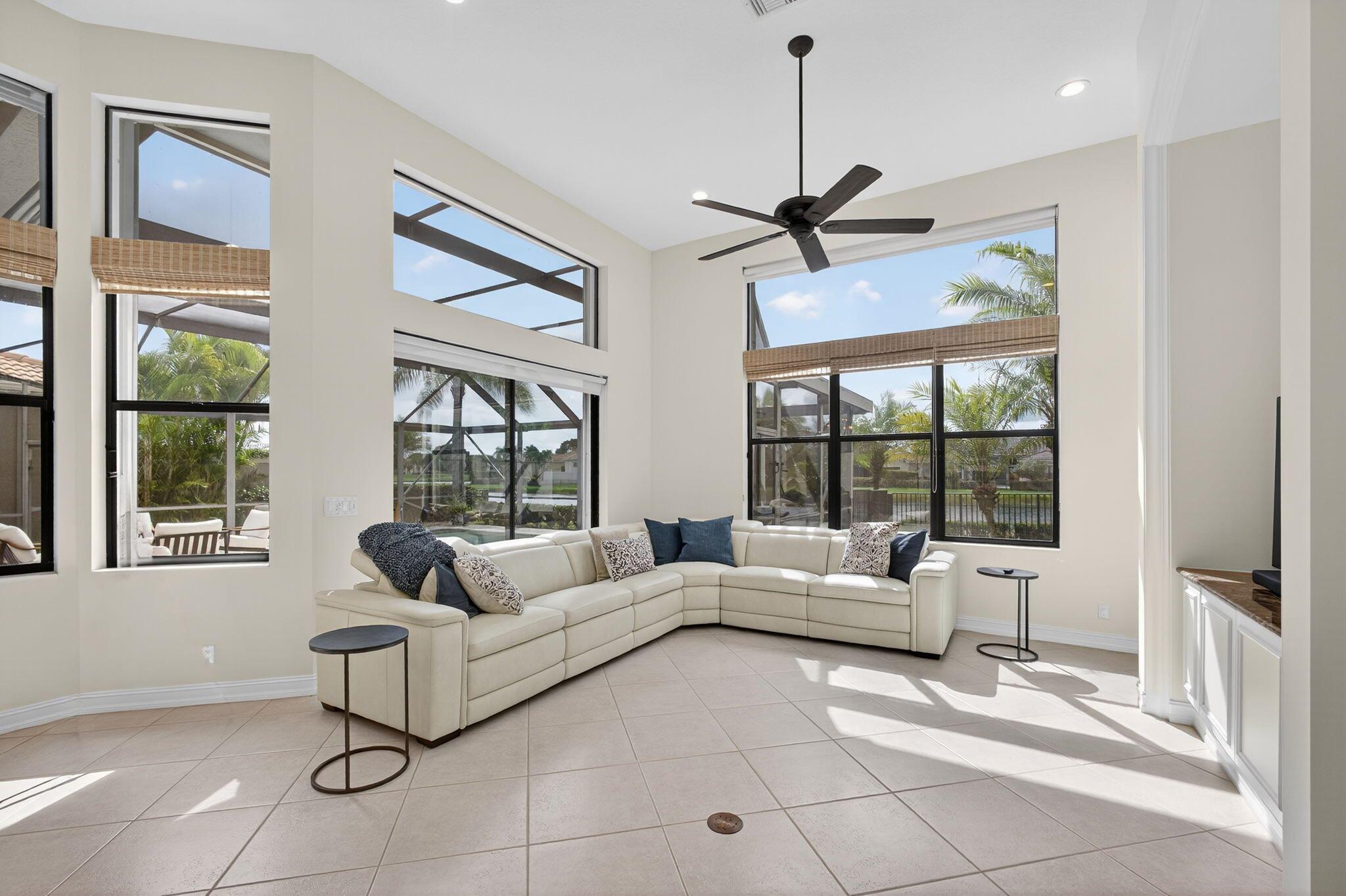 IMMEDIATE PREMIER GOLF MEMBERSHIP available with this beautiful upgraded ''Alaina'' model. Home has just been repainted, brand new epoxy floors in garage and golf cart garage. Home is sold TURNKEY with brand new furniture that was recently purchased. Featuring a private water lot with an ideal southwest exposure. New roof installed in May, 2021 along with seamless gutters. Accordian shutters throughout, as well as a whole house generator, August 2020. There is a new water heater(2024) as well as a new heat pump (2023) for the pool. The pool was resurfaced in 2023 and the back yard has a retractable screen. Brand new outdoor furniture makes outdoor living peaceful and serene. Plantation shutters in all bedrooms doors have been replaced with solid wood. Many more upgrades in this home