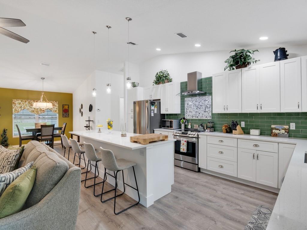 SHOW STOPPER! This 2022 built home is a dream come true. The open floor plan, chef's kitchen with shaker cabinets, a huge island and quartz countertops make this home perfect for entertaining. Other features include vinyl flooring, carpet in bedrooms, large master closet, and impact windows and doors. Enjoy the outdoors relaxing on the covered patio or spending time with the family in the spacious backyard. This lot is not part of the community POA, Buyer can join for access to community amenities.