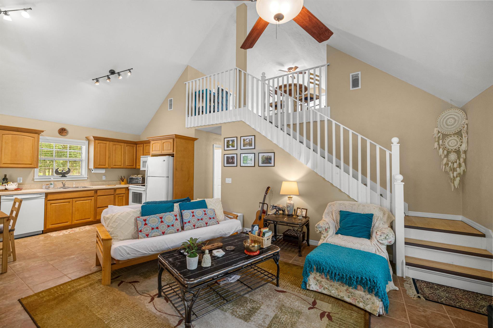 694 Quarter Lane - Forest Retreat in North-Central Florida Escape to your own private retreat just 35 minutes north of Gainesville. Tucked awayon 5 acres in the Ichetucknee Wilderness, this immaculate 2009-built A-frame home blends modern comfort with the natural beauty of Florida'ssprings and forests. Step inside to an inviting open-concept floor plan featuring vaulted ceilings and expansive windows, which hosts 2bedrooms, 2 bathrooms, and a large loft that is currently being used as a third bedroom, which overlooks the main living area and offers sereneviews of the surrounding woods from its private balcony. This home has a bright, airy layout and is ideal for full-time living or as a privategetaway. Looking to be just down the street from the entrance to the Ichetuckne
