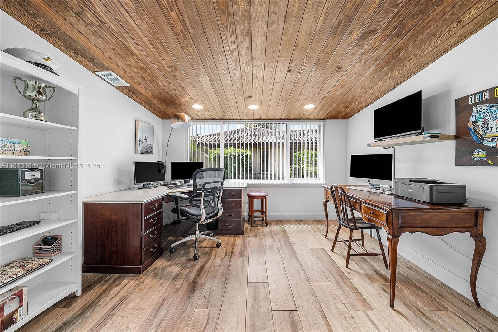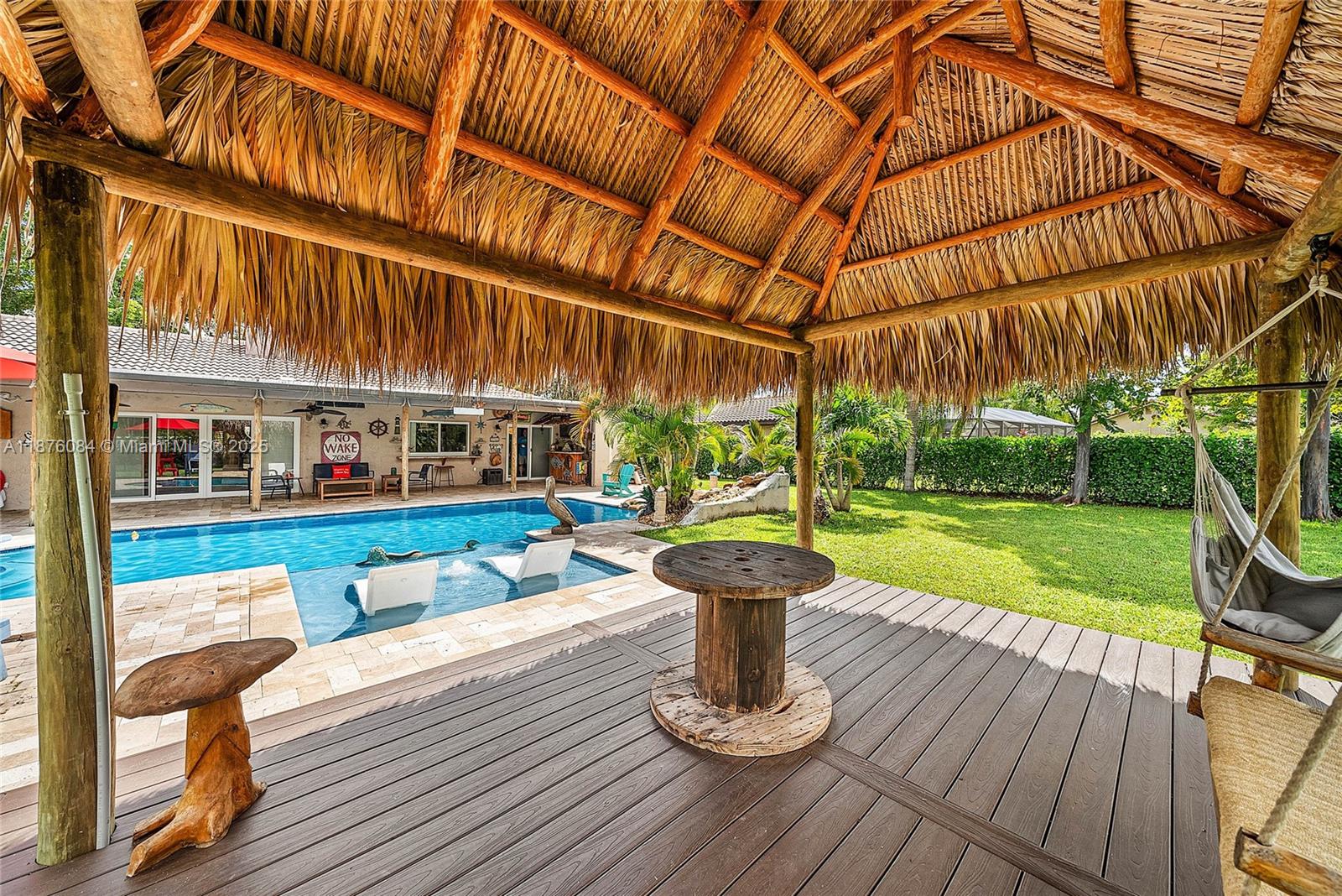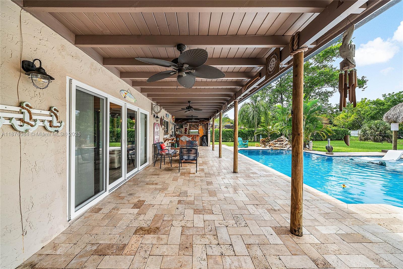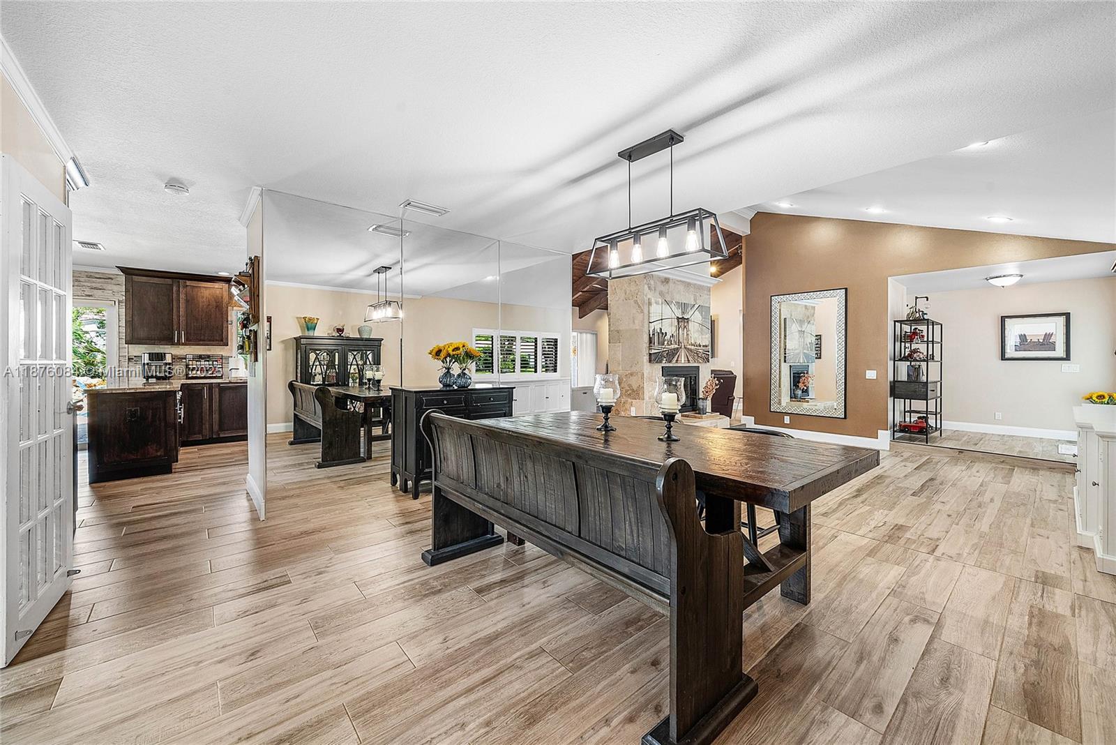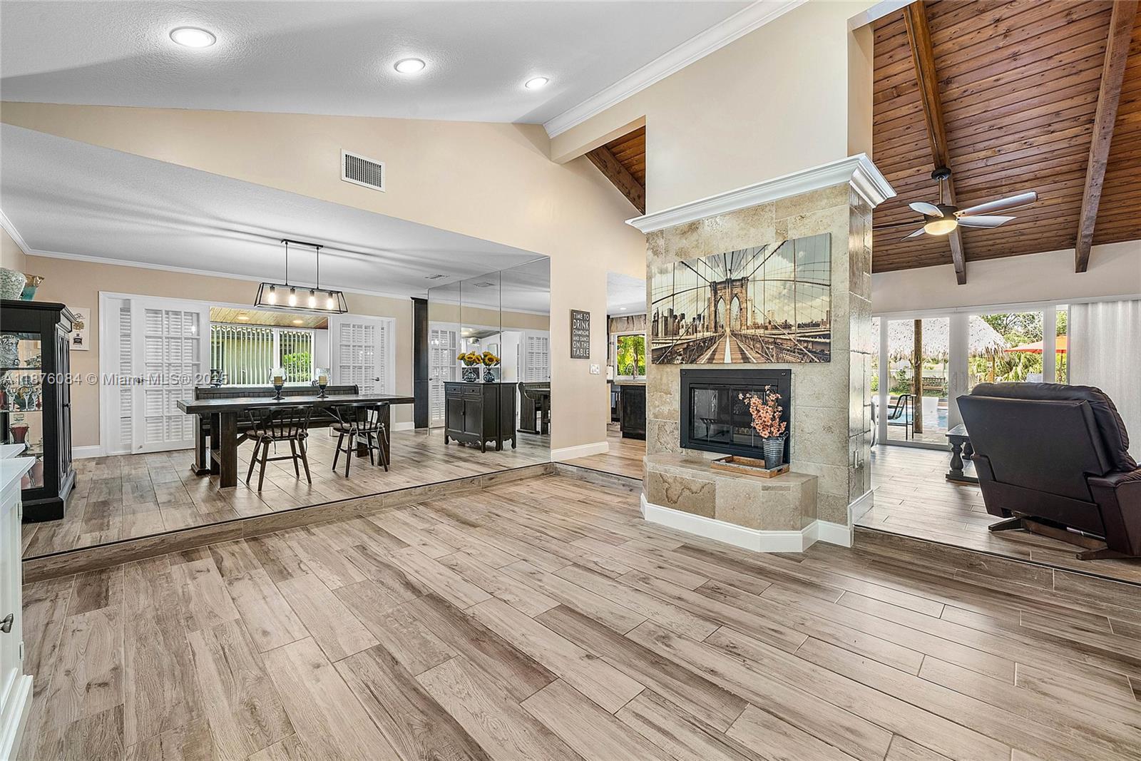 Imagine having everything you ever wished for in a house, and then seeing that house available to you right now. Come up the circular driveway and notice the brickwork, the tile roof, the granite along the front porch, the Euro front door, and you feel like you’re somewhere in the Mediterranean. Inside, the family room features porcelain tile flooring, pitched ceilings, and the grandiose travertine-lined double-sided fireplace as a focal point. Next, arrive in the updated kitchen and nook with well-appointed 42” cabinetry “all the way up”, stainless appliances, and an island with electric cooktop, hood vent and custom triple pencil edge granite. The house features 4 full bedrooms + office, with every detail having been updated! But then, the best part awaits you when you step out back...