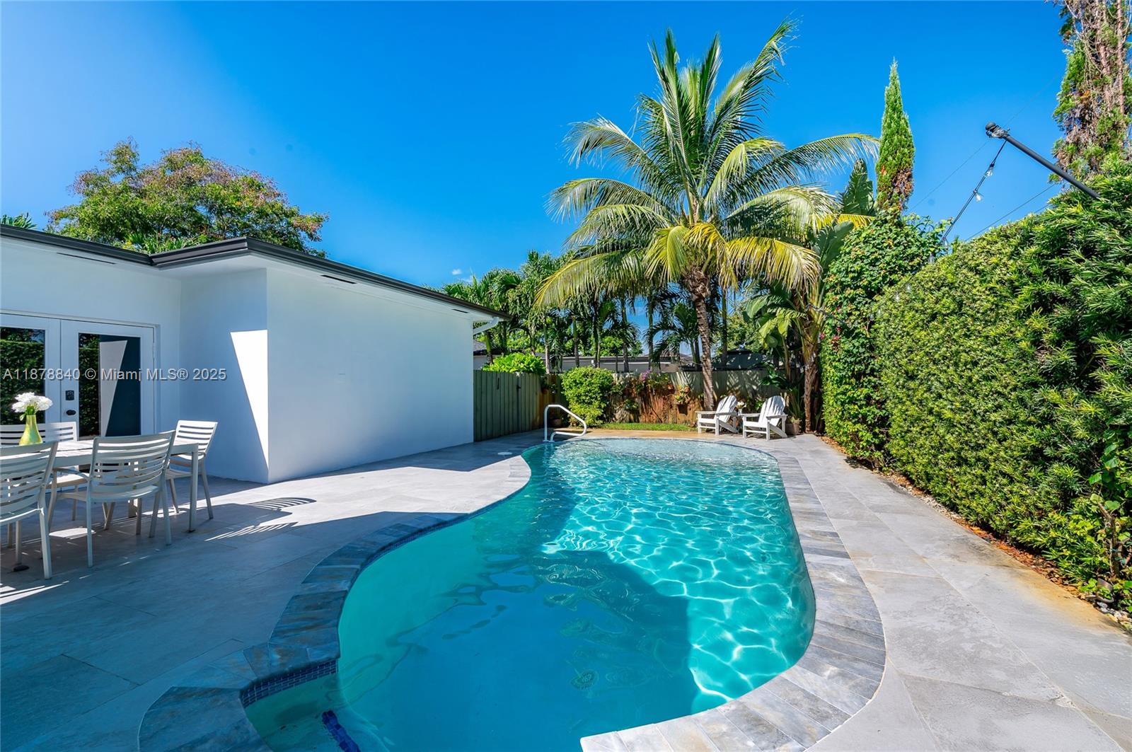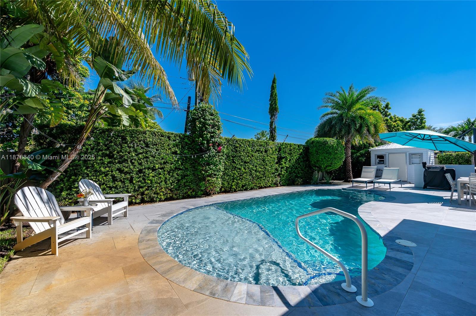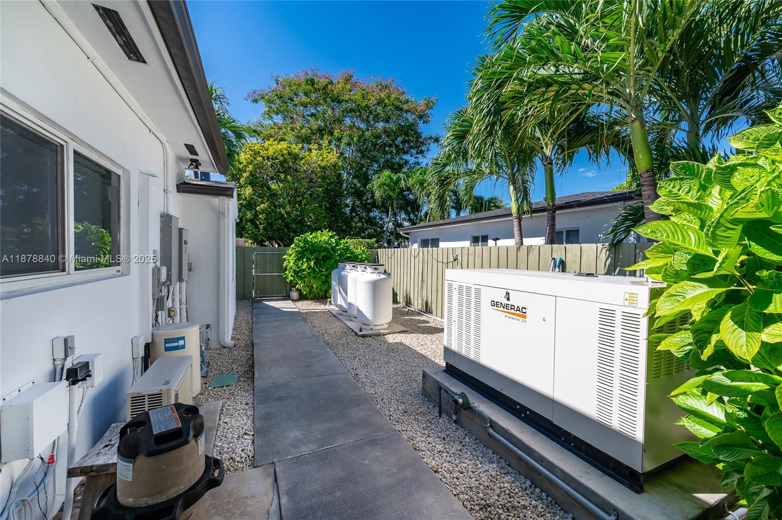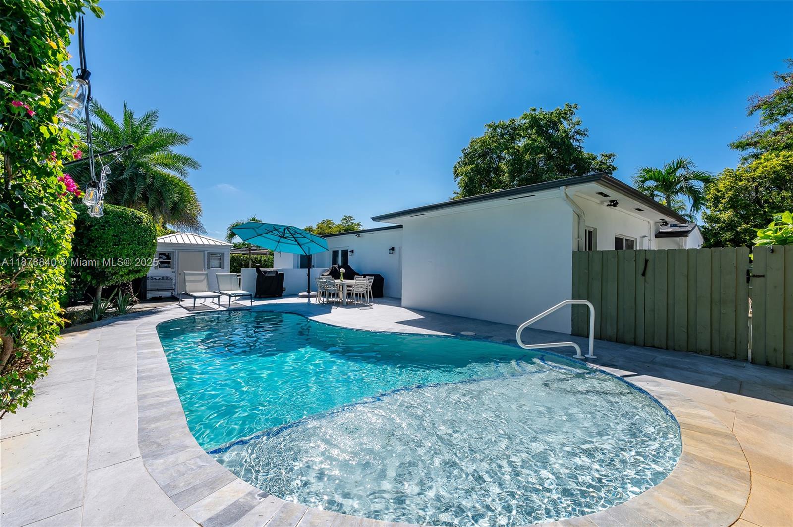 Step into this 2,300 sq. ft. 4-bedroom, 3.5-bath pool home designed for modern living, multi-generational flexibility, and ultimate relaxation. Open split floorplan with two primary suites (one ADA with roll-in shower) Major upgrades include a new roof (2021), new central HVAC (2024), impact windows/doors, full-house generator (2021), and two tankless water heaters (2021). The spacious laundry room offers storage, sink, and a new refrigerator (2025). Outdoors enjoy a resurfaced saltwater pool (2024) with tanning shelf, cabana bath + hot water outdoor shower, expansive patio deck with water/electric for a future kitchen, hurricane-rated shed (2018), professional landscaping with irrigation well, 4-car parking, alley access, and no HOA. Locaion is perfect! Just 5 minutes from Coral Gables