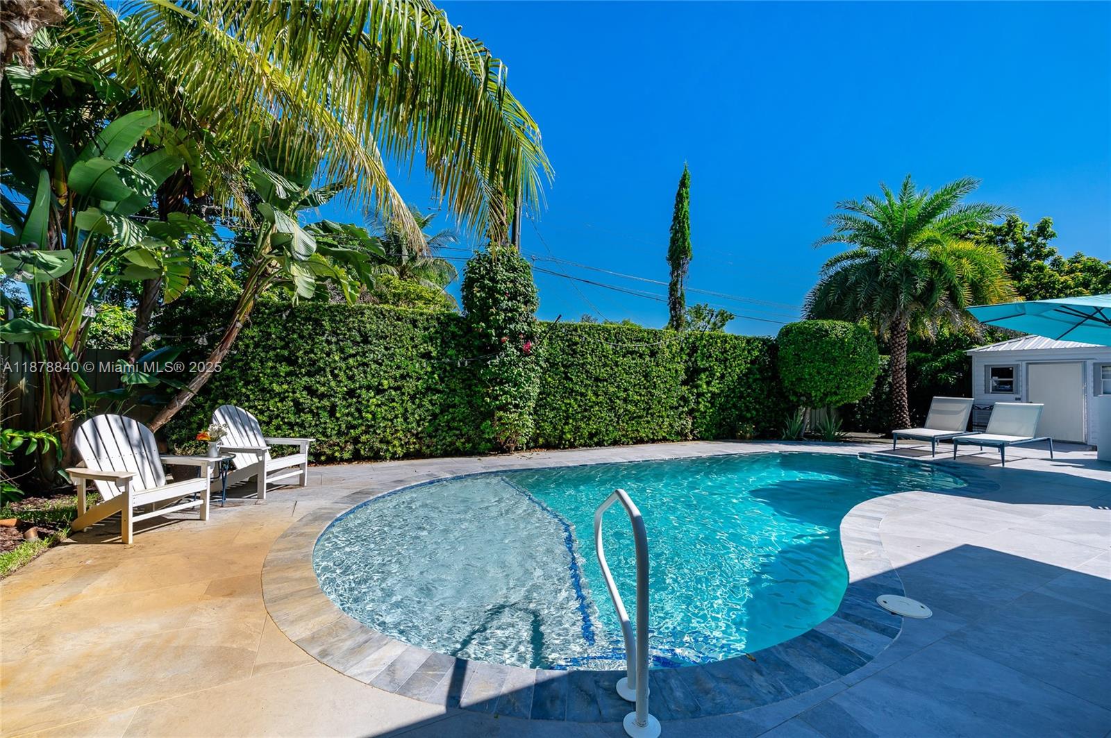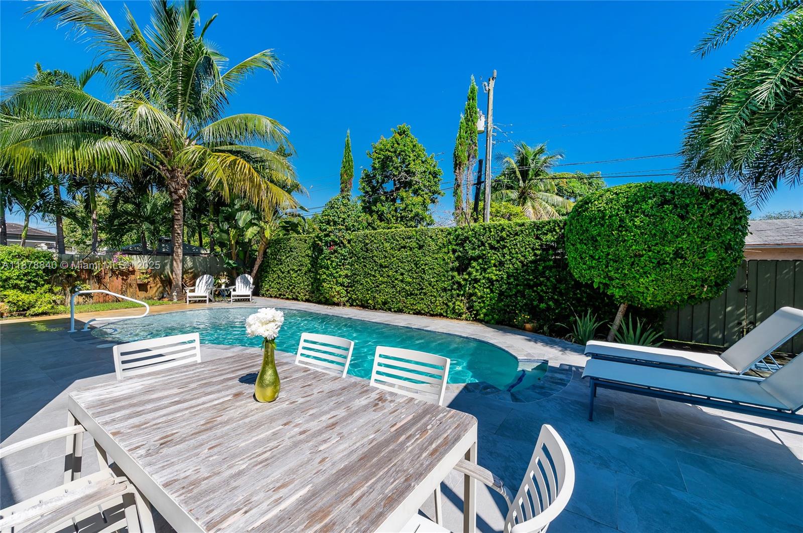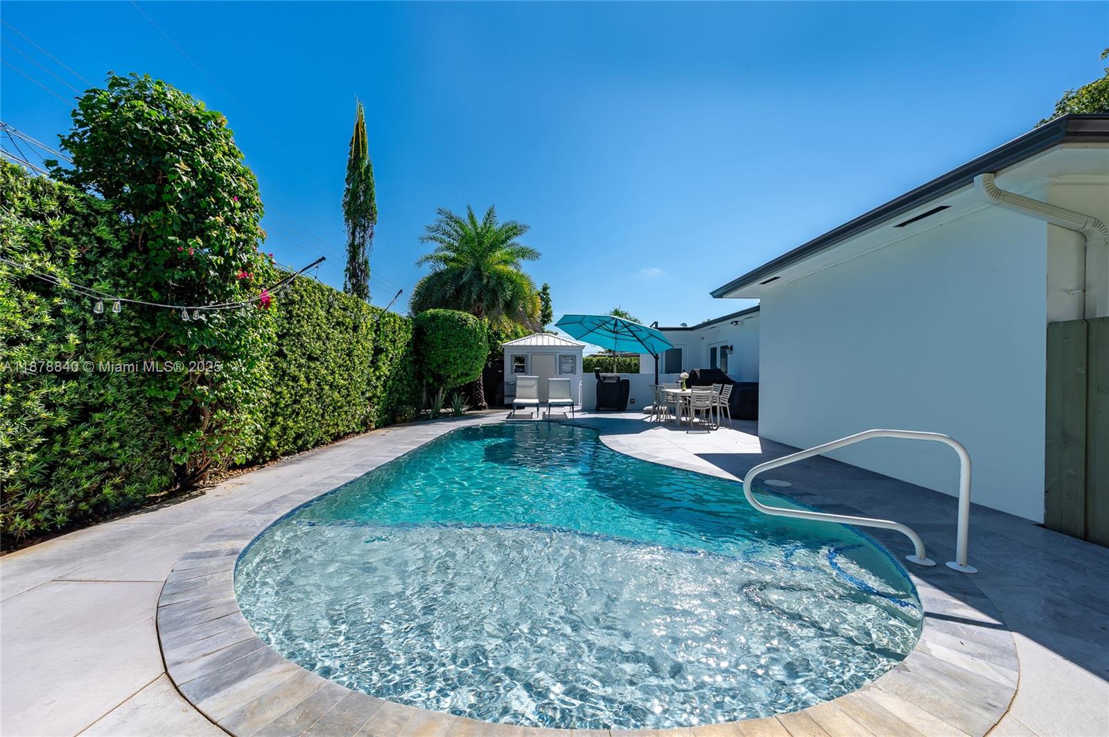 Step into this 2,300 sq. ft. 4-bedroom, 3.5-bath pool home designed for modern living, multi-generational flexibility, and ultimate relaxation. Open split floorplan with two primary suites (one ADA with roll-in shower) Major upgrades include a new roof (2021), new central HVAC (2024), impact windows/doors, full-house generator (2021), and two tankless water heaters (2021). The spacious laundry room offers storage, sink, and a new refrigerator (2025). Outdoors enjoy a resurfaced saltwater pool (2024) with tanning shelf, cabana bath + hot water outdoor shower, expansive patio deck with water/electric for a future kitchen, hurricane-rated shed (2018), professional landscaping with irrigation well, 4-car parking, alley access, and no HOA. Locaion is perfect! Just 5 minutes from Coral Gables