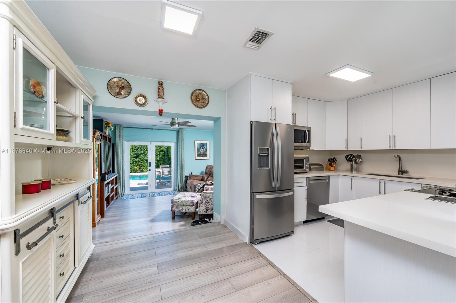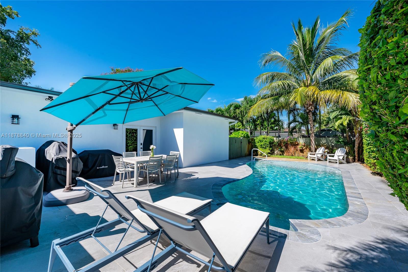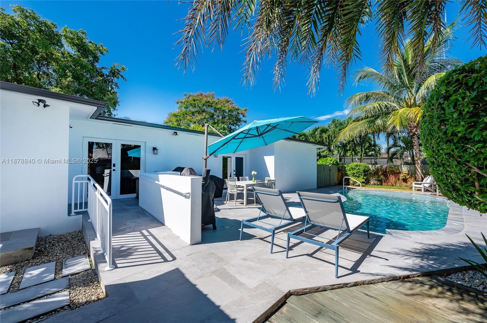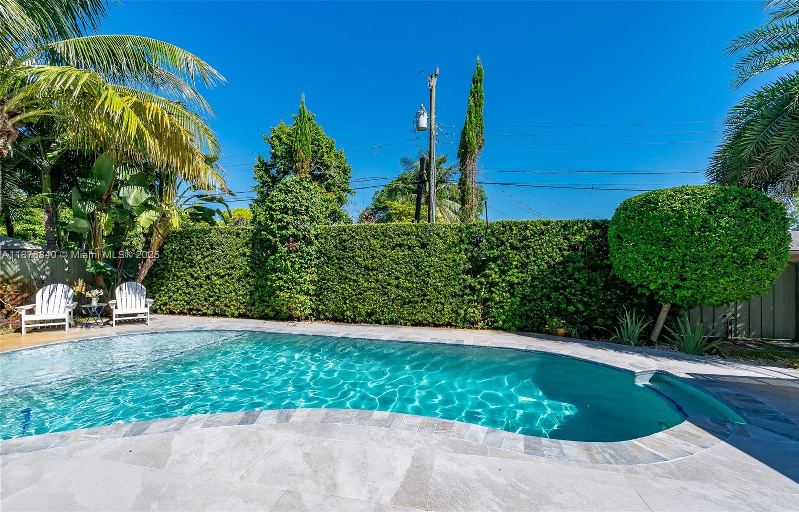 Step into this 2,300 sq. ft. 4-bedroom, 3.5-bath pool home designed for modern living, multi-generational flexibility, and ultimate relaxation. Open split floorplan with two primary suites (one ADA with roll-in shower) Major upgrades include a new roof (2021), new central HVAC (2024), impact windows/doors, full-house generator (2021), and two tankless water heaters (2021). The spacious laundry room offers storage, sink, and a new refrigerator (2025). Outdoors enjoy a resurfaced saltwater pool (2024) with tanning shelf, cabana bath + hot water outdoor shower, expansive patio deck with water/electric for a future kitchen, hurricane-rated shed (2018), professional landscaping with irrigation well, 4-car parking, alley access, and no HOA. Locaion is perfect! Just 5 minutes from Coral Gables