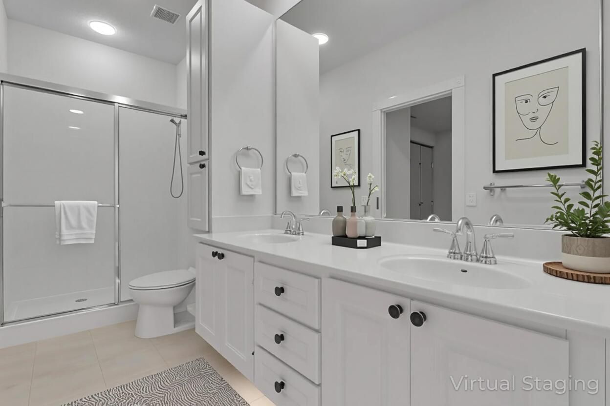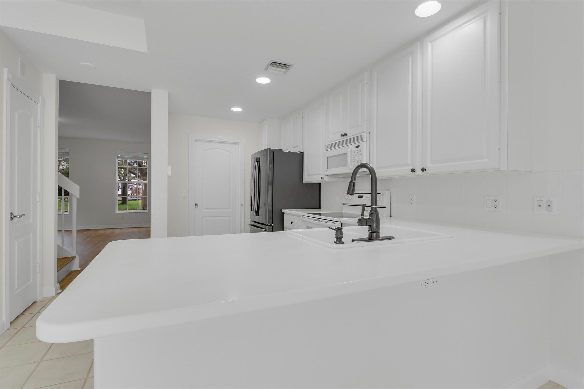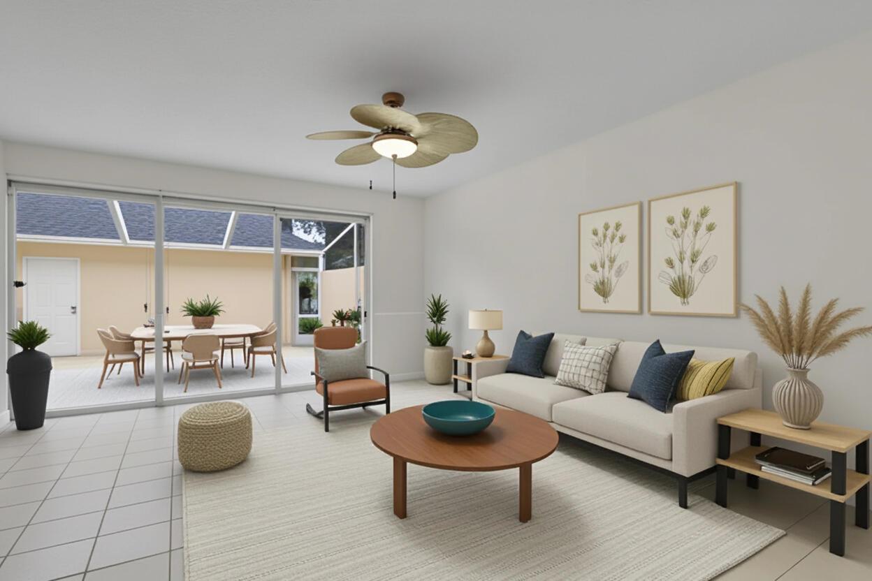 Don't miss this bright, cheery & freshly painted end-unit townhome nestled into the heart of NewHaven @ Abacoa. These townhomes live like single family homes w/ over 1800 sq ft of living space, two separate living areas, 3 bedrooms (all upstairs), 2 1/2 baths, laundry room/pantry, a 400 sq ft outdoor patio & separate 2 car garage w/private driveway! Enjoy peace of mind with a 2021 Roof, Accordion storm shutters, a 2024 A/C, 2021 hot water heater & beautiful wood look vinyl & tile throughout. Virtually staged photos show use of space! Low HOA fees of 363.28/month include basic cable/high speed internet, landscaping, 2 community pools, parks, reserves, management & so much more. Zoned for Lighthouse/Beacon/Independence Middle and Dwyer HS, as well as excellent private school options nearby.