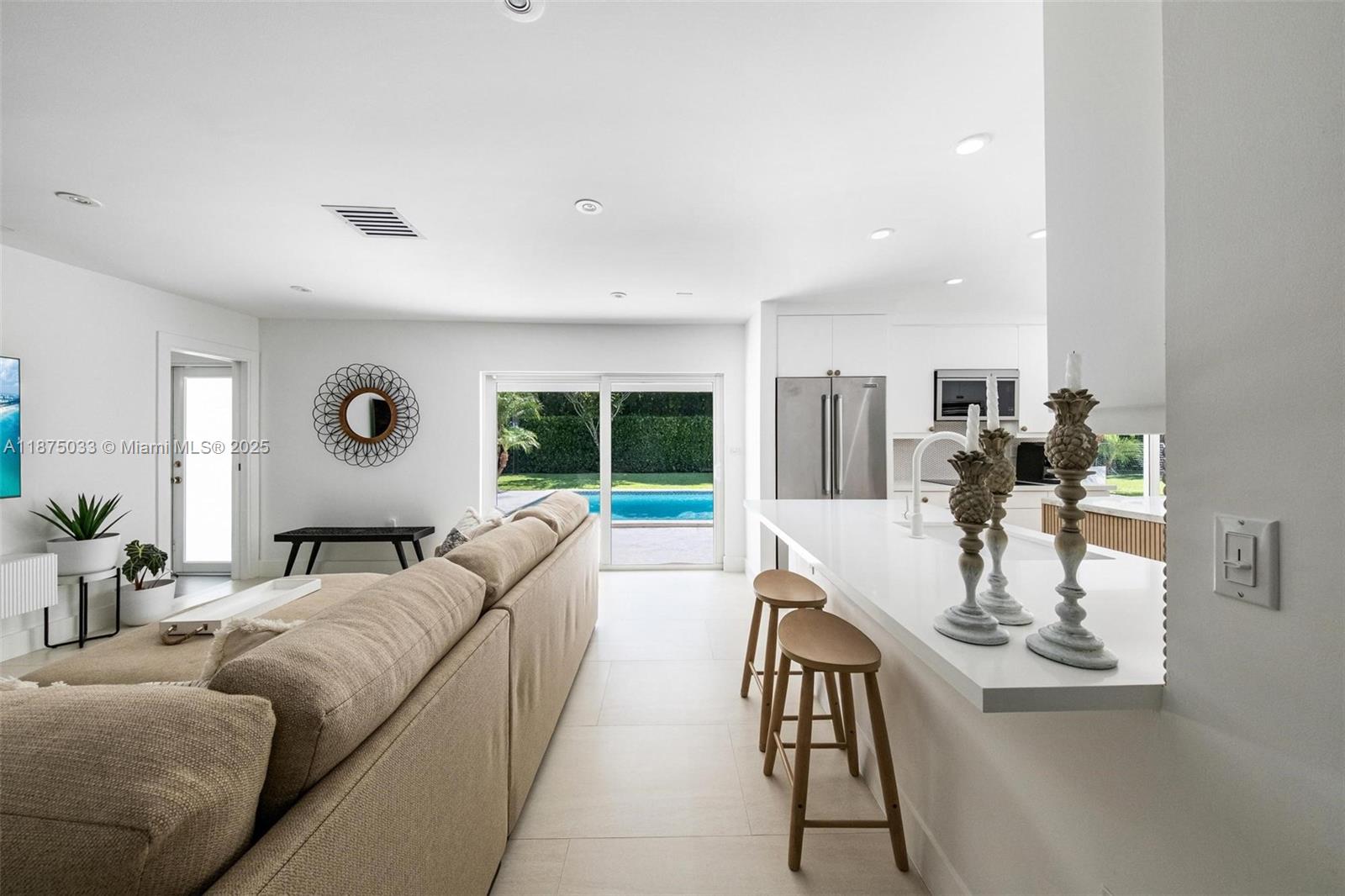 Recently renovated 4-bed, 3-bath estate on a lush half-acre in the heart of Pinecrest. Bright, open living spaces feature refined finishes and a versatile home office/den. A brand-new roof, impact-resistant windows, and fully lined plumbing provide lasting peace of mind. Natural light flows through spacious interiors designed for effortless indoor-outdoor living. Step outside to a resort-style pool, expansive patio, and manicured gardens ideal for entertaining. A stately circular driveway and attached two-car garage complete this turnkey retreat where timeless design meets modern comfort.