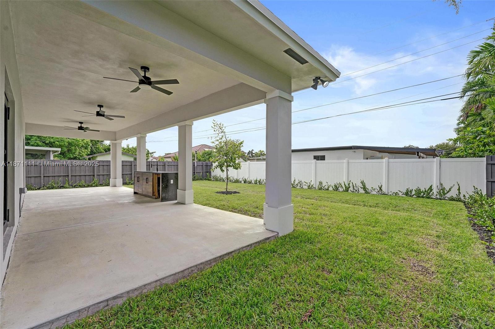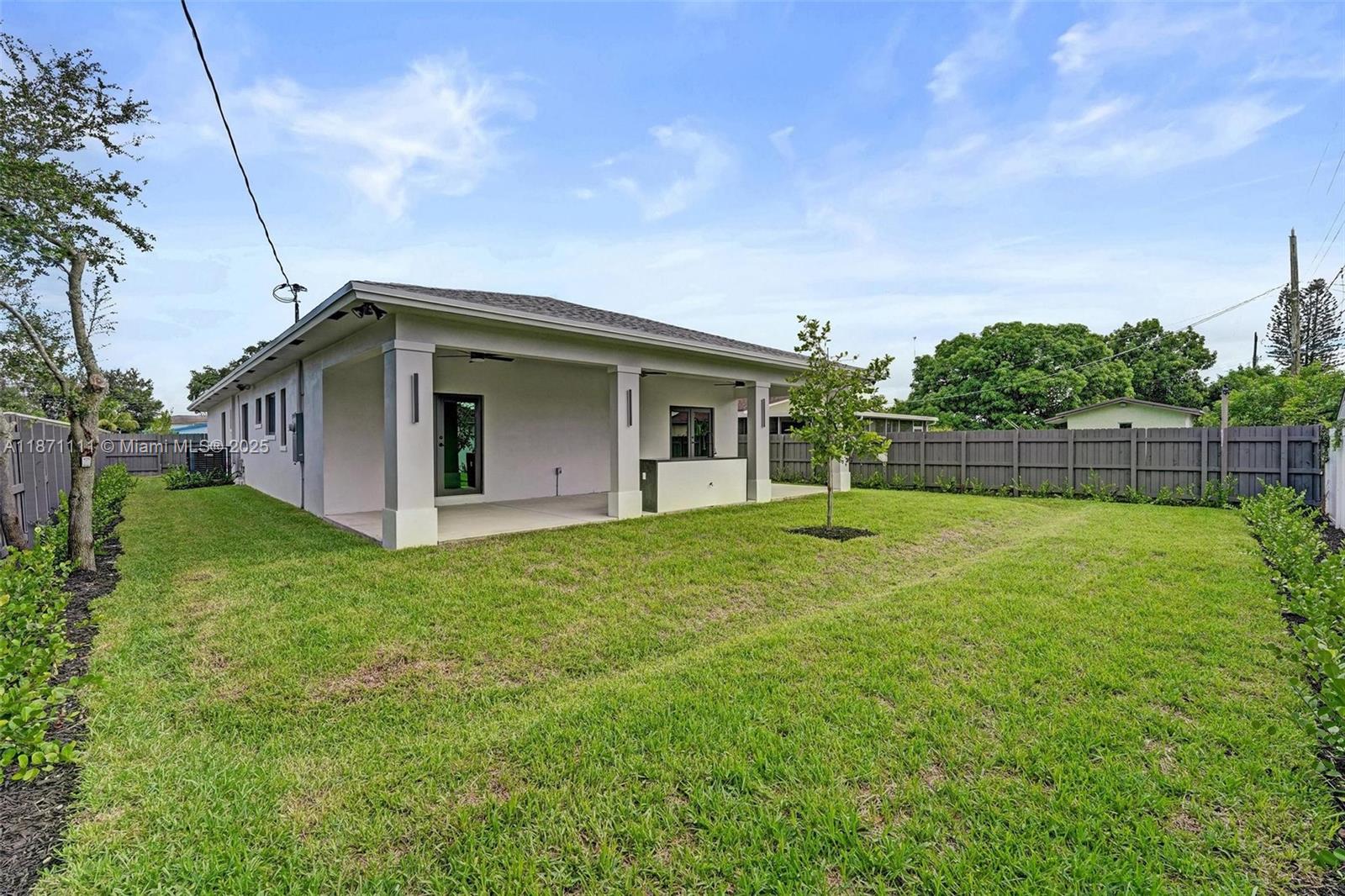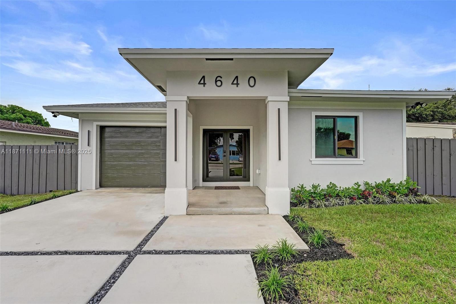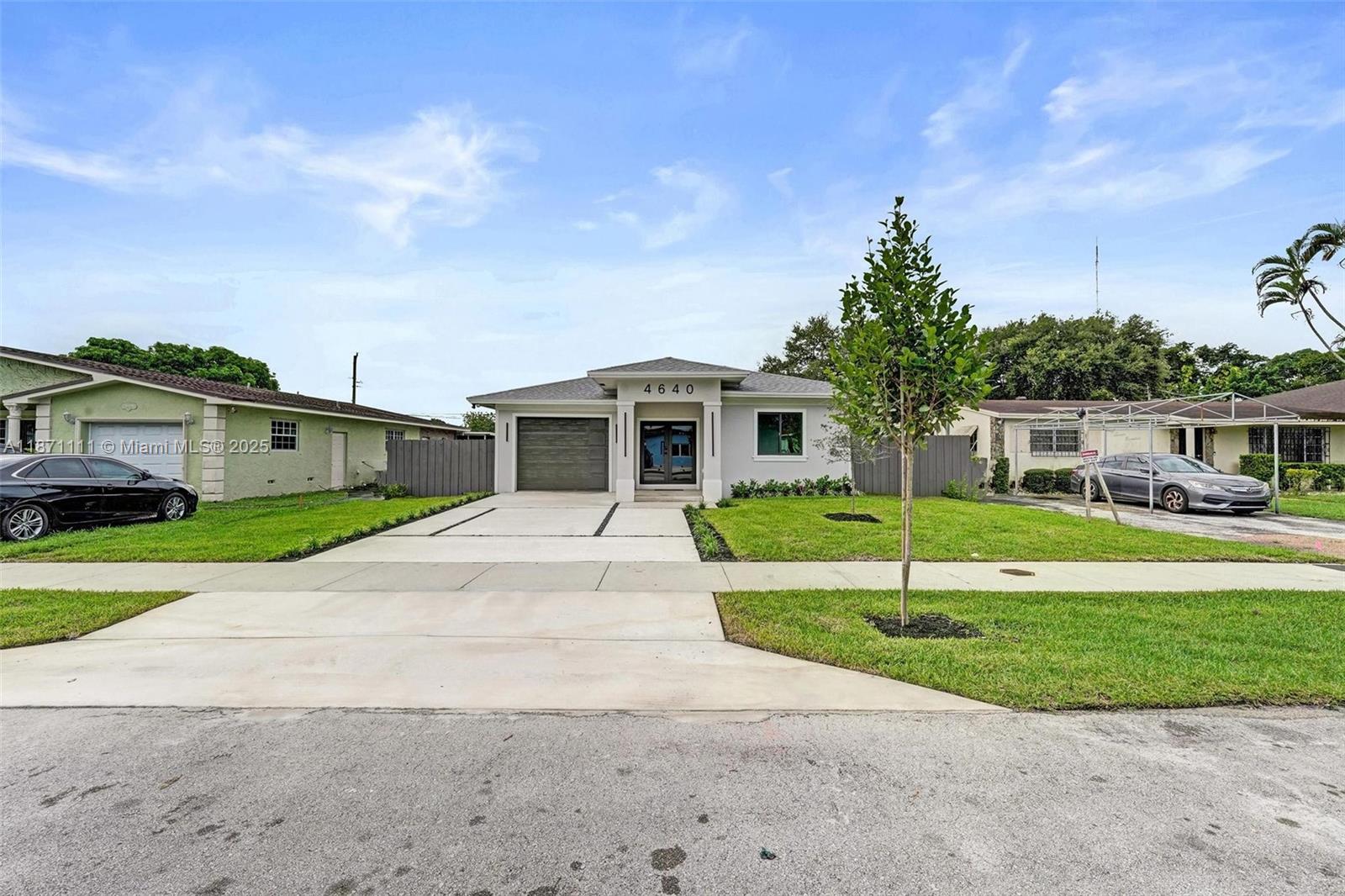 Stunning new construction minutes to the beach, Hard Rock Hotel & Casino, Hard Rock Stadium & Gulfstream Park. Designer-finished 4BR/3BA features an open-concept split bedroom plan, sleek porcelain tile, impact windows/doors & custom closets. Chef's kitchen showcases a quartz waterfall island & stainless steel appliances. Luxe primary suite offers an oversized custom closet & spa bath w/ separate shower & soaking tub. Two tankless water heaters. Expansive lanai extends outdoor living—ideal for entertaining. Large fenced yard w/ irrigation & room for a pool. 1-car garage w/ its own A/C for multipurpose use. No HOA! Not in a flood zone. Close to the airport for easy travel—central to beaches, stadiums, shops, dining, nightlife. Hurry, won't last!!!