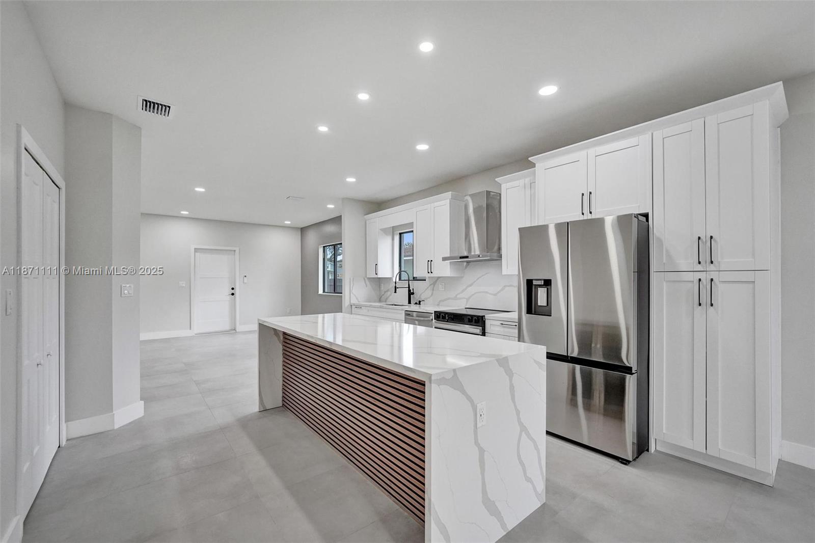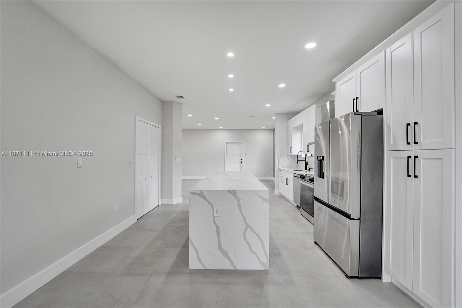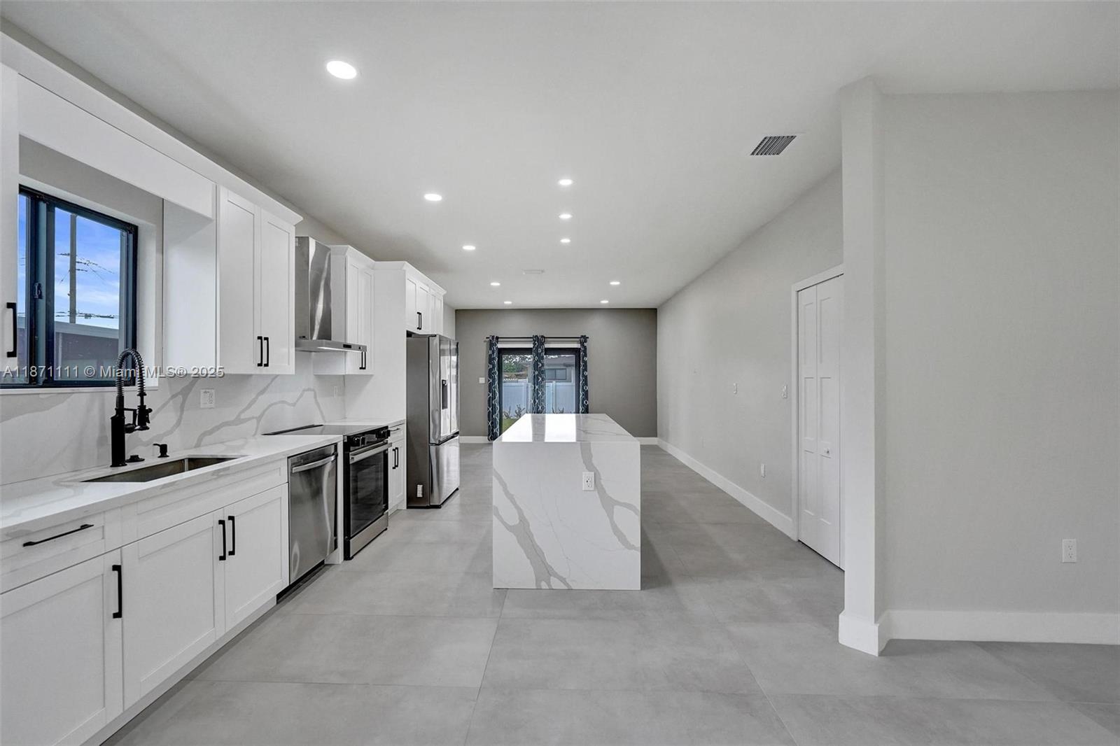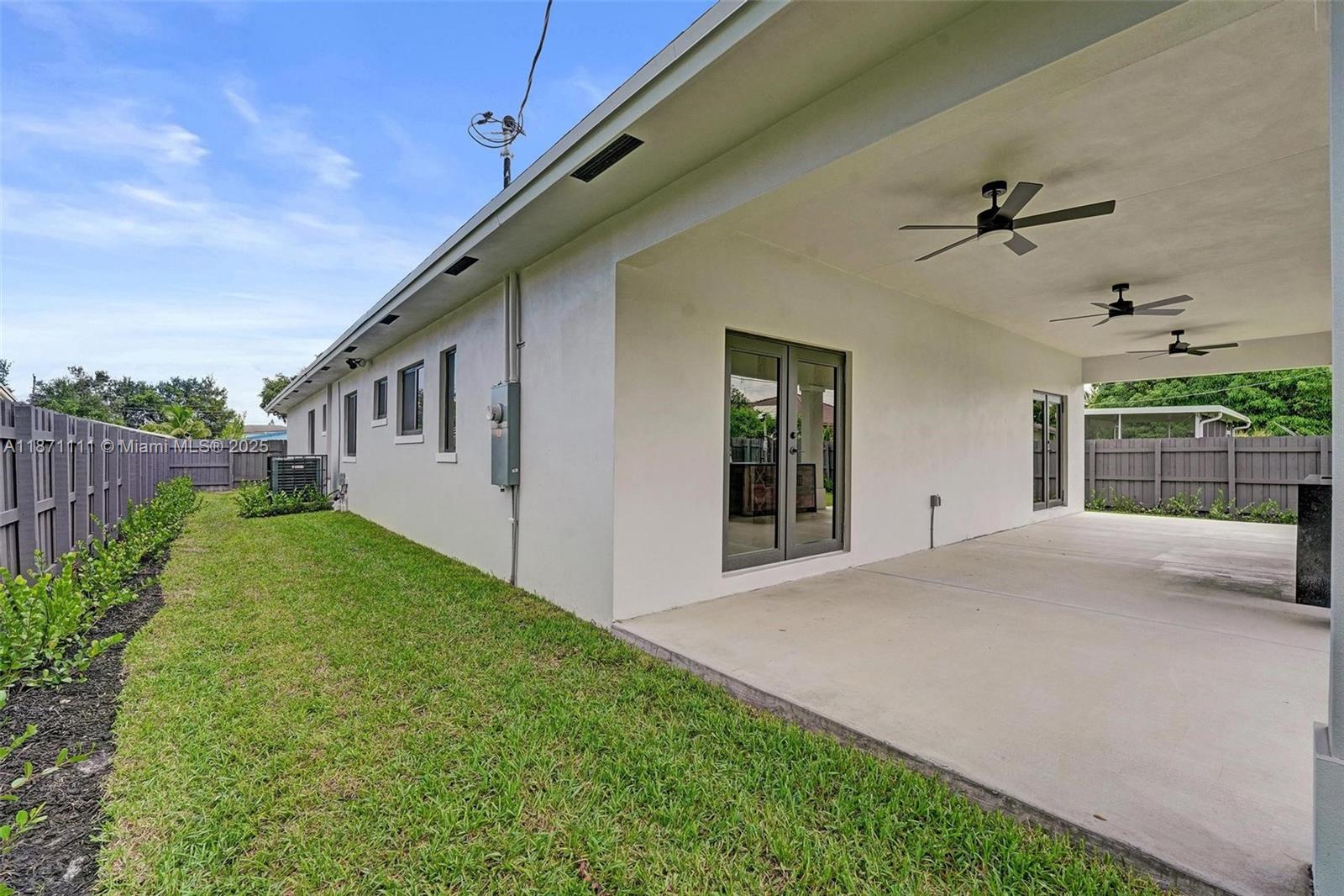 Stunning new construction minutes to the beach, Hard Rock Hotel & Casino, Hard Rock Stadium & Gulfstream Park. Designer-finished 4BR/3BA features an open-concept split bedroom plan, sleek porcelain tile, impact windows/doors & custom closets. Chef's kitchen showcases a quartz waterfall island & stainless steel appliances. Luxe primary suite offers an oversized custom closet & spa bath w/ separate shower & soaking tub. Two tankless water heaters. Expansive lanai extends outdoor living—ideal for entertaining. Large fenced yard w/ irrigation & room for a pool. 1-car garage w/ its own A/C for multipurpose use. No HOA! Not in a flood zone. Close to the airport for easy travel—central to beaches, stadiums, shops, dining, nightlife. Hurry, won't last!!!