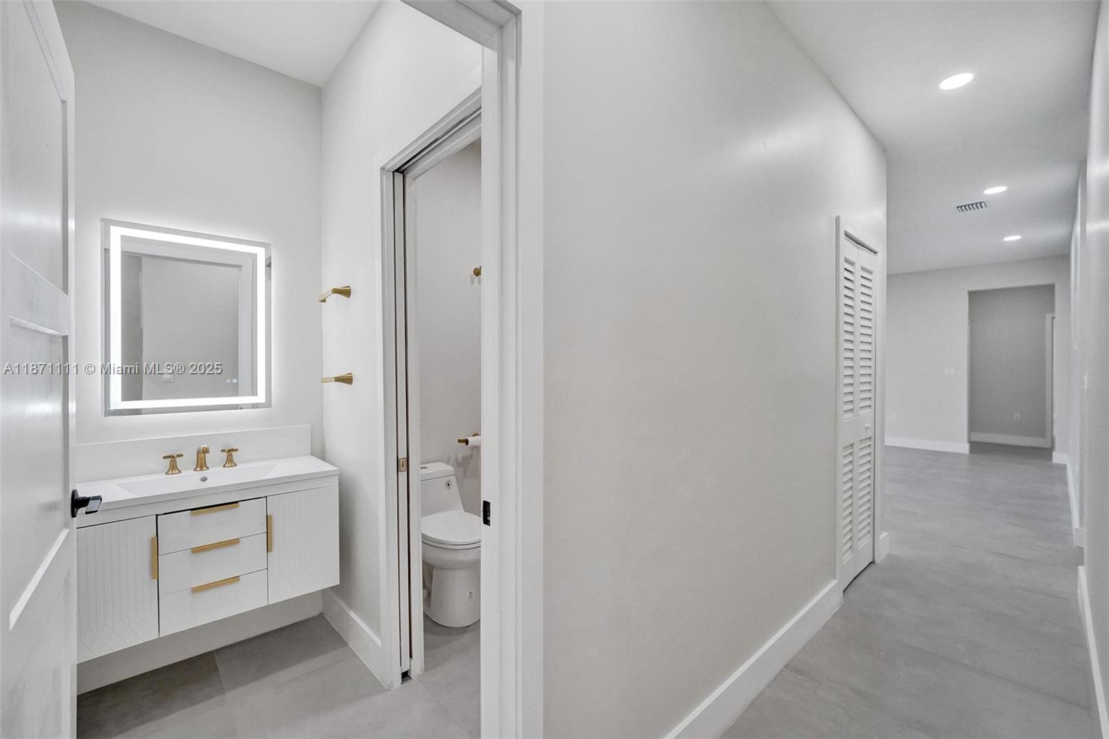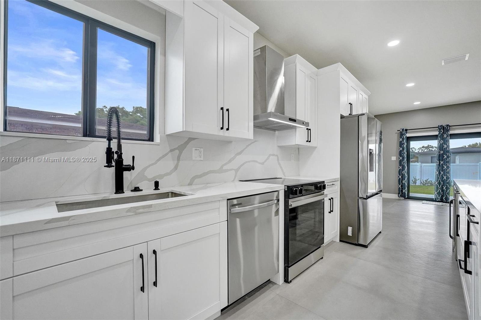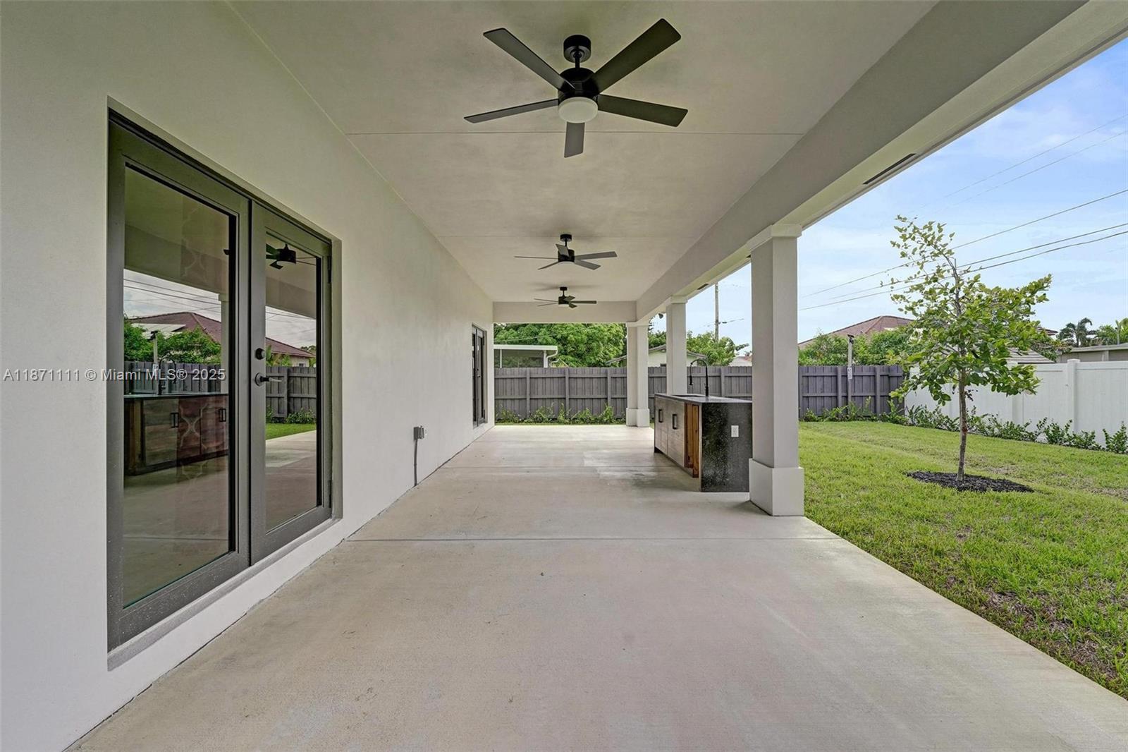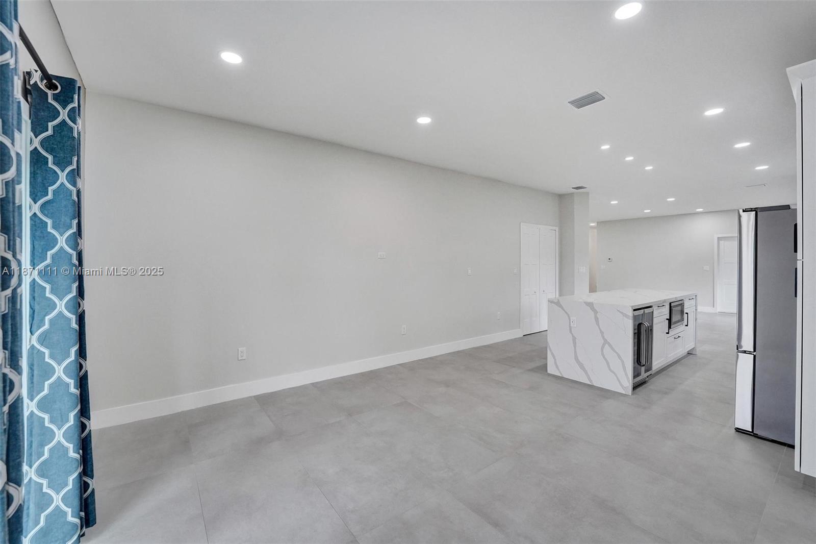Stunning new construction minutes to the beach, Hard Rock Hotel & Casino, Hard Rock Stadium & Gulfstream Park. Designer-finished 4BR/3BA features an open-concept split bedroom plan, sleek porcelain tile, impact windows/doors & custom closets. Chef's kitchen showcases a quartz waterfall island & stainless steel appliances. Luxe primary suite offers an oversized custom closet & spa bath w/ separate shower & soaking tub. Two tankless water heaters. Expansive lanai extends outdoor living—ideal for entertaining. Large fenced yard w/ irrigation & room for a pool. 1-car garage w/ its own A/C for multipurpose use. No HOA! Not in a flood zone. Close to the airport for easy travel—central to beaches, stadiums, shops, dining, nightlife. Hurry, won't last!!!