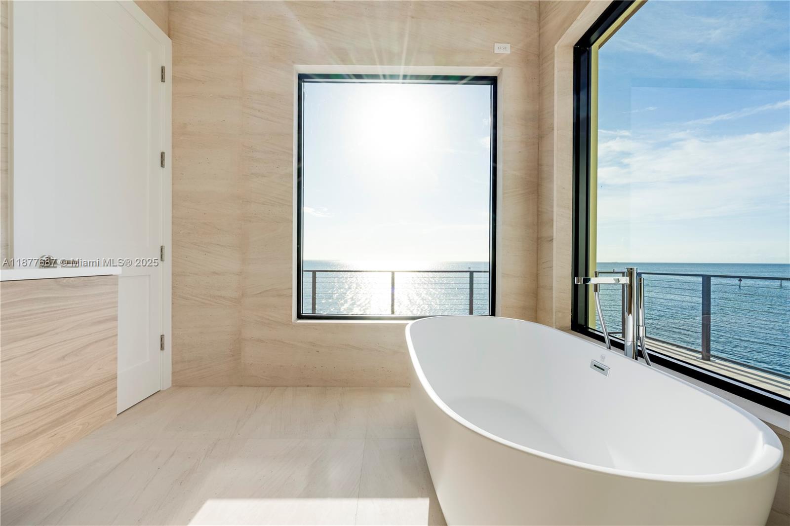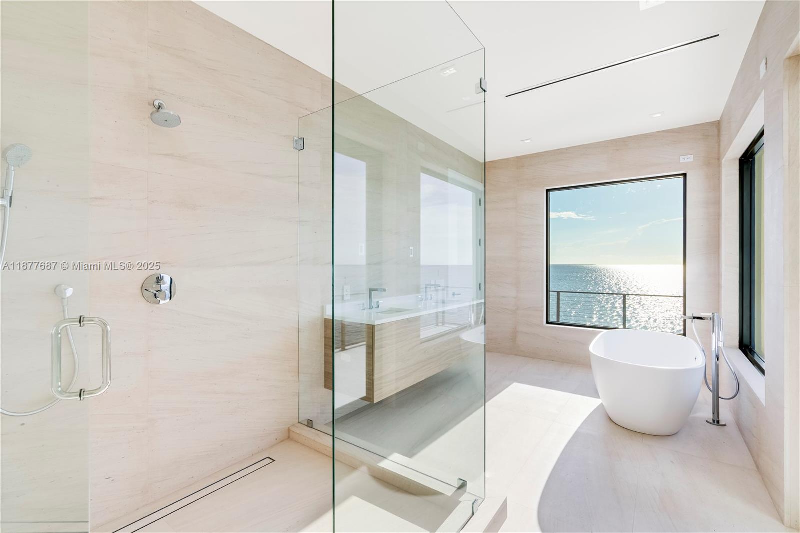 Tip of the World on Lugo Avenue.Gables by the Sea Breathtaking location paired with a stunning contemporary residence. From every room, enjoy unparalleled 360° views framed by floor-to-ceiling impact glass windows & doors. The entrance door itself is a true showpiece, opening into soaring ceilings & a seamless flow of light-filled spaces. Choose your moment: sunrise, sunset ,the sparkling Miami skyline by night.Elevated & elegant, master suite features a spacious balcony overlooking Biscayne Bay. All-new. All-white.Effortless floor plan designed for modern living.The pool deck offers endless water views, complemented by a seawall . Gables by the Sea is a gated community w/Coral Gables Police patrol. 24/7 security. 3D tours, Matterport & videos available. Come see it. Fall in love.