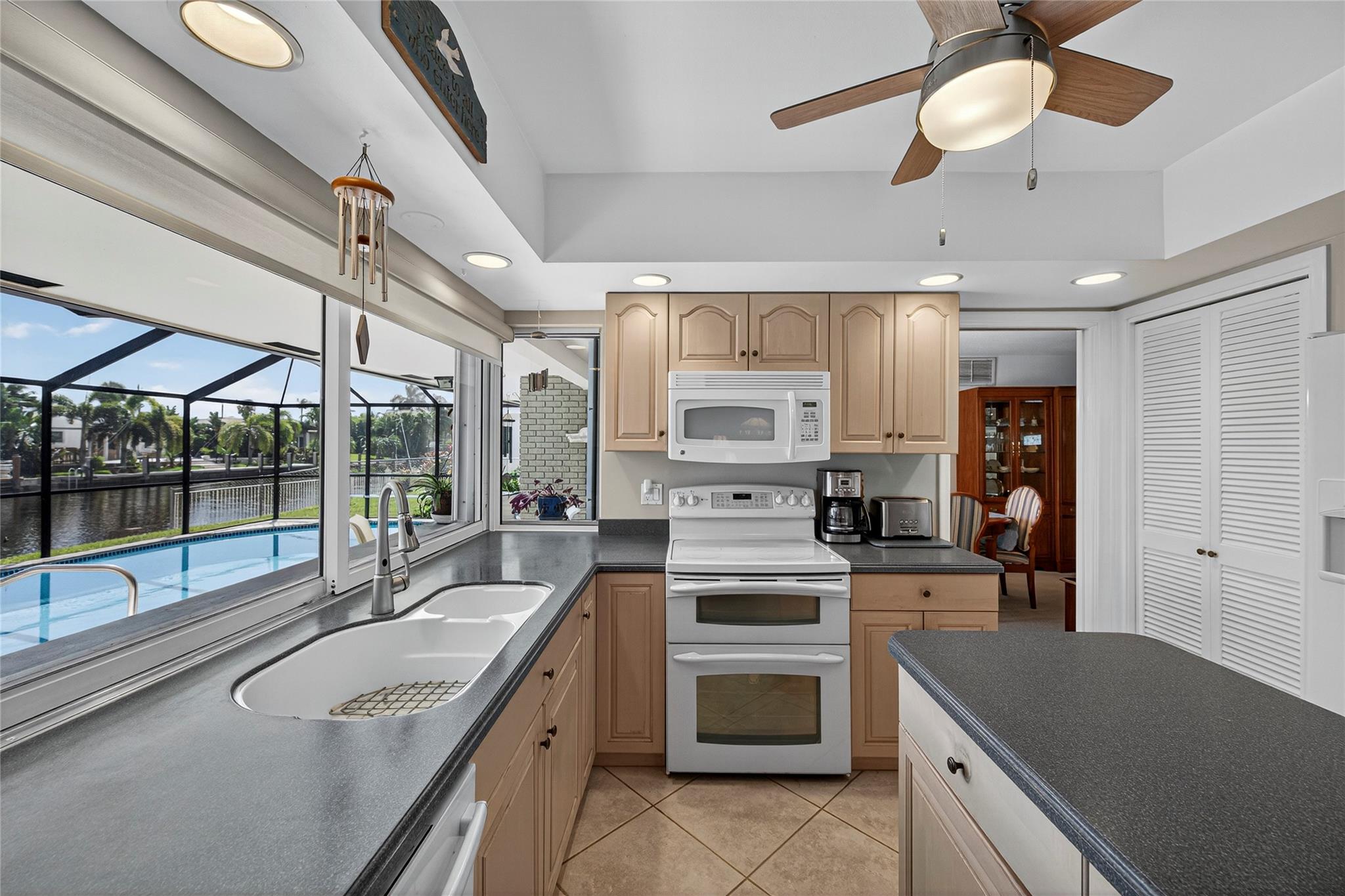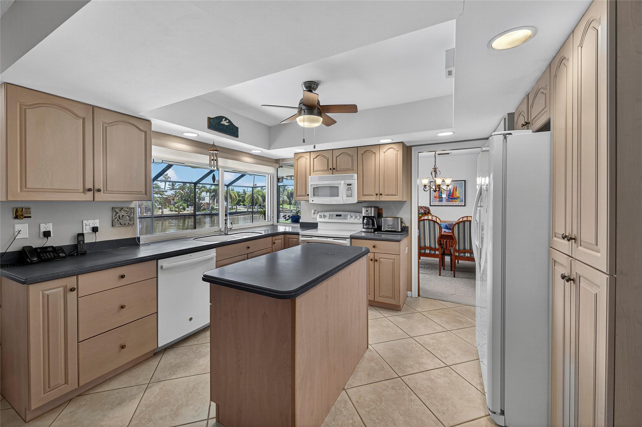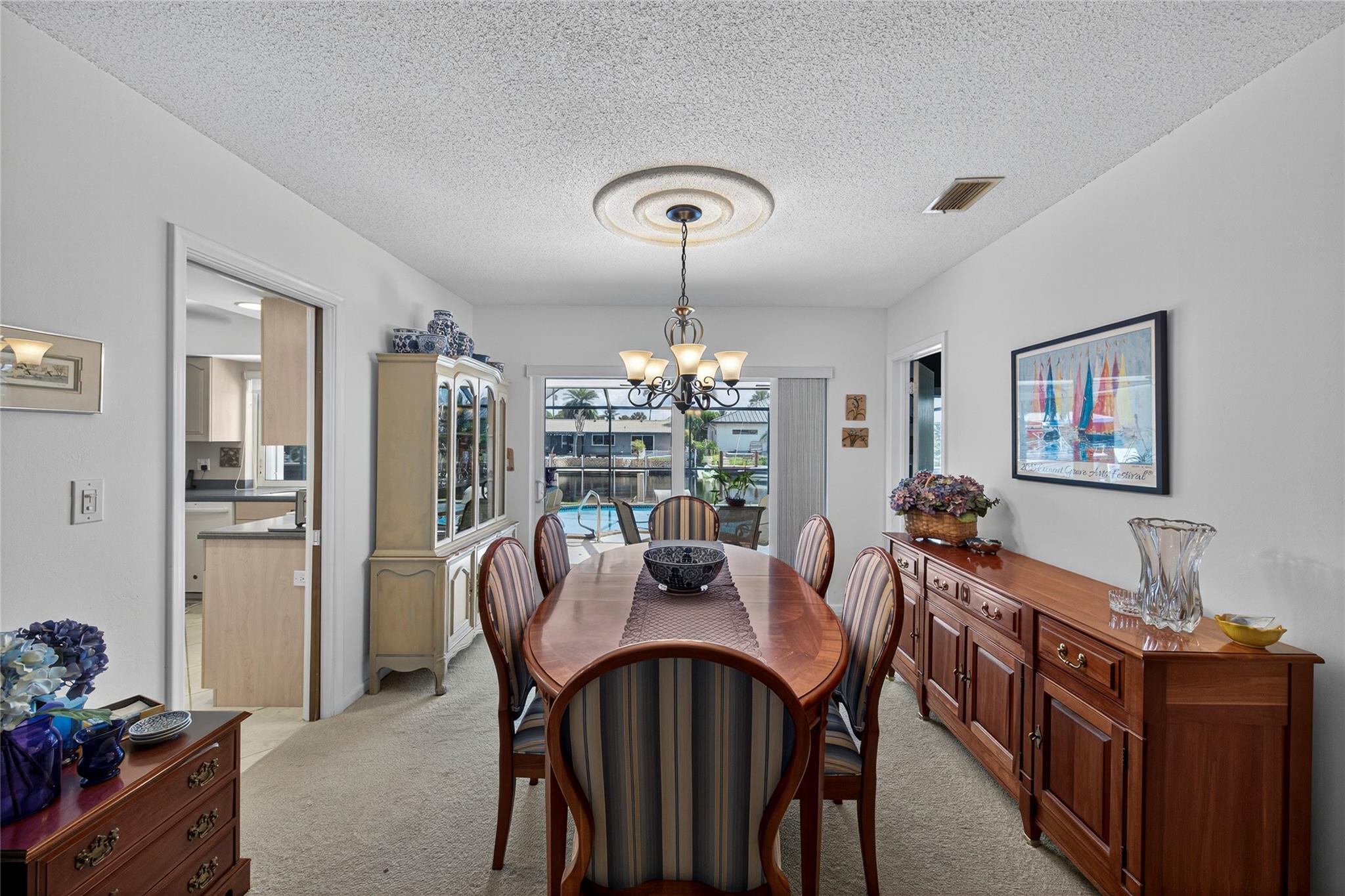 Well maintained 4 bedroom home with 2 original bathrooms, 2 car garage, screened pool and 80 feet of water frontage, one fixed bridge to ICW. Dock is composite and includes boat lift. Roof recently replaced in 2024, split package A/C units. Interior & exterior electric panels updated 2018 including generator hookup. Impact windows and doors. Kitchen is older but not original, opens to family room. Formal dining room in living room. Fourth bedroom connects to primary suite, ideal as an office, gym or nursery.