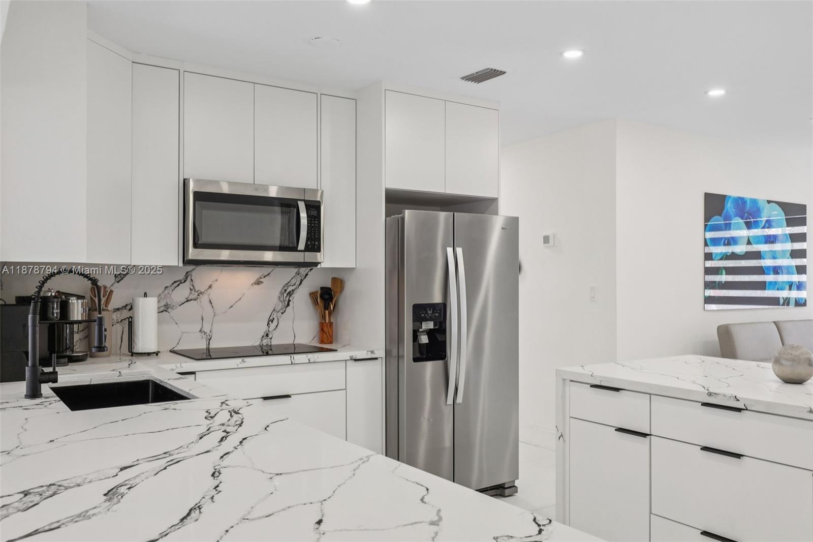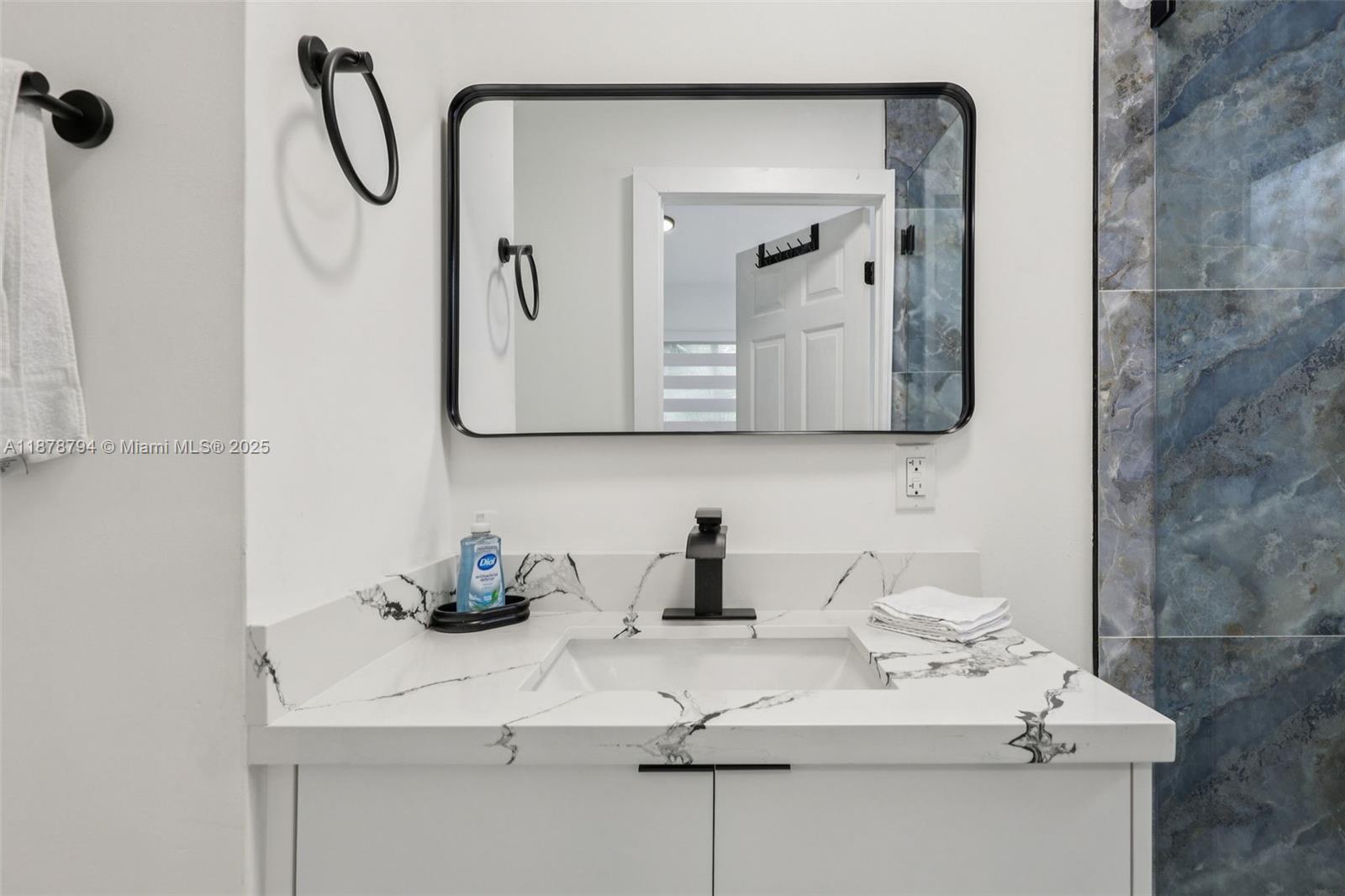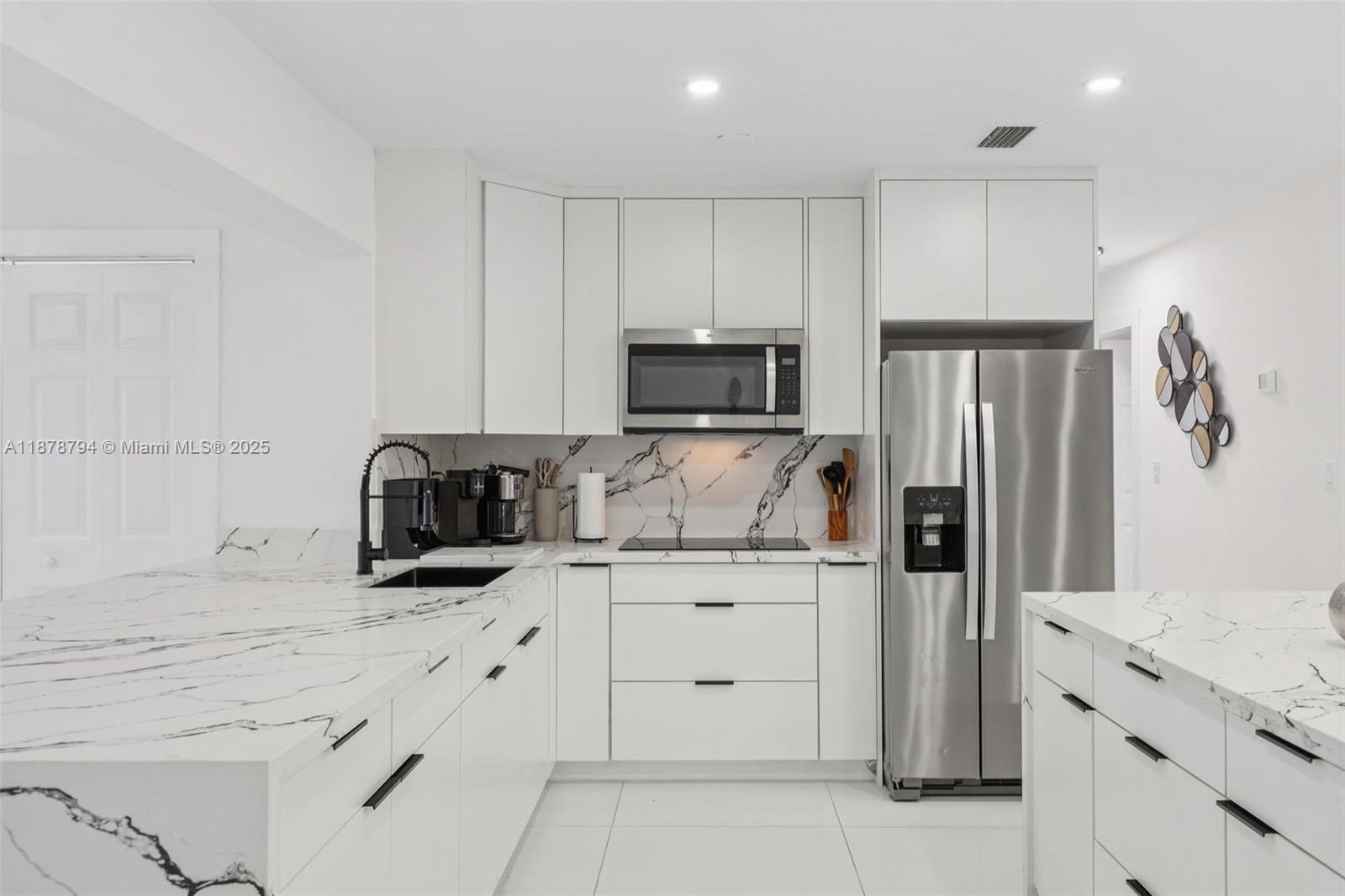 Welcome to this beautifully remodeled 3-bedroom, 2-bath home blending contemporary style with everyday comfort. The open-concept floor plan showcases a chef-inspired kitchen with a large island, quartz countertops, sleek white cabinetry, and stainless steel appliances. Bathrooms feature modern elegance with floor-to-ceiling tile and updated fixtures, while white porcelain floors enhance the home’s bright, seamless flow. Outdoors, enjoy an expansive lot with a backyard retreat designed for entertaining and relaxation. A sparkling pool invites year-round enjoyment of South Florida’s warm weather. Featuring a new roof and PVC plumbing updated in 2024, this property is perfect as a residence or investment, ideal for short-term rental or Airbnb.