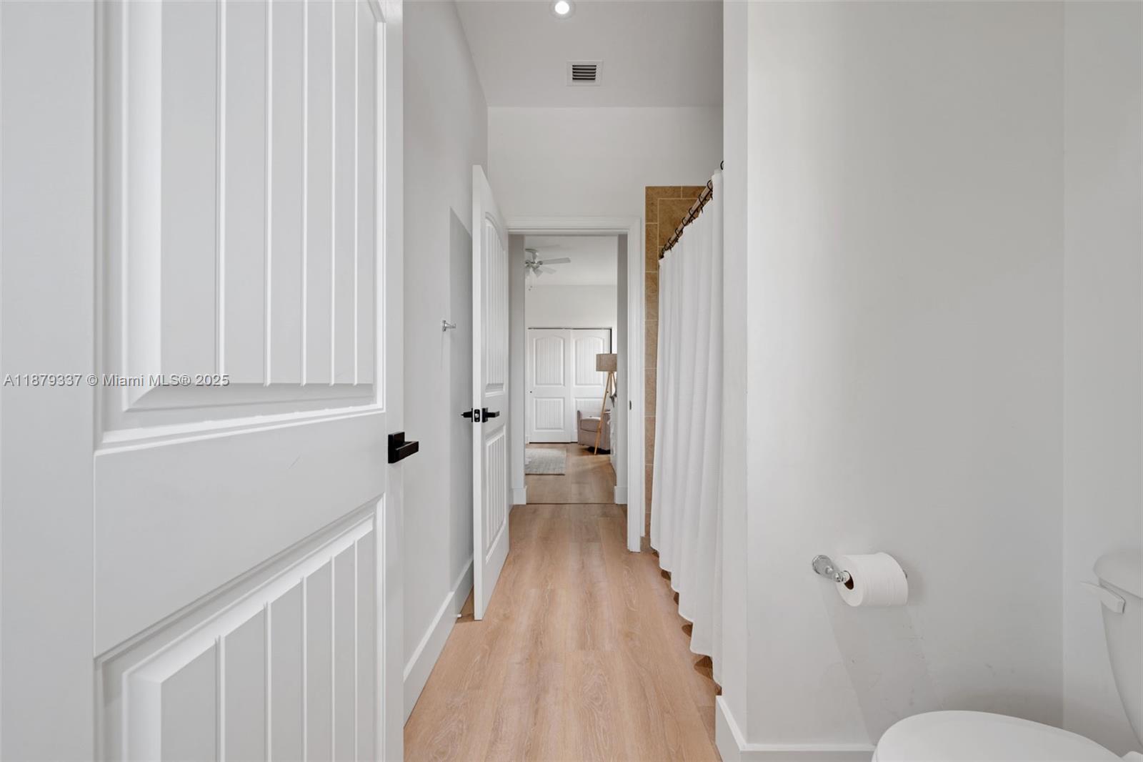 Beautiful single-family home with 5 bedrooms, 4 bathrooms. Wood and vinyl floors throughout, high ceilings, and recessed lighting in a very spacious open floor plan. The updated kitchen includes quartz countertops and stainless steel appliances, all less than 1 year old including washer/dryer. All bathroom vanities have new quartz tops. Upstairs has large flexible space for second living area, playroom, or office. The freshly replaced lawn and Clusia hedges provide privacy and a well-maintained backyard. Impact windows, a water filtration system, and a sleek stair railing complete this stylish, comfortable home ready for modern living. Low HOA fees. Steps from City Hall, kids’ park in community and trails. Don't miss out—schedule a showing today!