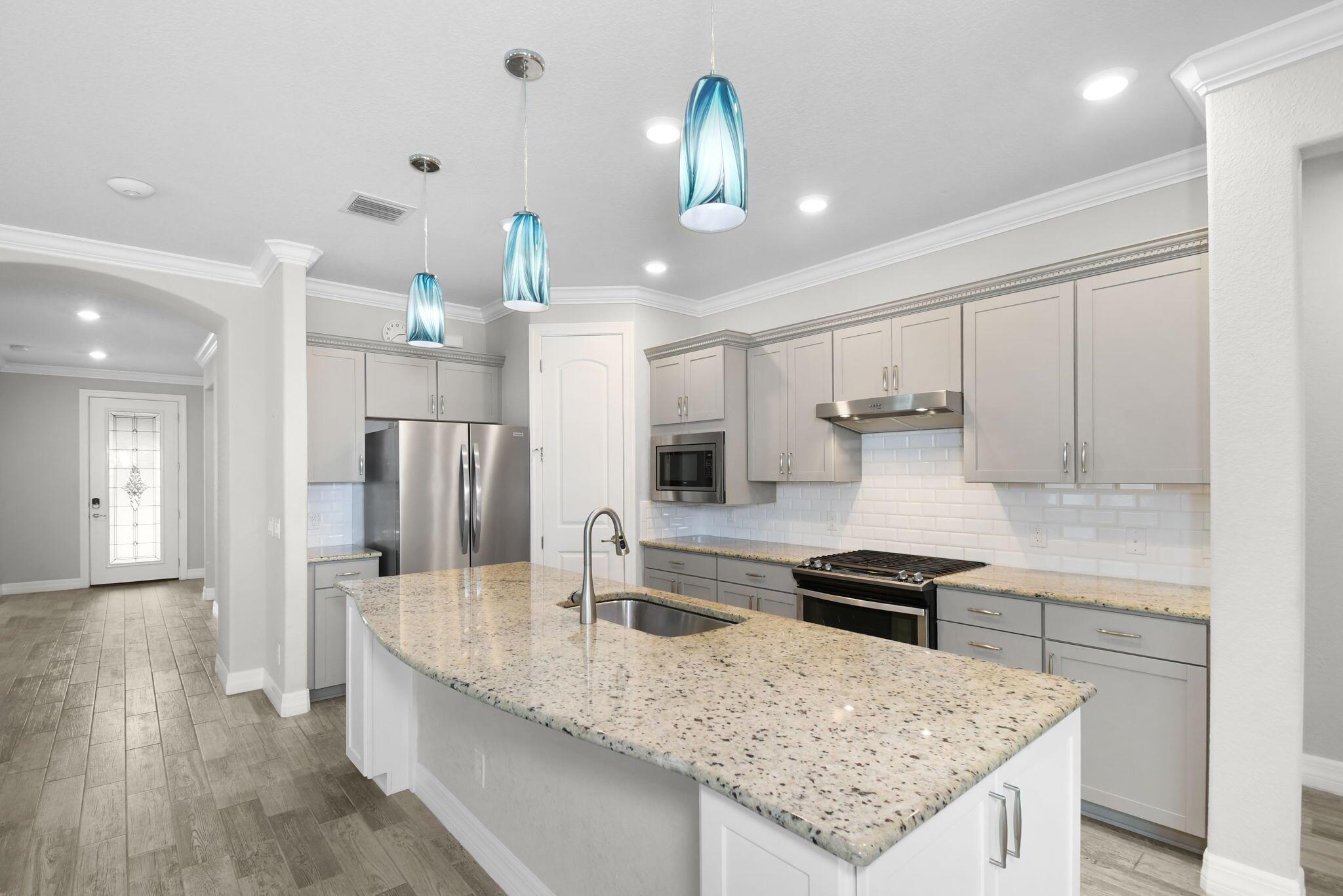 ***SELLER PAYING OFF THE NEXT 18 YEARS OF THE CDD*** New owner will not have one!! Experience the best of 55+ resort-style living in this beautifully designed and very spacious 2-bedroom PLUS den, 2-bath POOL home in the sought-after Del Webb at TRADITION community. This modern residence offers an open and airy floor plan with upgraded finishes, full impact glass windows, volume ceilings throughout, oversized laundry room with upgraded cabinetry, and a covered, screened patio that overlooks a sparkling saltwater pool--set on a preserve, perfect for entertaining or relaxing year-round. The oversized open-concept home features plantation shutters, crown molding, upgraded baseboards, custom built-ins, upgraded countertops and an upgraded extended shower in the owners' suite. The garage will