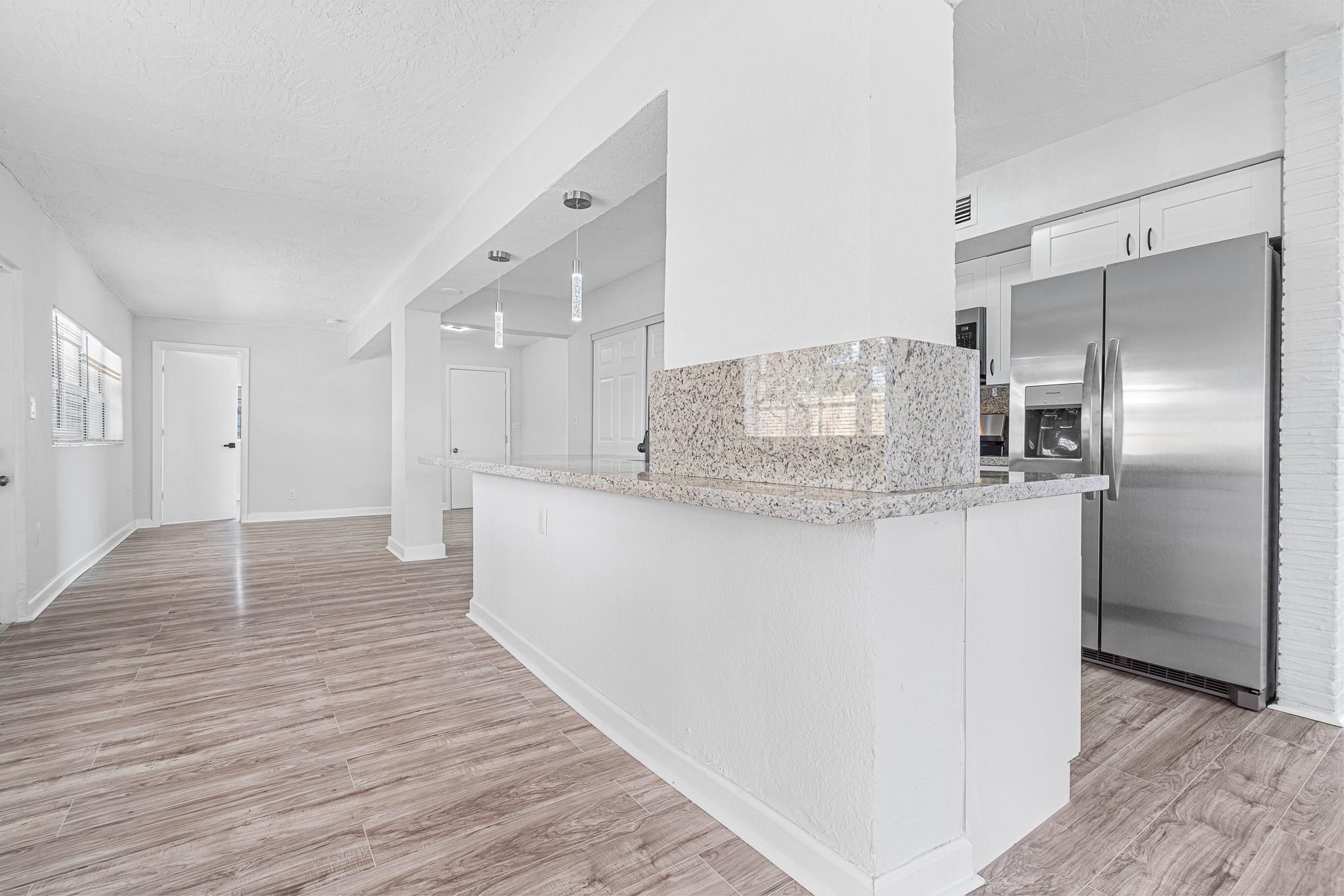 5-bedroom, 2-bathroom large home, up to date, perfectly positioned next to I-95 with a convenient circular driveway that easily accommodates up to 5 cars. Over 2000 square feet, this move-in-ready residence features a spacious family room ideal for entertaining or cozy gatherings, complemented by a thoughtful layout with ample living space. Inside,you’ll find fresh ceramic tile and vinyl flooring, a stunning kitchen and bathroom showcasing thick granite countertops, and brand-new stainless steel appliances. Recently painted for a pristine, modern feel. New roof. Easy to view,this property also offers abundant parking out front, blending practicality with style in an unbeatable location. Easy to show details in showing time with all details.