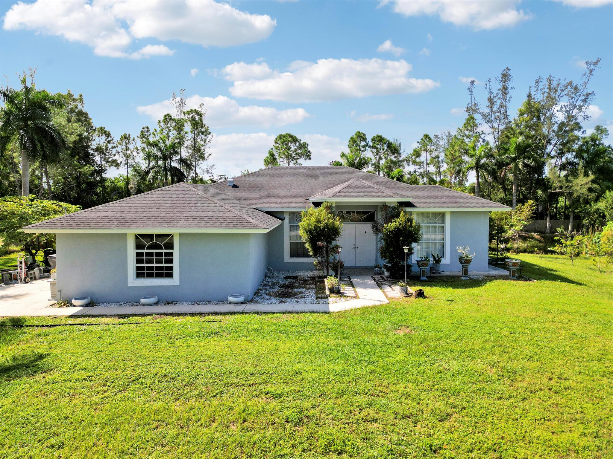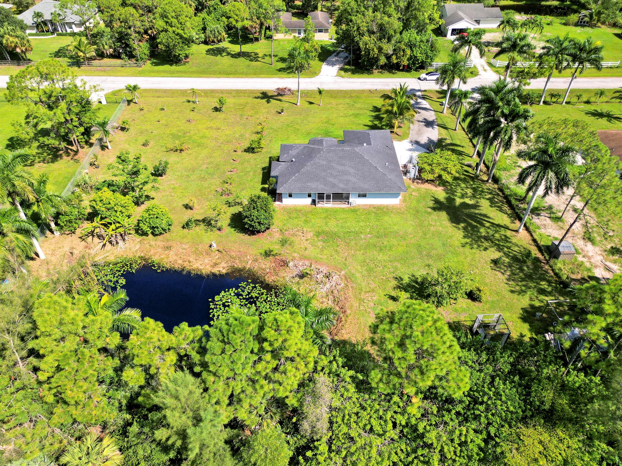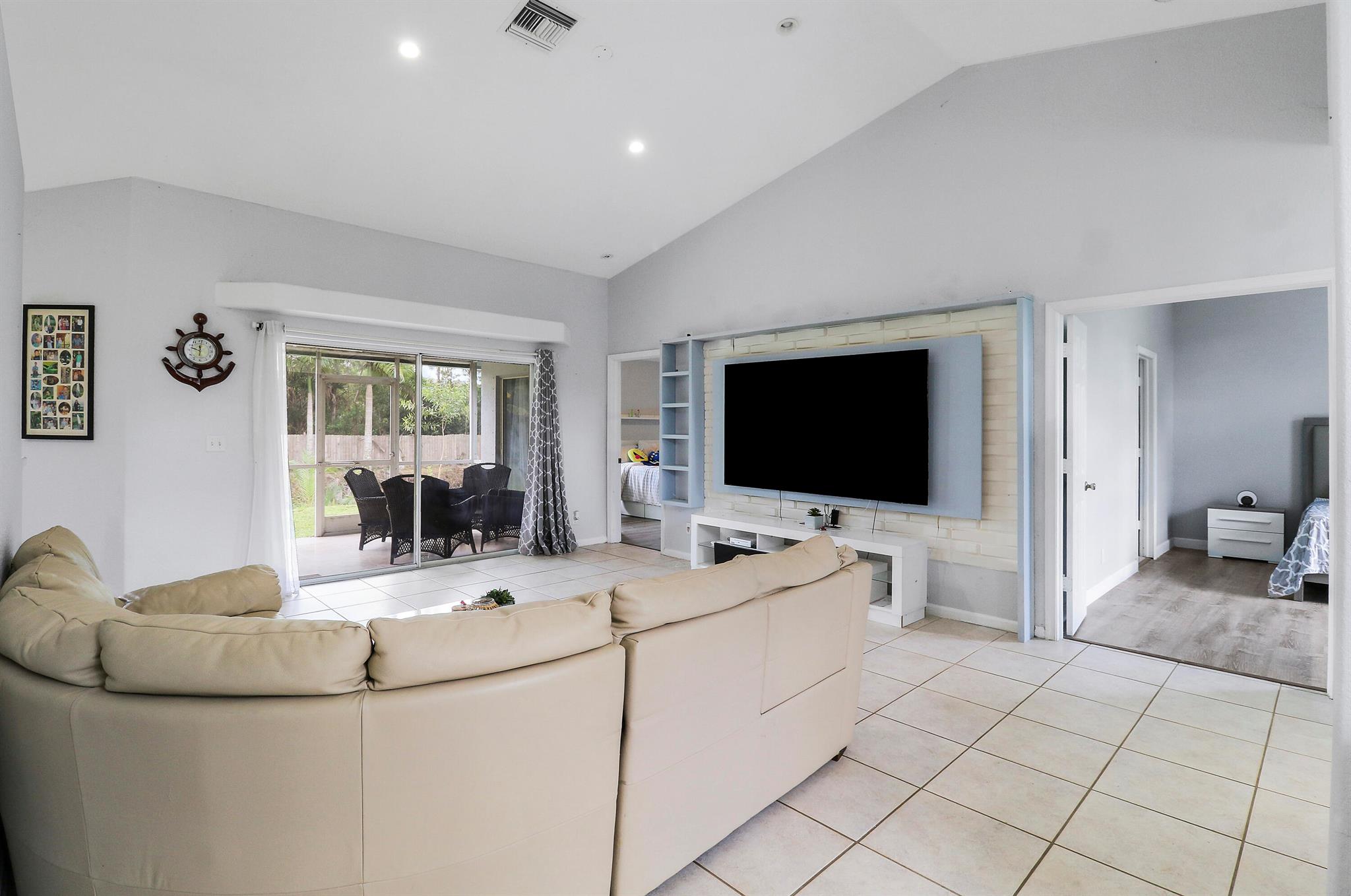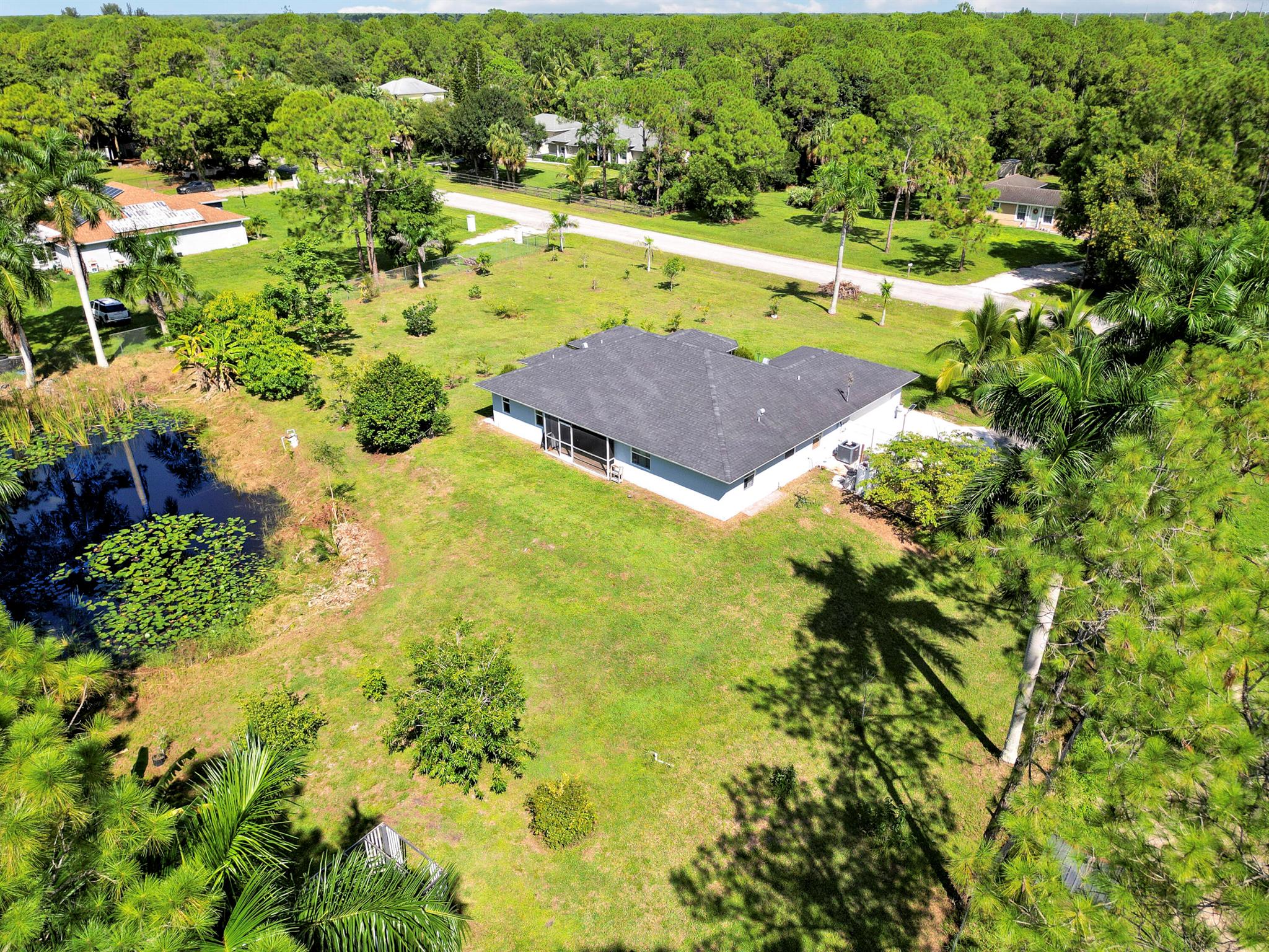 Welcome to this spacious 4 bedroom 2 bathroom home with a 2 car garage, set on a private 1.29 acre lot in The Acreage with no HOA. Built in 1998, the home offers 1,798 living sqft with a split floor plan, tile flooring in the common areas and bathrooms, and laminate in the bedrooms (No Carpet)!Highlights include upgraded bathrooms, a screened in patio, and large backyard with your very own pond. The roof was replaced in 2020 and the septic system was cleaned and inspected in August 2025. The kitchen counters and other areas need updating, giving buyers the opportunity to add personal touches. With some TLC, this property can be transformed into your dream oasis.