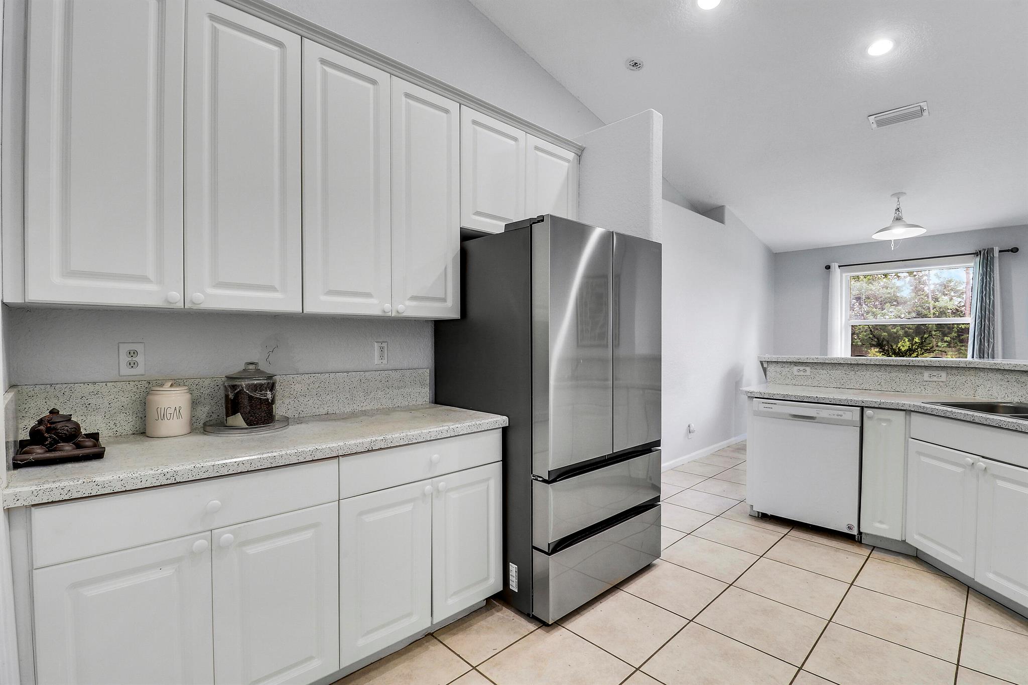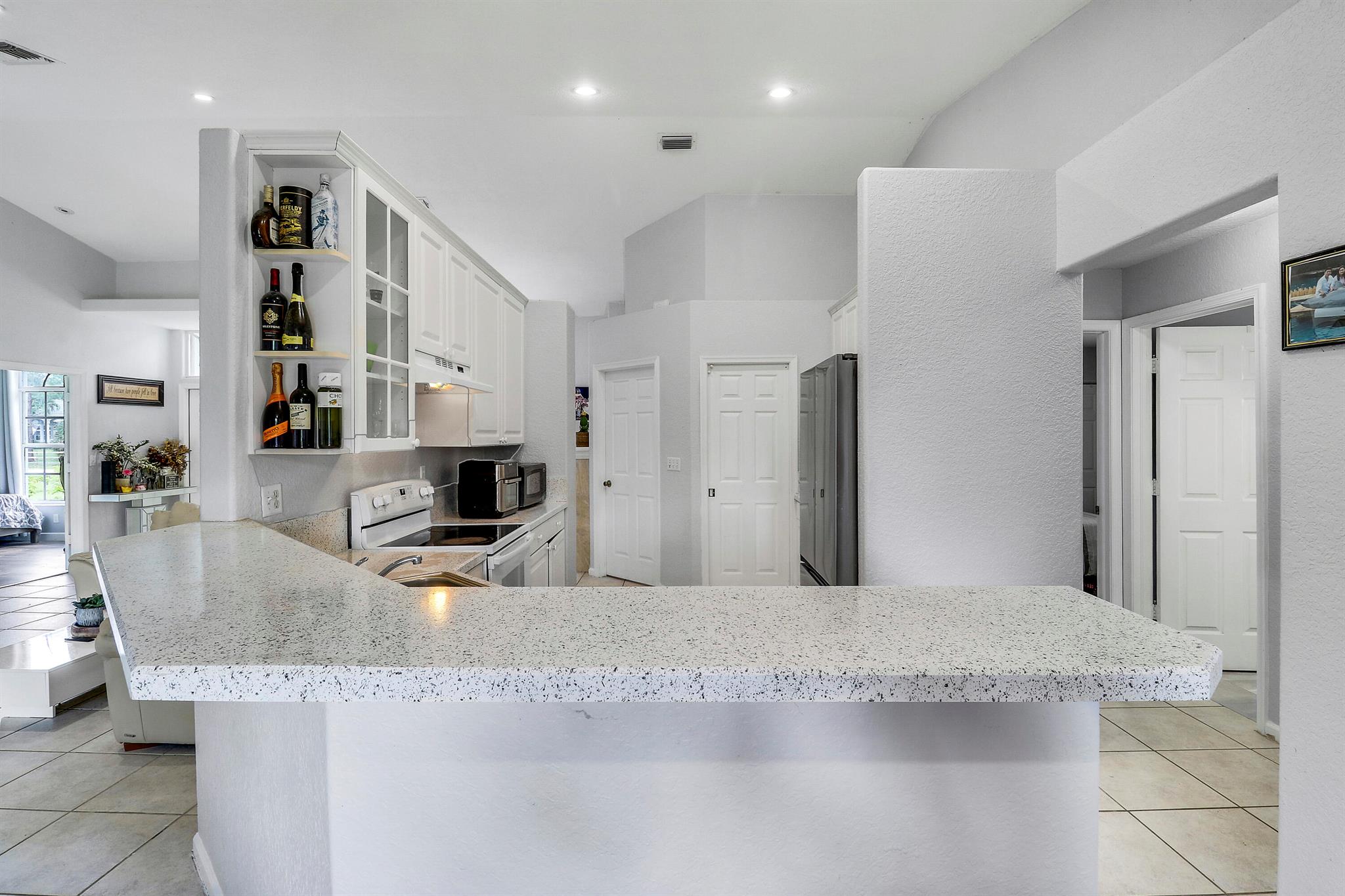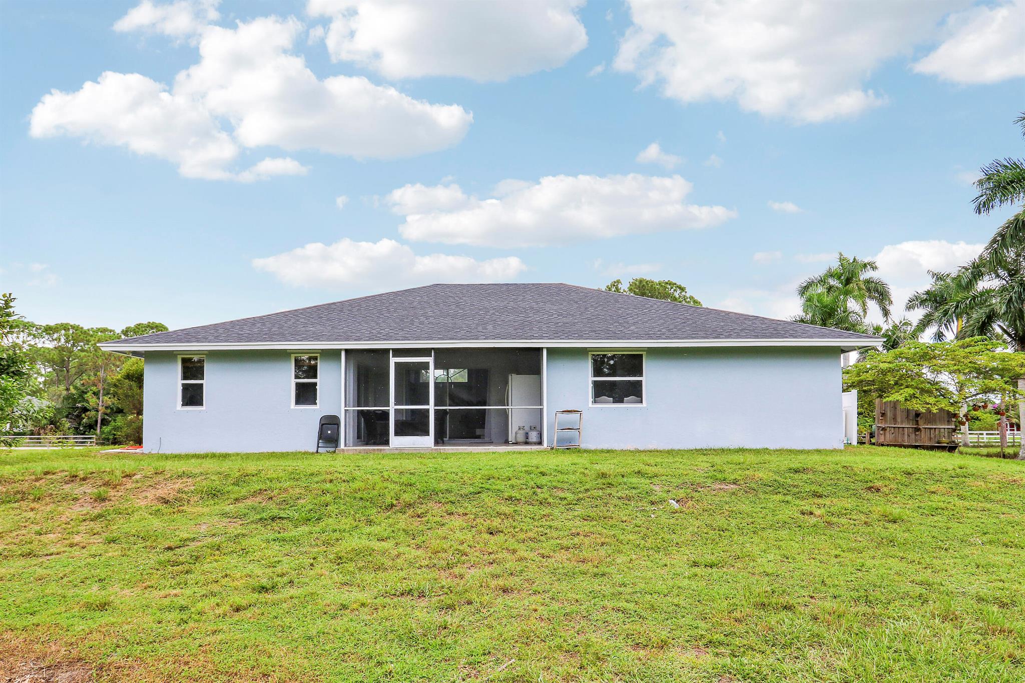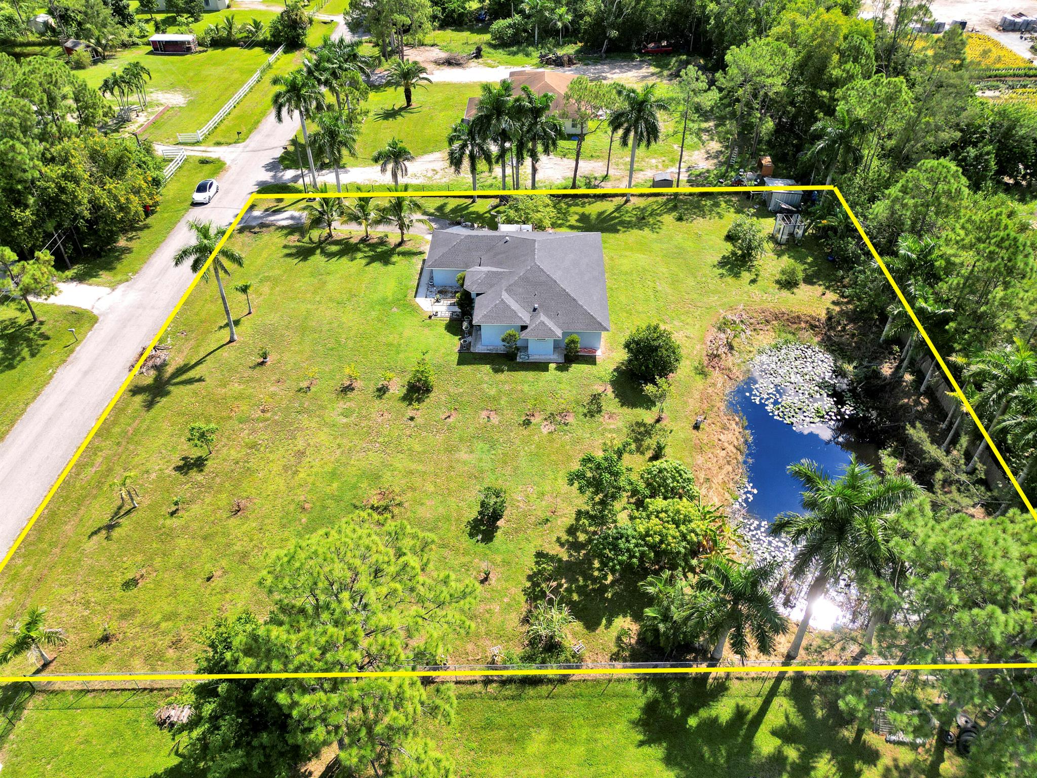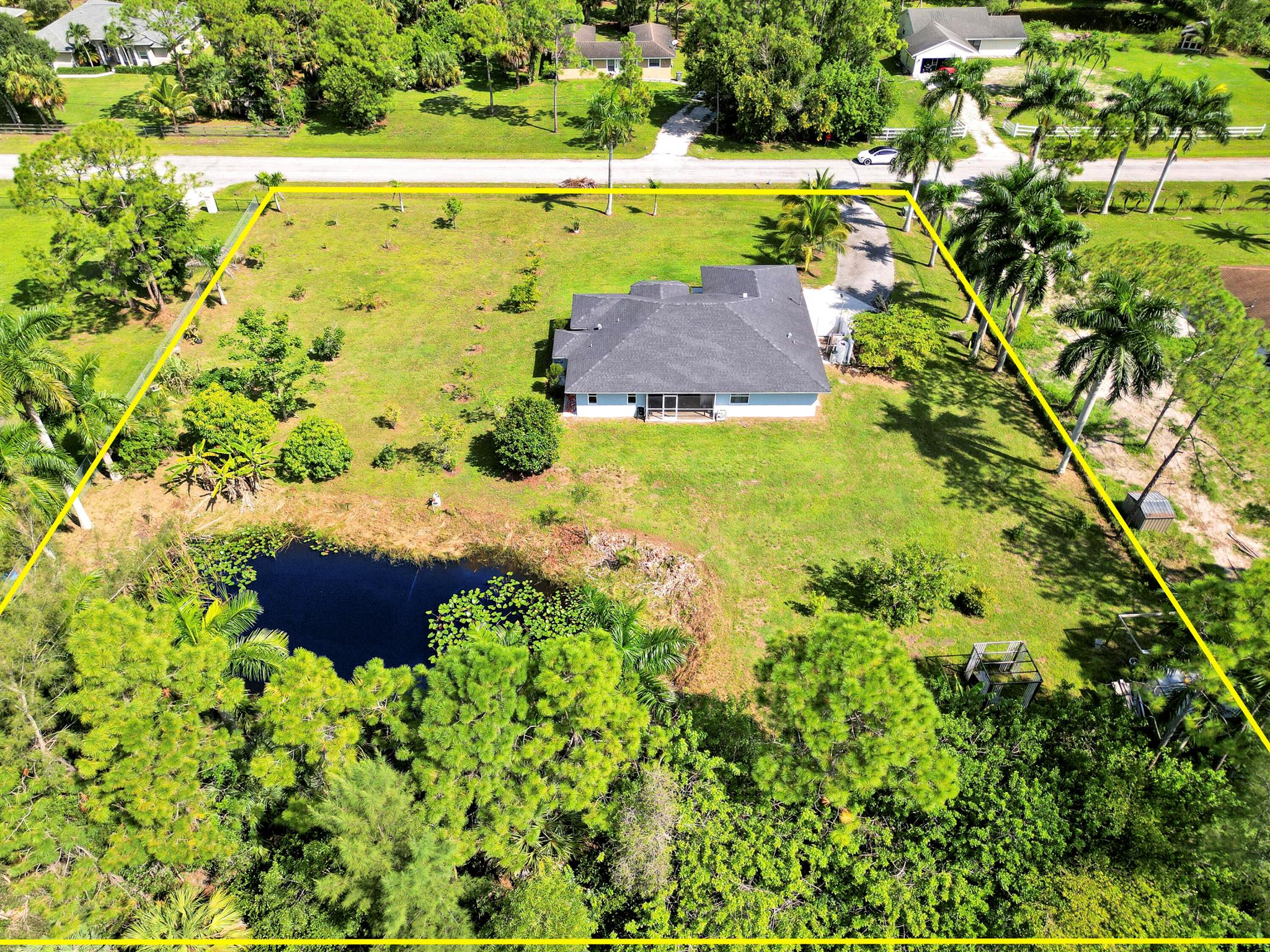 Welcome to this spacious 4 bedroom 2 bathroom home with a 2 car garage, set on a private 1.29 acre lot in The Acreage with no HOA. Built in 1998, the home offers 1,798 living sqft with a split floor plan, tile flooring in the common areas and bathrooms, and laminate in the bedrooms (No Carpet)!Highlights include upgraded bathrooms, a screened in patio, and large backyard with your very own pond. The roof was replaced in 2020 and the septic system was cleaned and inspected in August 2025. The kitchen counters and other areas need updating, giving buyers the opportunity to add personal touches. With some TLC, this property can be transformed into your dream oasis.