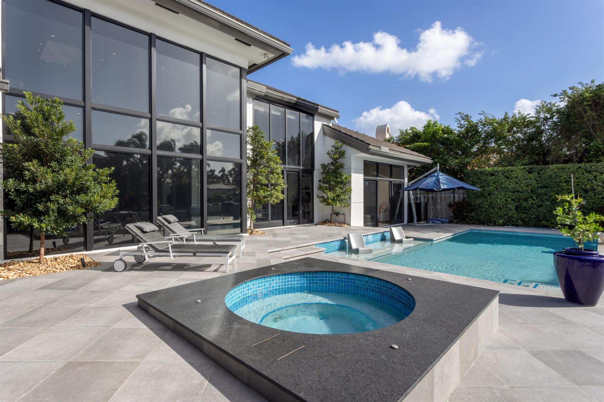 Blending contemporary architecture with lofty urban chic, this dramatic yachting estate offers a voluminous open floor plan with stunning interiors, serene water views, and direct ocean access. A massive glass grid entry with oversized custom double doors reveals a towering 30-foot foyer, which is a prelude to the voluminous expanse of this open-plan design. A skylit gallery sitting area is framed by twin suspended staircases with open cable rails and recessed stair lights. The dining area offers a floor-to-ceiling expansive grid window wall view of the sun-drenched pool and waterway. Soaring shiplap walls and bleached oak designed porcelain floors provide a modern farmhouse ambience.