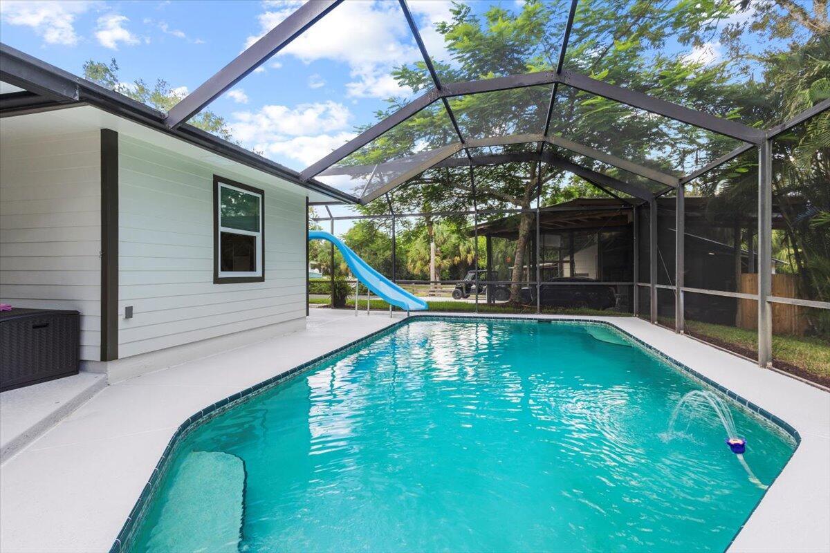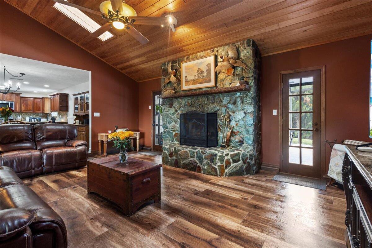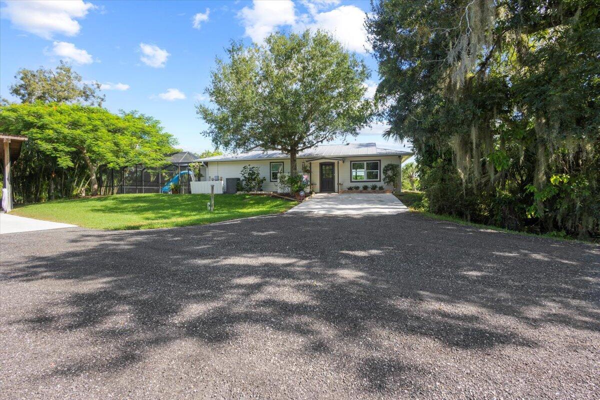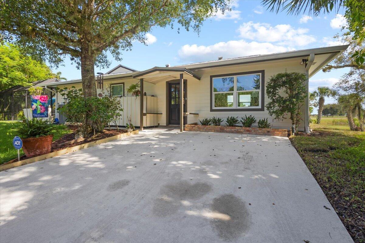 Modern Farmhouse Style Ranch awaits you on a 7 Acre Country Estate only 15 minutes from town. Updated exceptional paradise located in St Lucie County. Bring your friends, family, toys, animals & enjoy a private lifestyle like no other along Ten Mile Creek. Featuring an updated well maintained charming & inviting home with Metal Roof, 4 BR's & 3 Full BA's. Foyer entrance, vaulted ceiling & grand stone wood burning fireplace. New Luxury Vinyl floors throughout & impact hurricane windows. Beautiful updated eat in kitchen w/ wood cabinets, granite counter tops & stainless steel appliances. Inviting family room called ''The Rose Room'' perfect for relaxing & enjoy country living at it's finest! Outside Oasis boasts pool, spacious lanai, fire pit, Horse Barn w/stables & detached carport /shed.