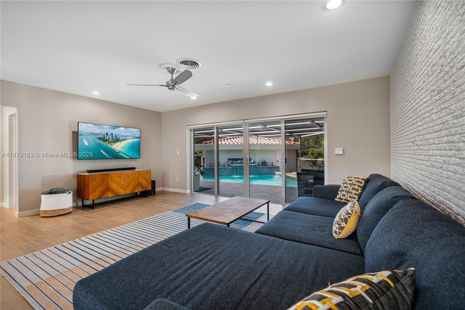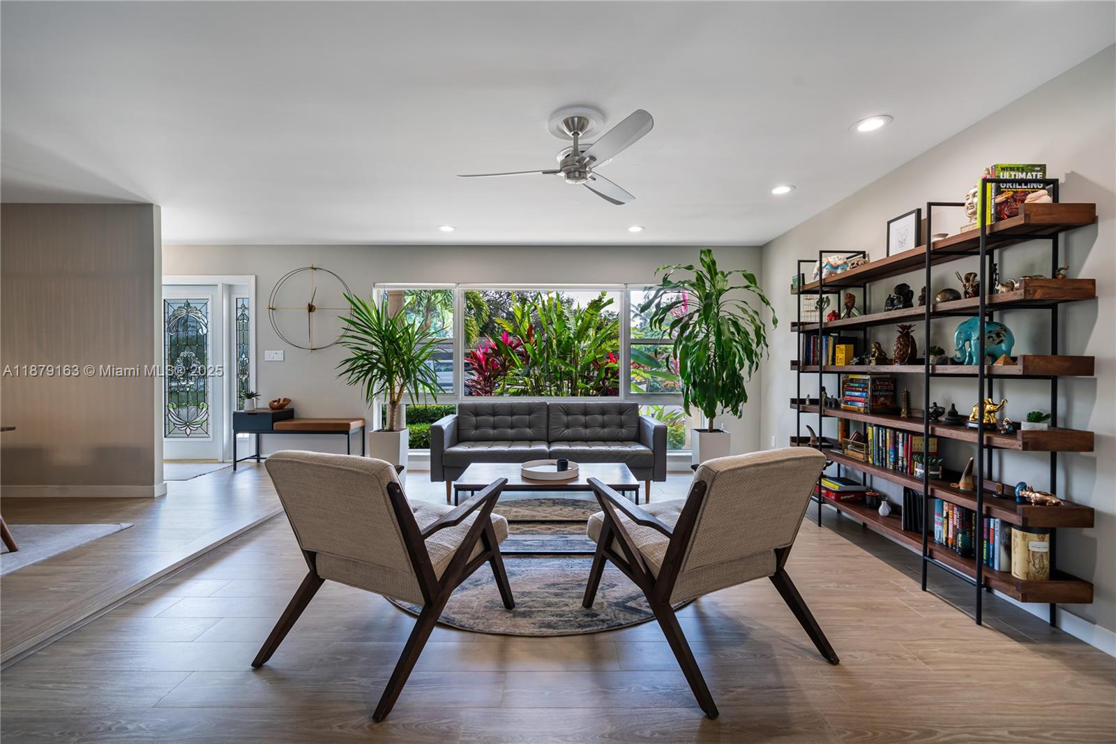Stunning reimagined Mid-Century modern in sought-after East Miami Shores, steps from Biscayne Bay. This 3BR/3BA gem sits on an oversized 8,368 SF lot and blends timeless architecture with modern upgrades. Bright open floor plan showcases new flooring, designer-finished baths, and a sleek kitchen with premium appliances. Impact windows, lush landscaping, and a screened-in pool patio create a private resort-style retreat perfect for entertaining. Rear-entry 2-car garage offers storage with flexible potential for guest suite, office, or gym. Ideally located near top schools, golf, tennis, aquatic center, parks, shopping & dining offering luxury living and everyday convenience.