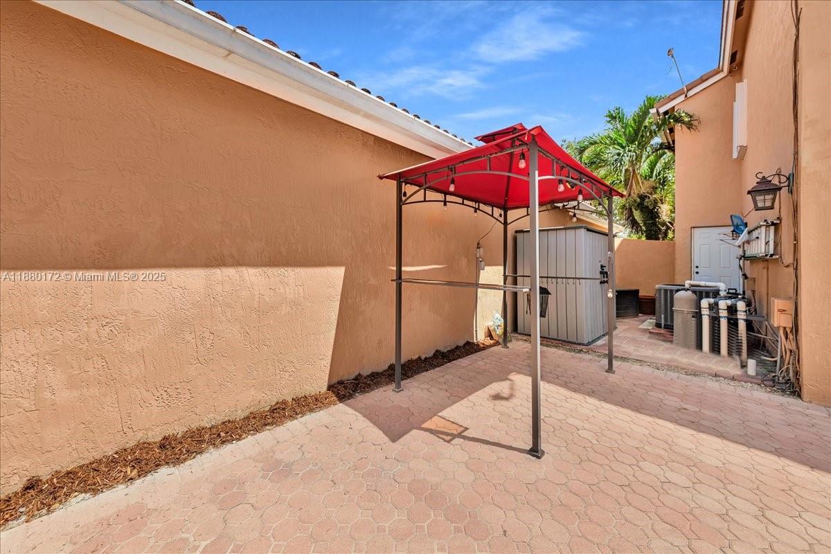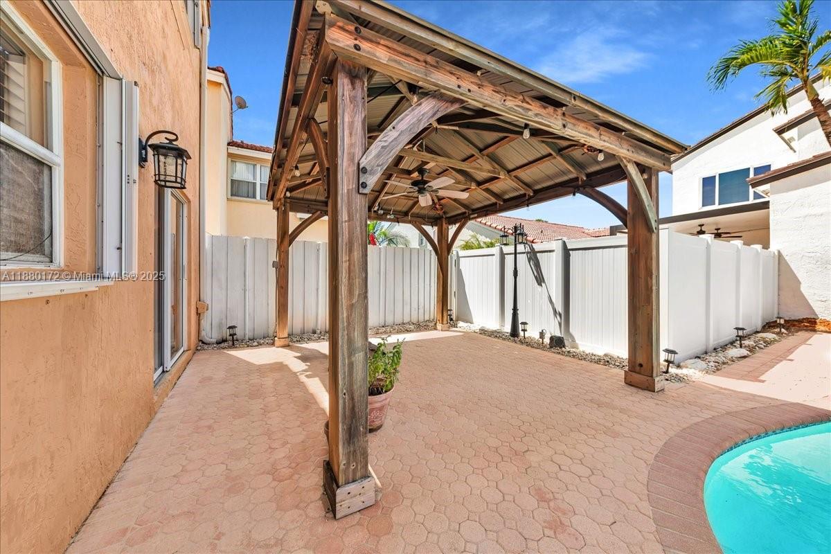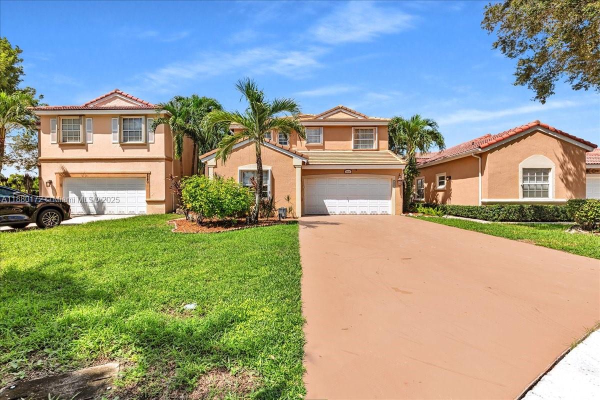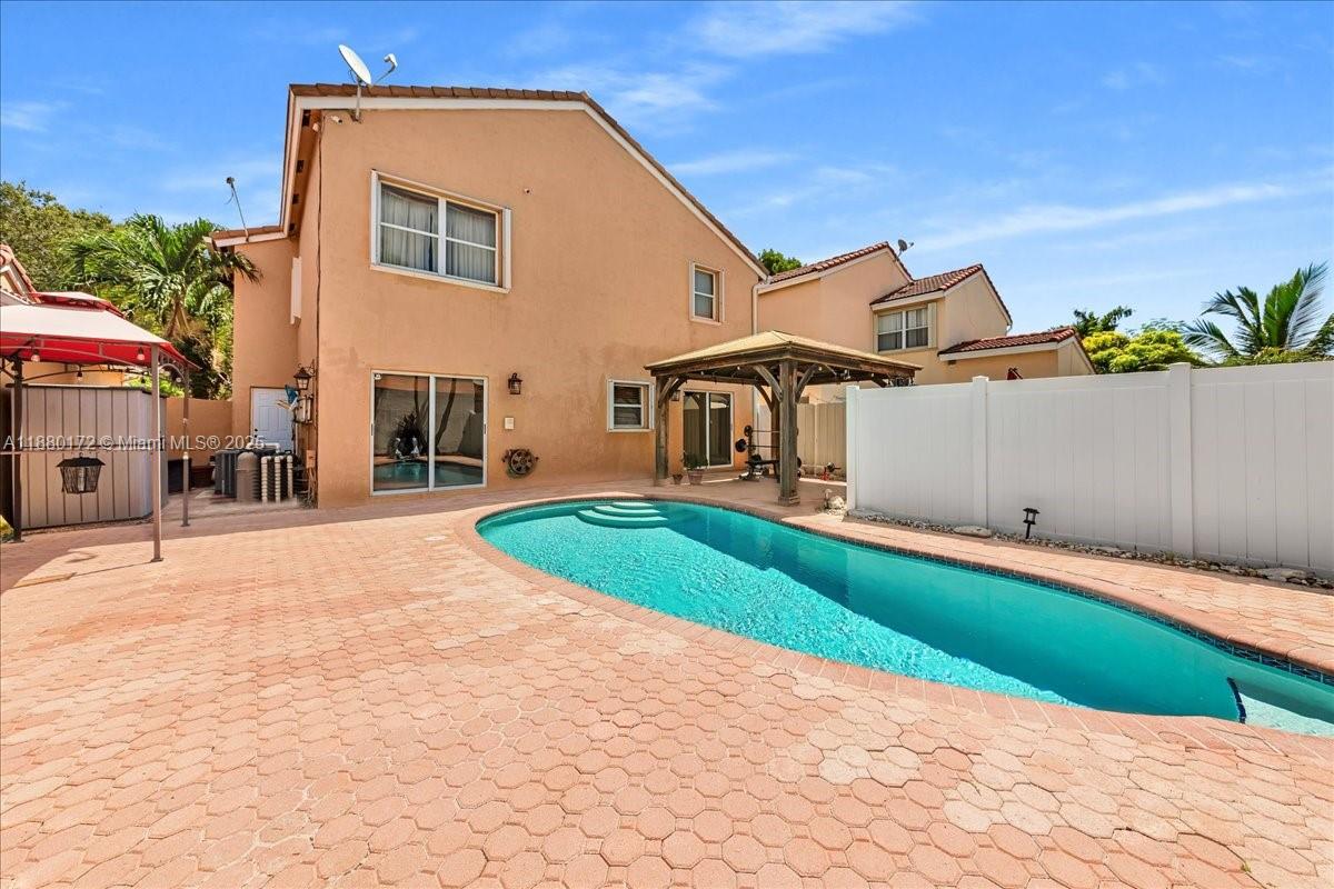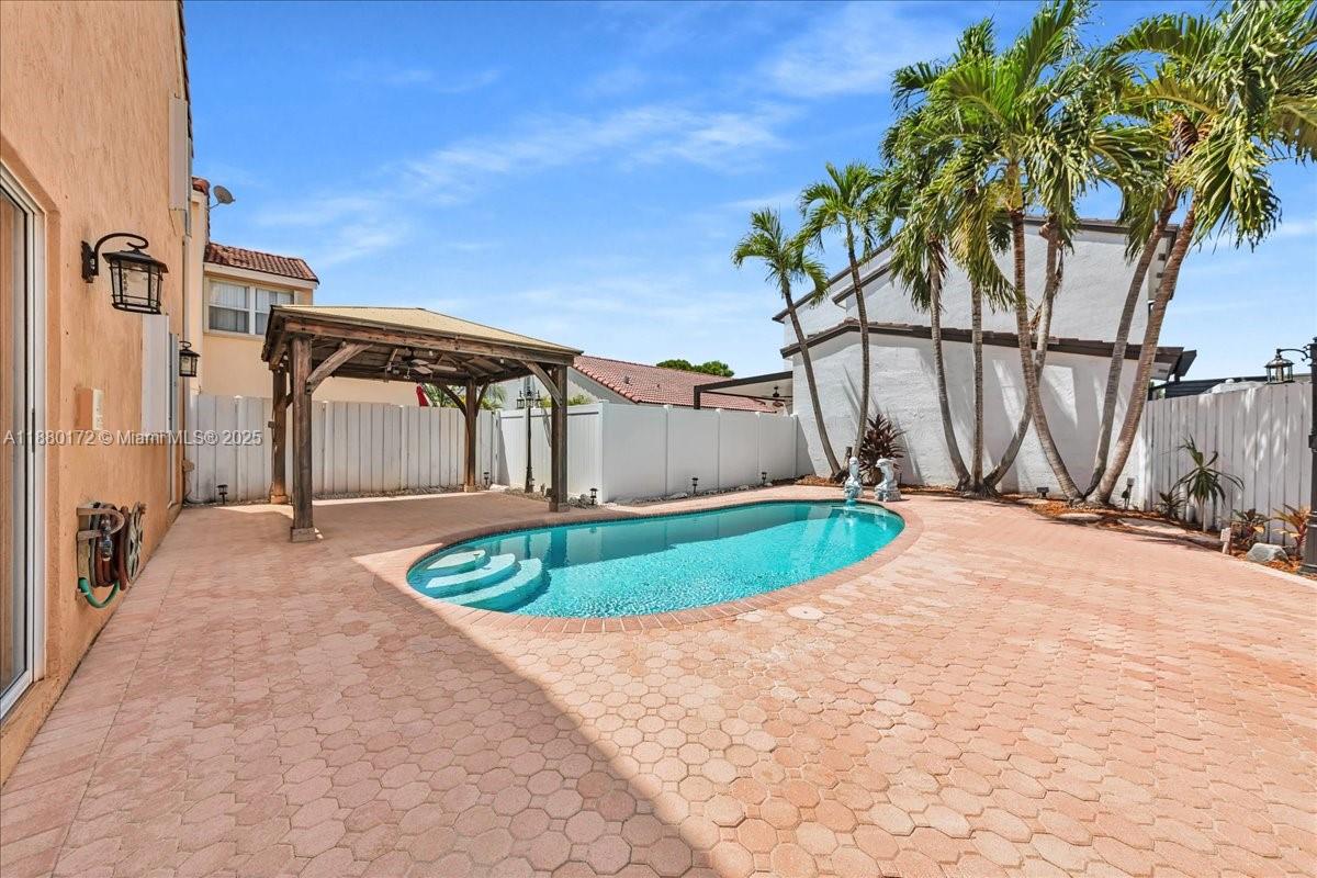 This beautiful 3-bed, 3-bath home located in the desirable Huntington community. Designed for comfort and style, it features spacious bedrooms and bathrooms, volume ceilings, and huge windows that fill the interior with natural light. The convenient layout includes one bedroom and full bath on the first floor, perfect for guests or multigenerational living. Accordion shutters provide peace of mind, while a 2-car garage and additional driveway parking add practicality. Step outside to your private retreat with a sparkling pool and gazebo, ideal for entertaining or relaxing. Located just minutes from top-rated schools, shopping, dining, major highways, and a short drive to Miramar Regional Park and other local attractions, this home combines lifestyle and convenience in one perfect package.