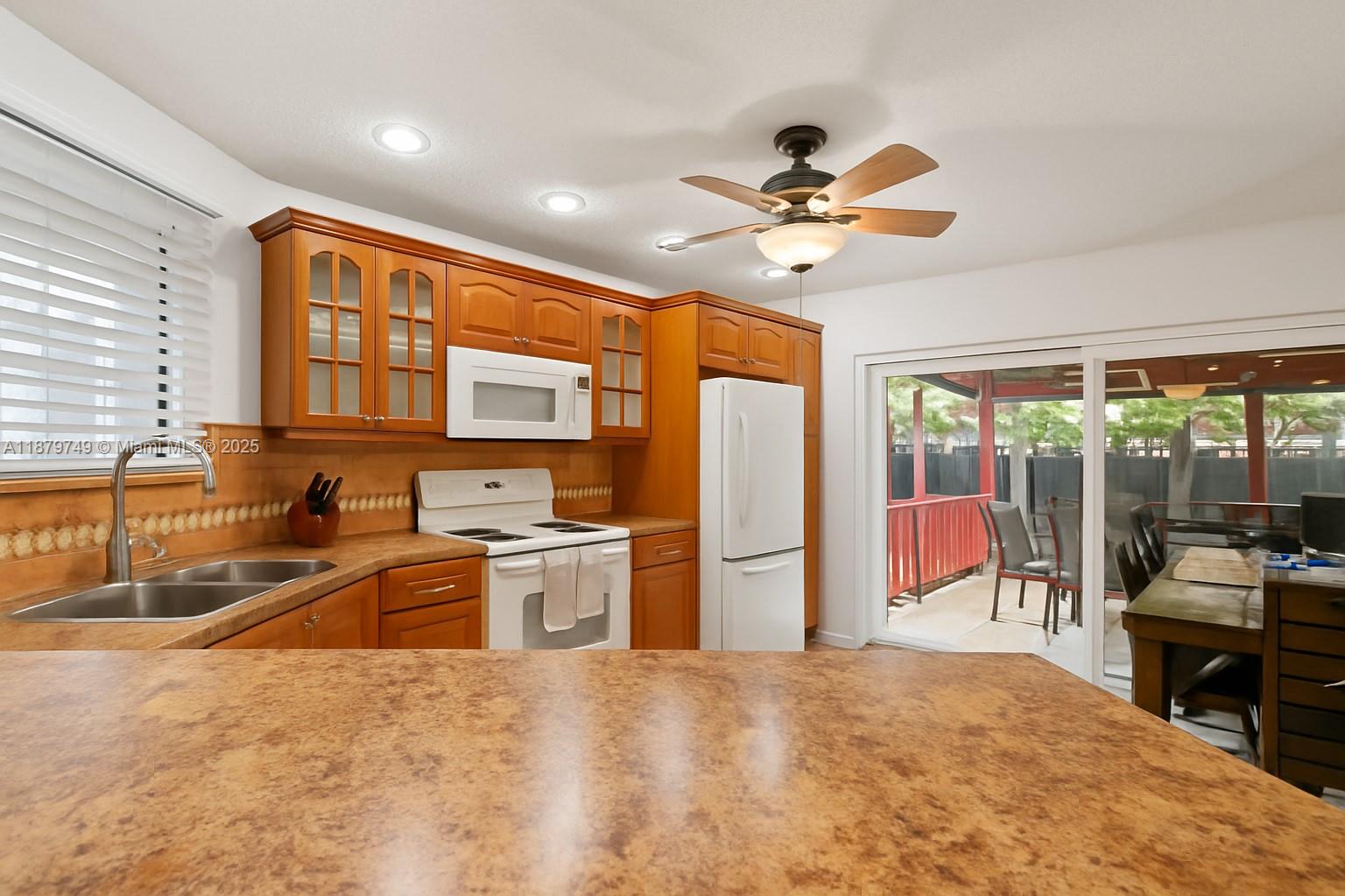 This Beautifully updated and cozy 3-bedroom, 2-bath home offering comfort, style, and peace of mind. Upgrades include a new roof, hurricane-impact sliding doors, modern A/C, and water heater for lasting efficiency. The bright open layout features a sleek kitchen with granite countertops and seamless flow to living and dining areas. Multiple gathering spaces — breakfast bar, dining room, and TV room — provide flexibility. Spacious bedrooms, including a private master suite, offer room for the whole family. Outdoors, enjoy a covered patio (with permit), new fence, and plenty of space to relax or entertain. With no HOA fees and a quiet, family-friendly location near A-rated schools, shopping, parks, and dining, this home is truly move-in ready.
