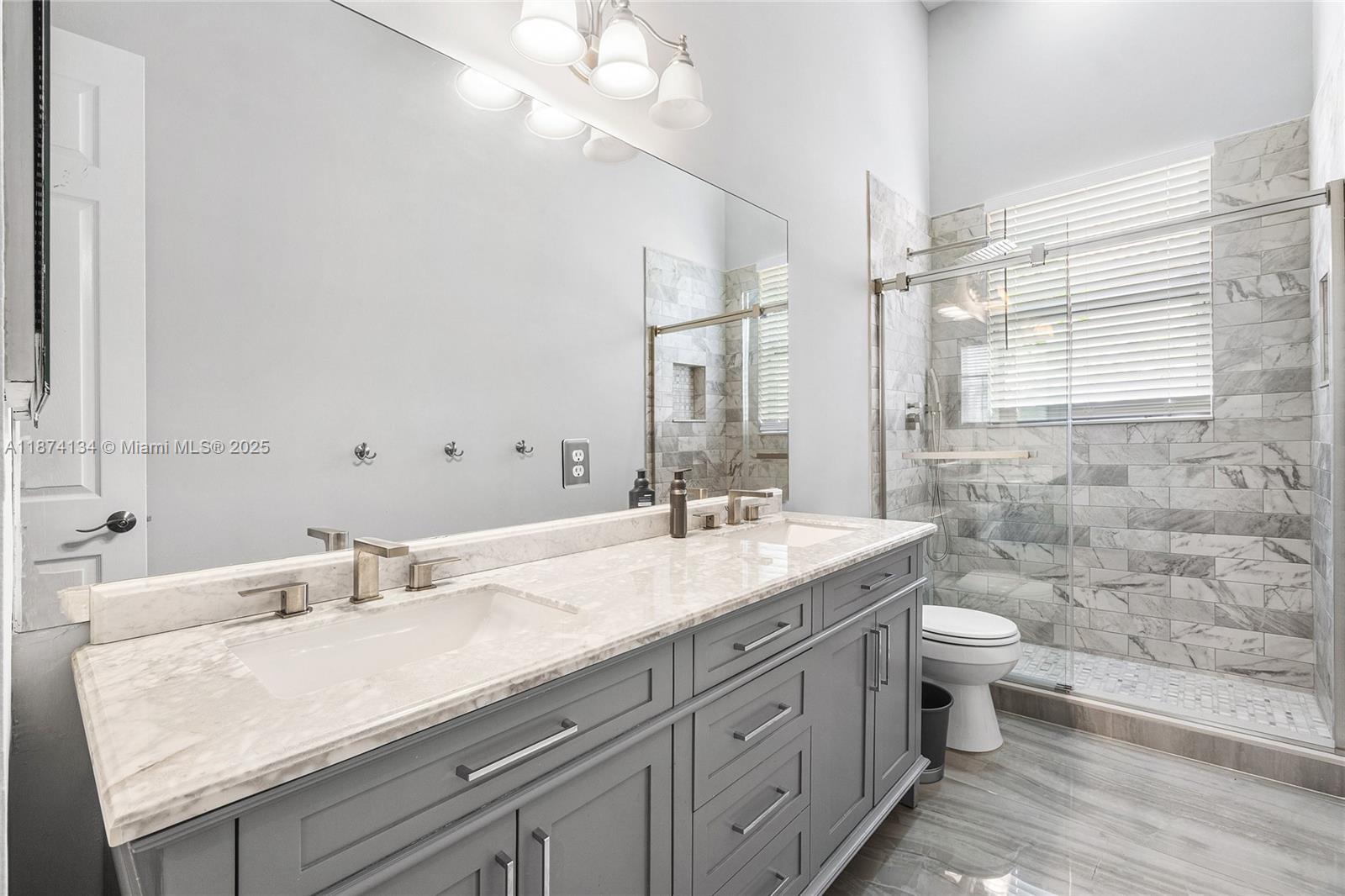 JUST REDUCED!! Spacious 4400+ sq ft Builder's model home! This stunning 4 bed Ranch style home offers luxury, privacy and a beautiful backyard oasis.Open floor plan with modern tile floors and a large primary suite with dual vanity sinks, oversized shower, sleek stand alone bathtub and a huge walk-in closet featuring built ins. Full Accordion hurricane storm shutters LED lighting, Custom Plantation shutters, upgraded kitchen with waterfall quartz countertops and newer GE appliances, double oven, wine cooler, Samsung smart fridge. Pool newly 2024 resurfaced with marble deck and summer kitchen. Modern pergola is perfect for entertaining! Front bay window den is perfect for a home office, flex space with built in cabinetry. 3 car garage and generator! Volume ceilings, tons of natural sunlight. Make everyday a vacation!