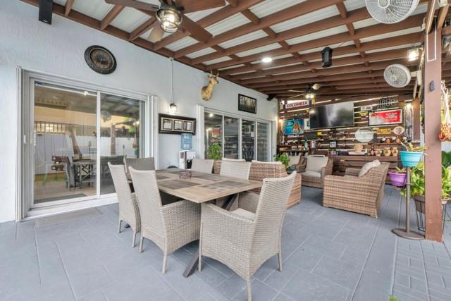 Motivated seller! Spacious 5BR/3 full BA home with 2-car garage plus 5-car driveway. Backyard oasis features a pergola, synthetic grass, board wall with generator cover, and a semi-ground pool to cool off, secured by fencing on cement base. Home upgrades include new metal roof with solar panels, impact front door, accordion shutters, LED lighting, and exterior security cameras. Remodeled kitchen with stainless steel appliances, 3 full modern bathrooms, tile flooring on first floor, laminate upstairs, organized garage with side closets, and independent laundry room with cabinets. Community offers tennis courts, pool, and playground. A true move-in ready home blending comfort, style, and modern upgrades.