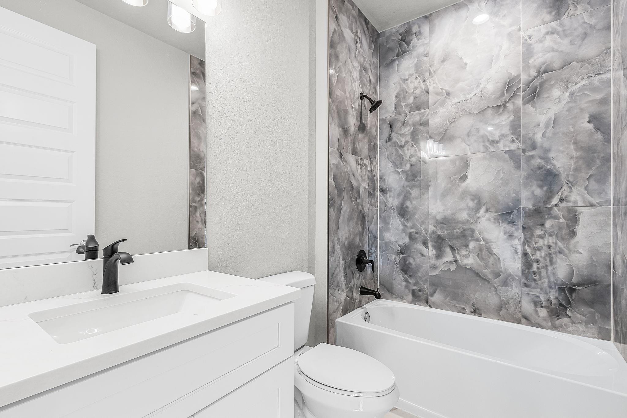 A beautifully fully upgraded new construction home. From the moment you arrive, the metal roof and fresh landscaping set the tone for a home that’s been thoughtfully designed from top to bottom. Step inside and you’re greeted by soaring ceilings, impact windows and doors, and tile flooring throughout, creating a bright, open space that feels both stylish and welcoming. The kitchen is a true showstopper—perfect for hosting or quiet nights at home—with a wall oven and microwave, sleek cooktop with hood range, and plenty of room to gather. The living area is anchored by a stunning media wall with an electric fireplace, adding warmth and ambiance that instantly makes the space feel like home. Homes like this don’t come along often—schedule your showing today and see why this one stands out.
