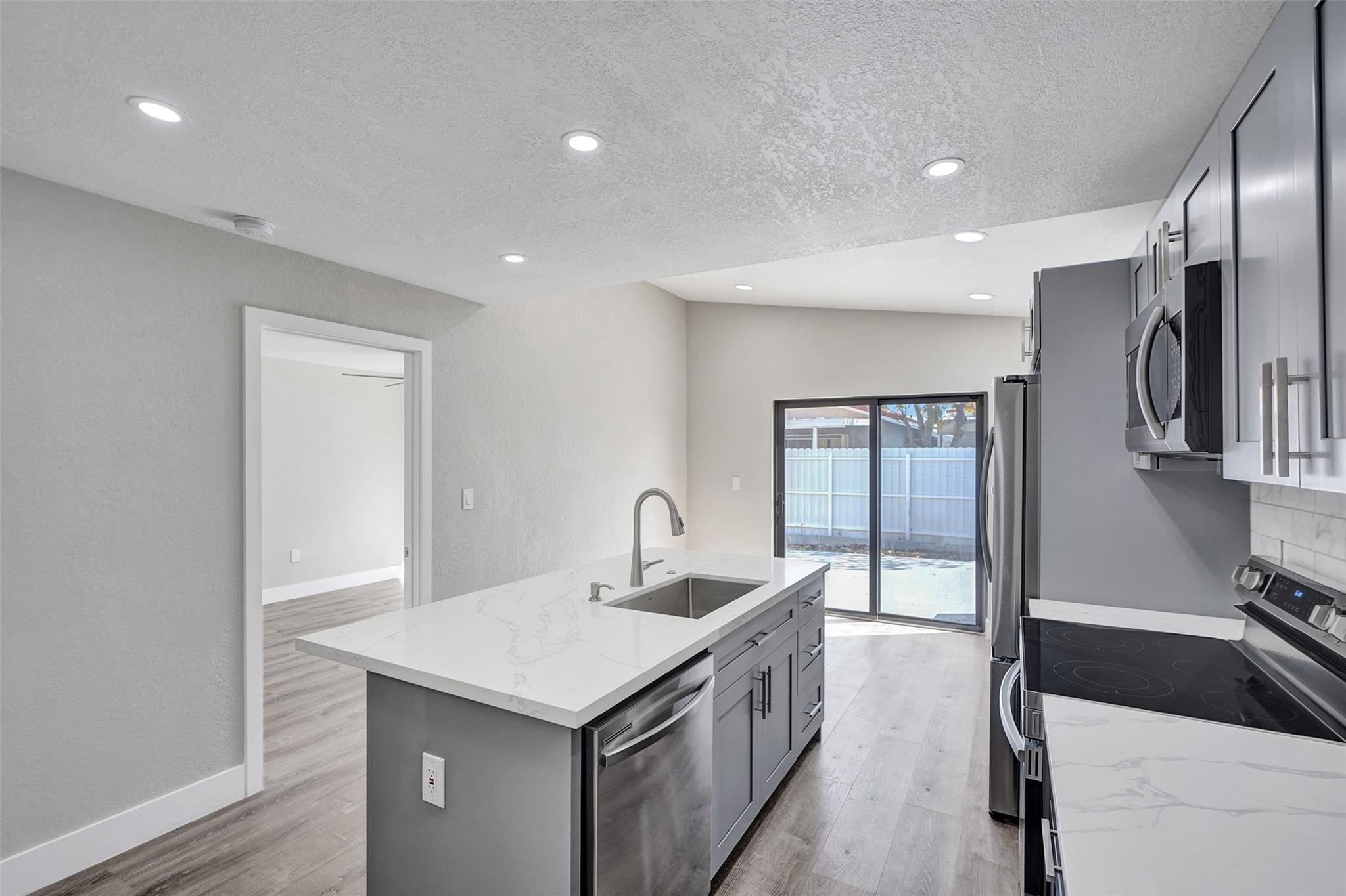 Turnkey perfection in gated El Prado by the Lake! FULLY upgraded 3-bed, 2-bath home checks every box: NEW ROOF, NEW hurricane impact doors, windows & sliders, NEW A/C, and NEW tankless water heater—peace of mind, security, insurance savings. NEW designer kitchen shines: quartz countertops, soft-close cabinetry, custom island, stainless steel appliances. Both bathrooms have been beautifully remodeled with frameless showers, modern vanities, and premium finishes. You’ll love the luxury vinyl plank floors, LED lighting, knockdown ceilings, and fresh paint throughout. Enjoy a large fenced yard for outdoor living plus community perks including 24/7 security, pool, basketball, and playground. Low HOA and a prime location near shopping, dining, major highways—don’t wait, this one is a must-see!