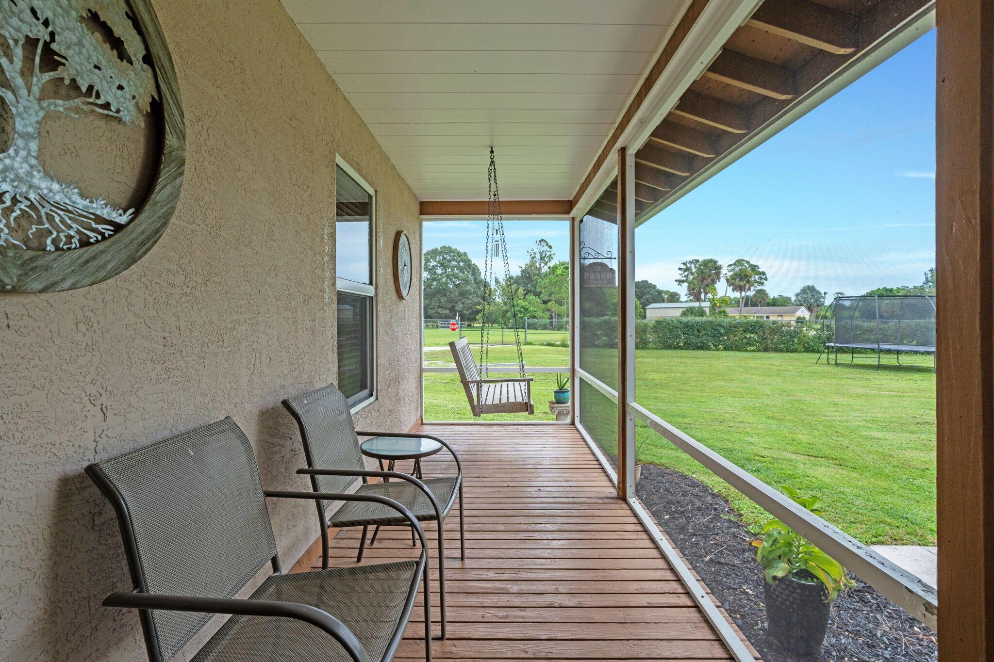 Discover this hidden gem tucked away on a private drive on just under an acre lot--offering the perfect blend of privacy, space, and modern comfort. This beautifully maintained home features 3 spacious bedrooms and 2 full bathrooms, all set on a large, agriculturally/residentially zoned lot with no HOA restrictions. Step inside to find gorgeous wood floors throughout, creating a warm and inviting atmosphere. The home features a newer roof (2023), new impact windows, and an A/C system (2022) giving you peace of mind and energy efficiency for years to come.Enjoy Florida living year-round with expansive screened-in patios, ideal for relaxing or entertaining. A large workshop shed provides ample space for tools, hobbies, or storage.Whether you're looking for a private retreat or a