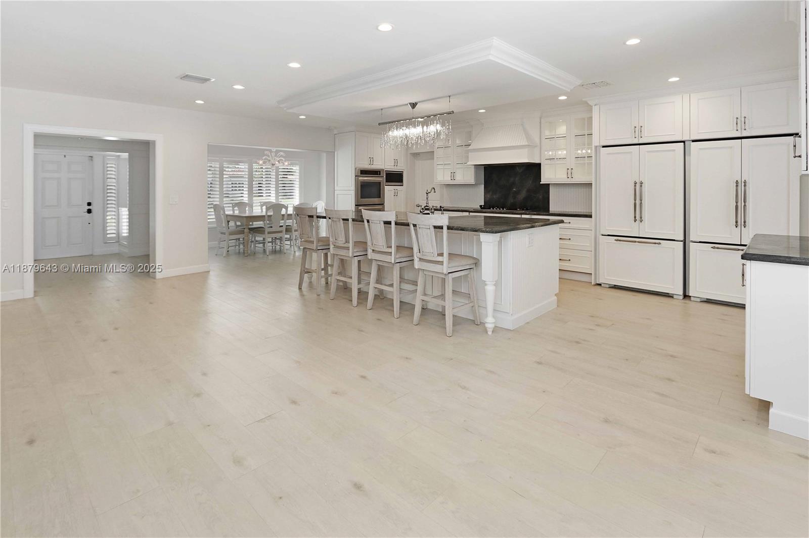 Beautiful 4 bedroom, 3.5 bath pool home with 1 car garage in an incredible location! Enter into a large foyer that flows into a state of the art kitchen/living area with an oversized eat-in island, exotic granite countertops, stainless steel farmers sink, a double oven, custom Medallion cabinetry, double refrigerators, and Miele appliances with a gas stovetop. With an open concept design, this home is made for entertaining. Additional features include a formal dining room, a separate family room with French doors leading to the pool, & a large pavered patio around the pool with a fully fenced backyard and lush landscaping. The primary bath features a free standing tub with separate shower. Highlights include a 2nd ensuite bedroom and impact windows!