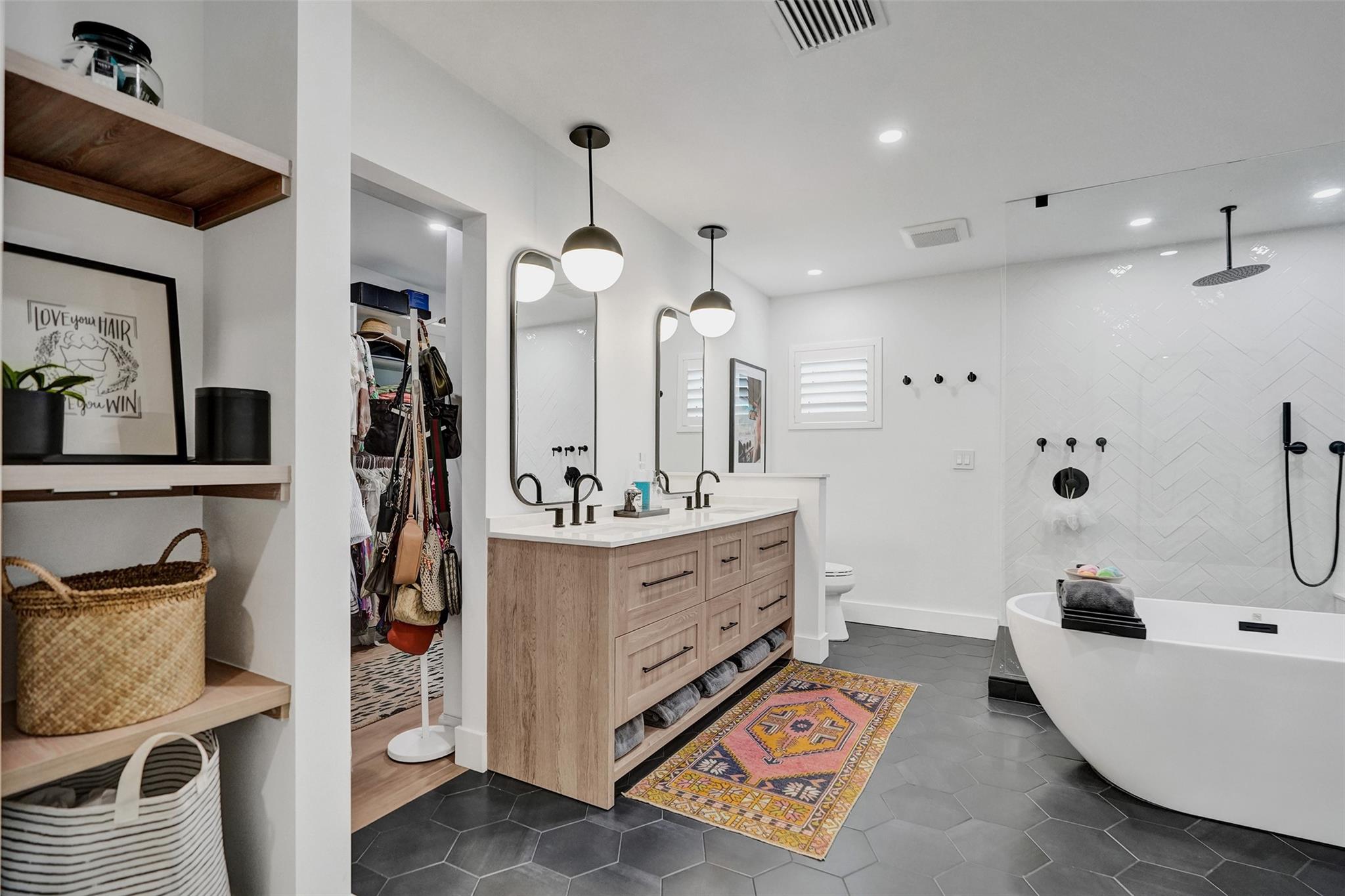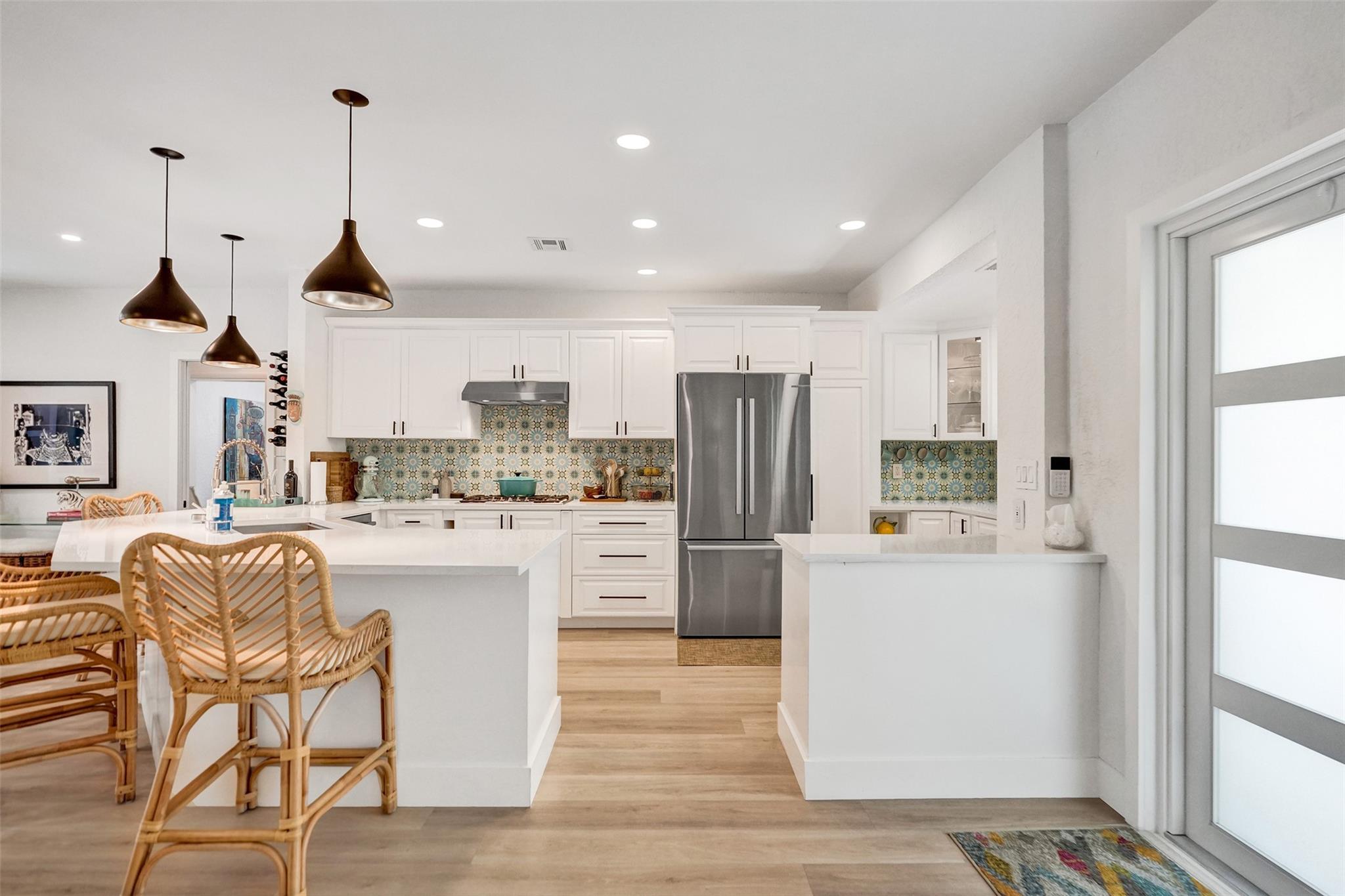 Stunning 4-bed, 3-bath + bonus room home should be in the pages of a design magazine! Tastefully upgraded & meticulously maintained, it offers style, comfort & attn. to detail. Located in highly sought-after Hillsboro Shores—Pompano Beach’s most exclusive neighborhood w/ private beach access—this tropical retreat features kitchen w/ upgraded appl. incl. Bosch gas range & bar overlooking spacious living & dining areas. Primary suite w/ barn doors leads to spa-inspired bath, complete w/ dual-sink vanity, sleek shower, stand alone tub & lg walk-in closet. 2 BRs w/ terrazzo & plantation shutters add timeless charm. Private fenced yard is an entertainer’s dream w/ heated pool & hot tub. Add. upgrades incl. 2 ACs, tankless gas water heater & more. Ready for new owners & can be sold turn key!