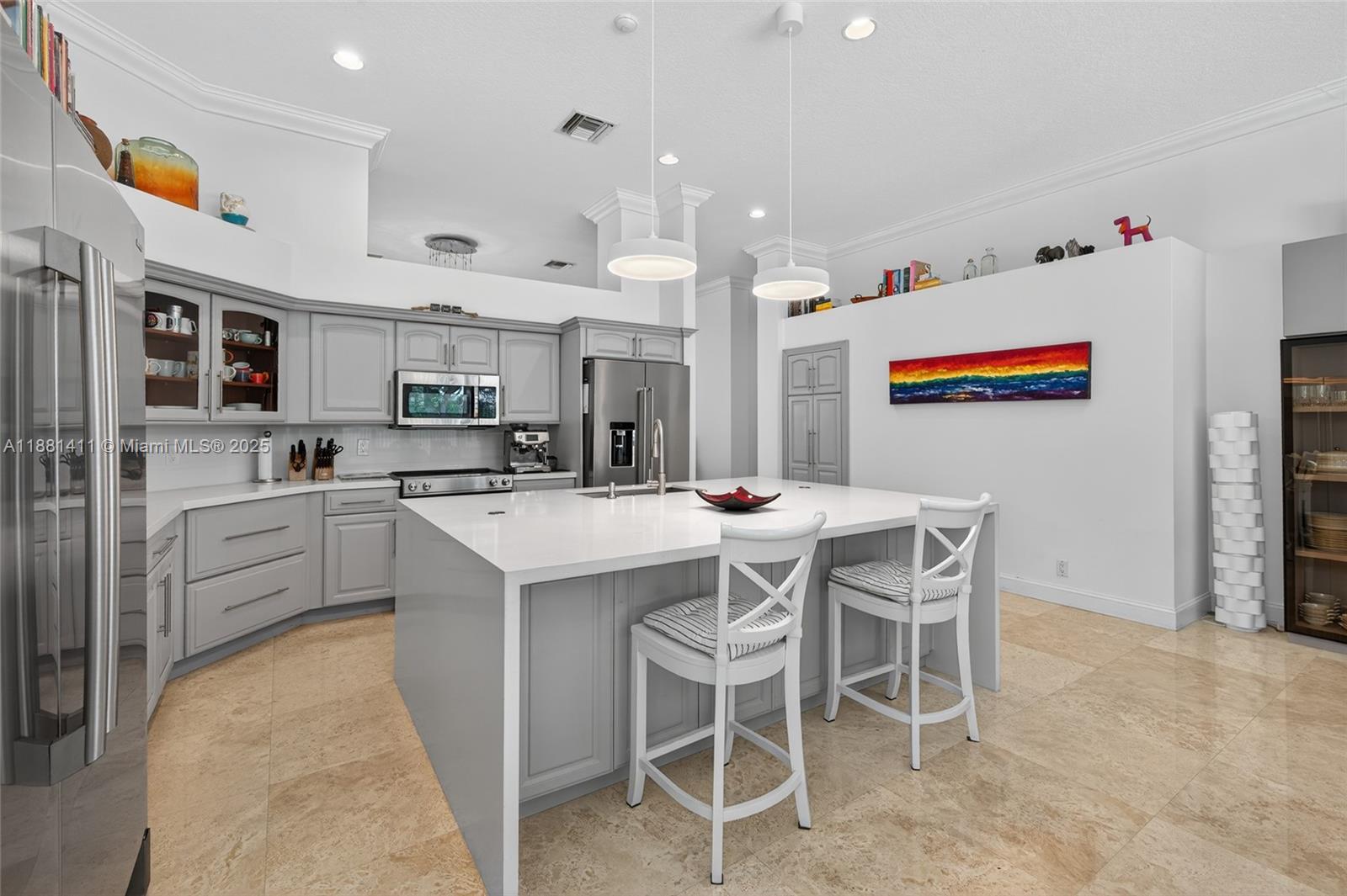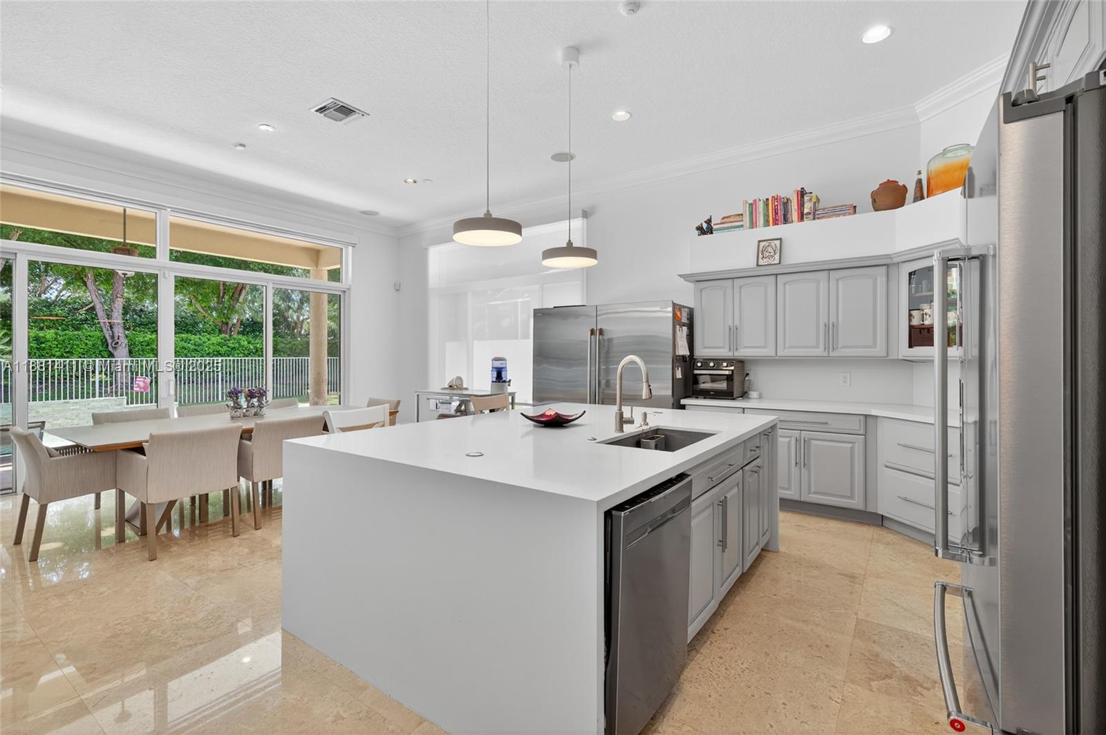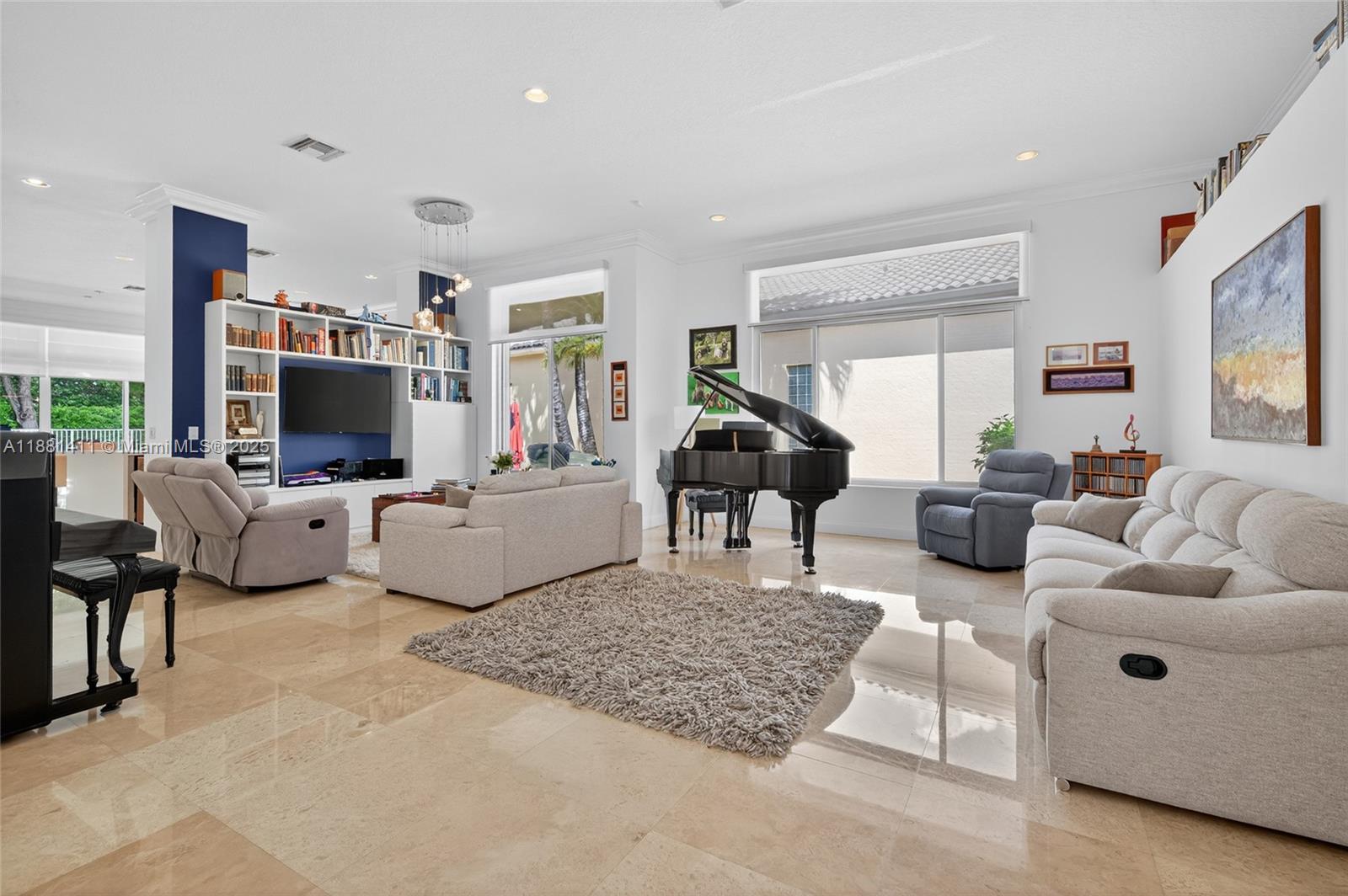 Exquisite 3-bedroom, 3-bath one-story home in the exclusive Bay Isle at Weston Hills Country Club. This residence features soaring ceilings, open living spaces and a remodeled kitchen with premium finishes. Enjoy peace of mind with a brand-new roof and impact windows. The primary suite overlooks the sparkling pool with travertine deck and lush landscaping. Elegant marble floors in living areas and wood-look floors in bedrooms. Bathrooms have been fully renovated with high-end fixtures. Weston Hills offers a guard-gated lifestyle with manicured grounds, parks, playgrounds, and optional Club memberships for golf, tennis and social activities. Top-rated schools complete this exceptional offering. Property Available on 01/15/26