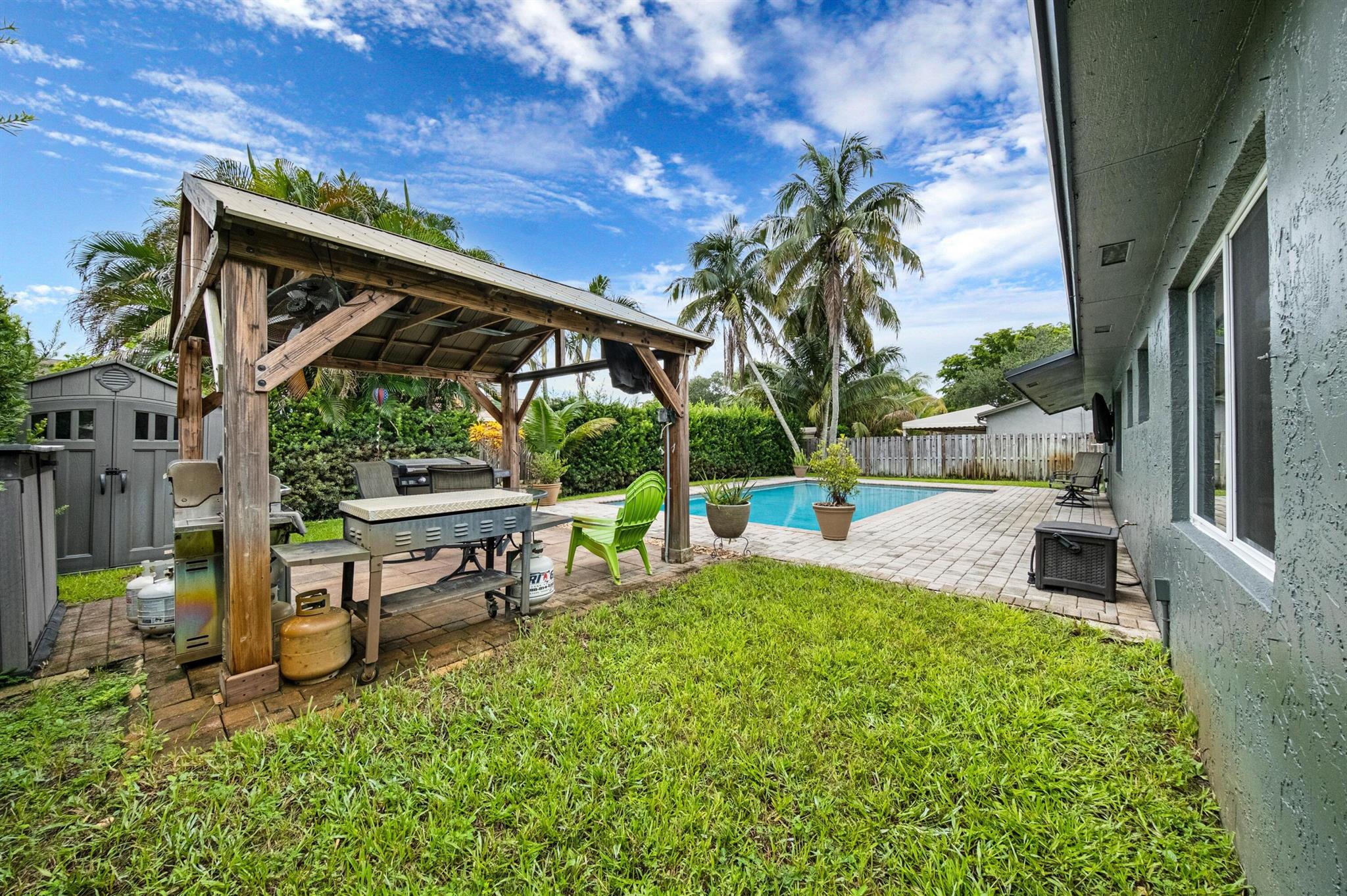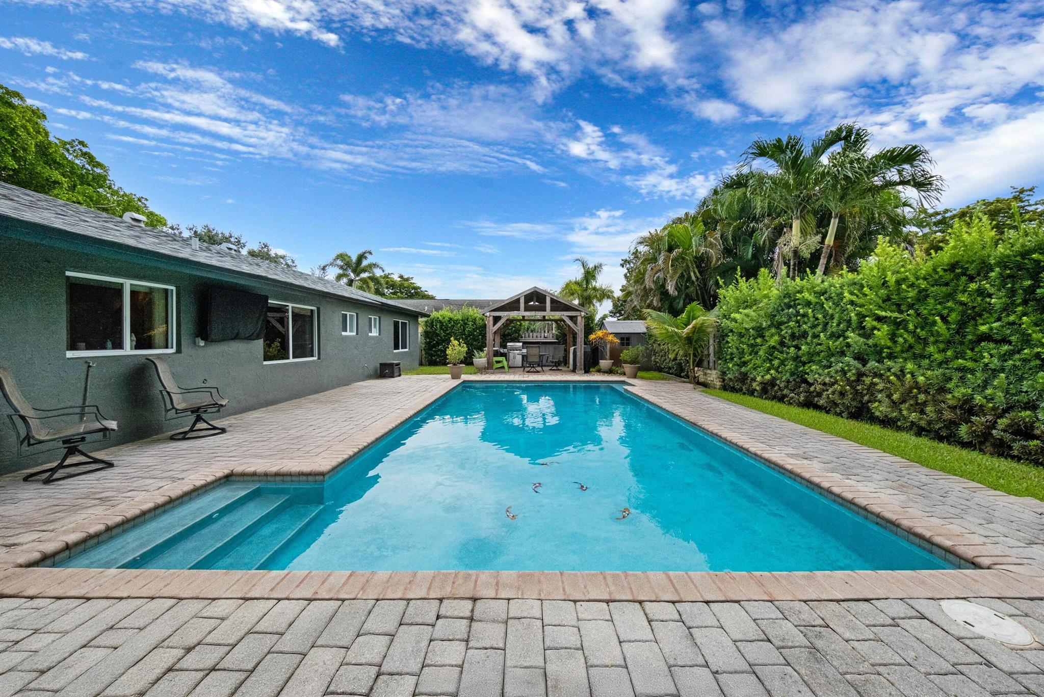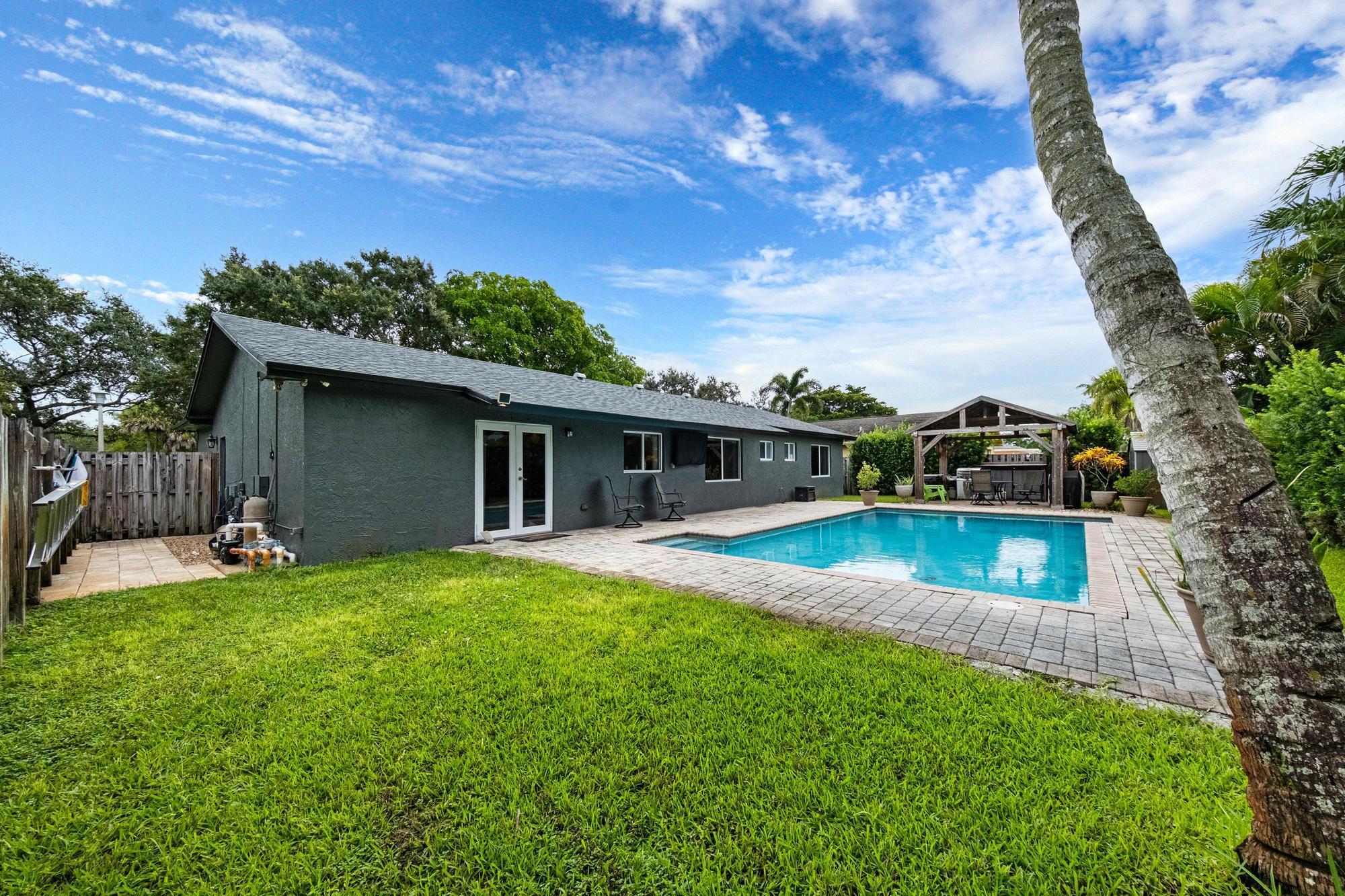 2025 Roof, A/C, and Hot Water Heater! Rarely available Cooper City home with no HOA, located just steps from the park. Inside, you'll find premium waterproof vinyl flooring in all three bedrooms, updated bathrooms with modern finishes, and a kitchen with stainless steel appliances. Two spacious living areas and a dining room offer plenty of space to gather. Step outside to your private backyard paradise, complete with private landscaping, a large pool, and an outdoor pavilion with electricity, perfect for entertaining. Close to top-rated schools, parks, and major roads. Don't miss this one!